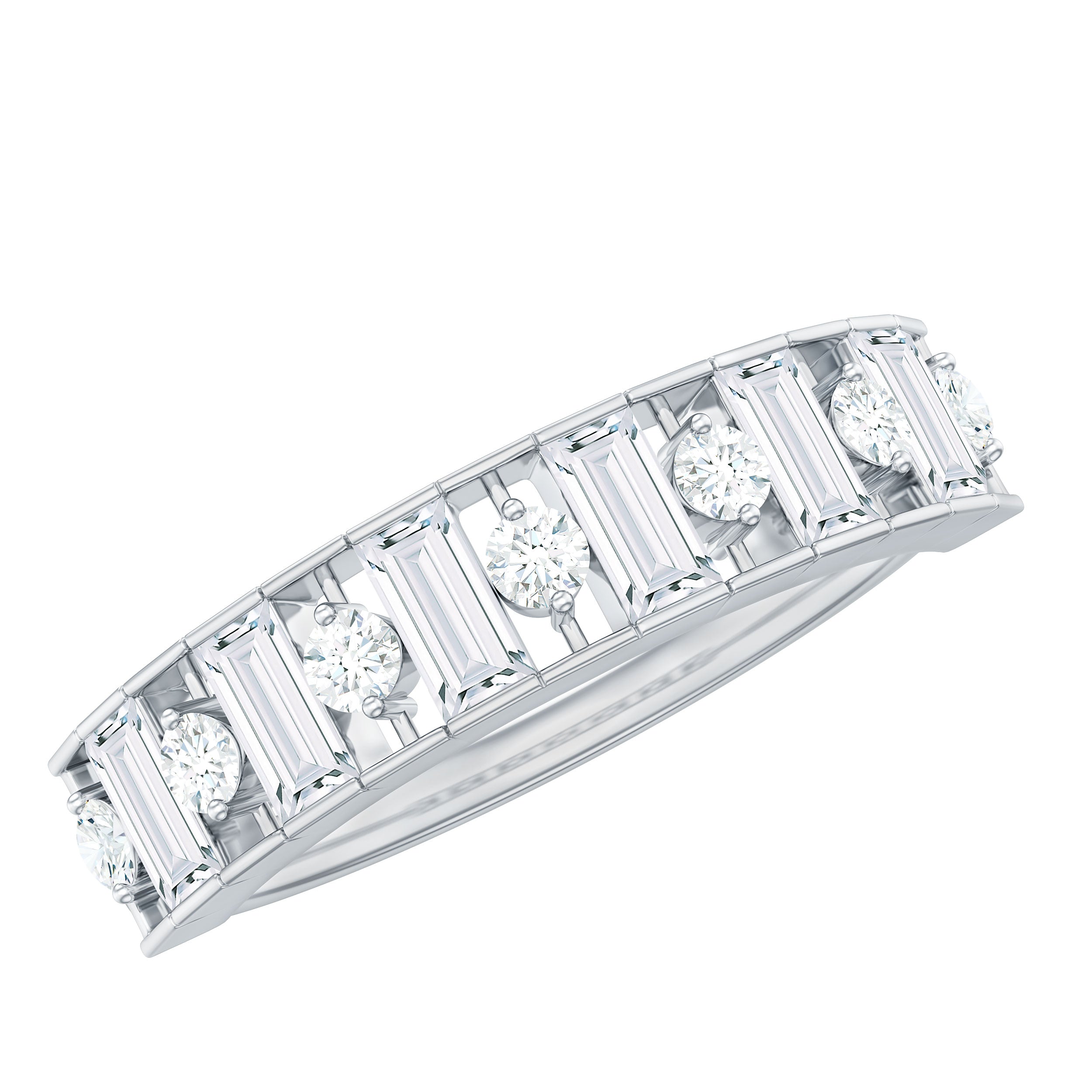 Baguette and Round Cut Zircon Classic Half Eternity Ring