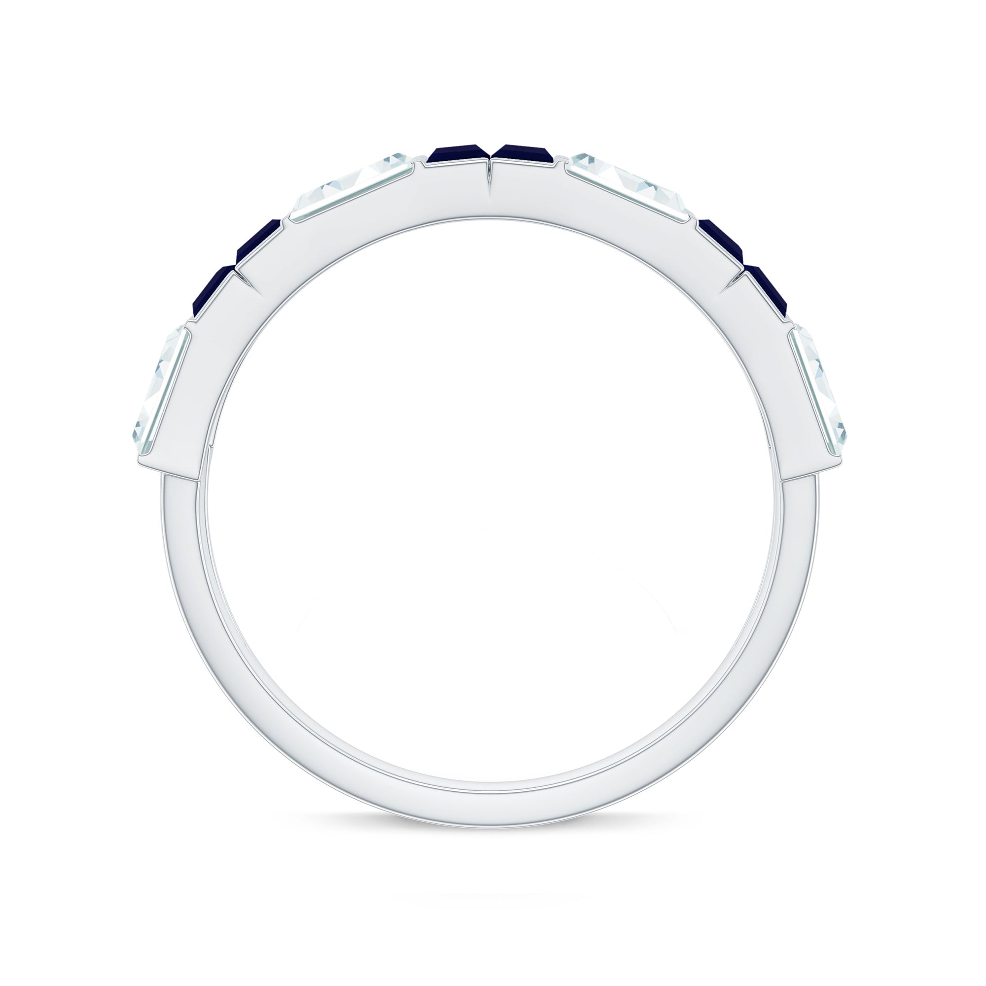 Baguette Cut Blue Sapphire and Moissanite Half Eternity Ring
