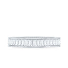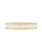 In a channel setting, each baguette diamond is securely positioned between two smooth metal walls, creating a streamlined surface with minimal interruption. This setting style enhances durability while allowing the geometric facets of the baguette cuts to reflect light in a subtle, sophisticated manner. The result is a band that sits comfortably alongside engagement rings or stands confidently on its own.