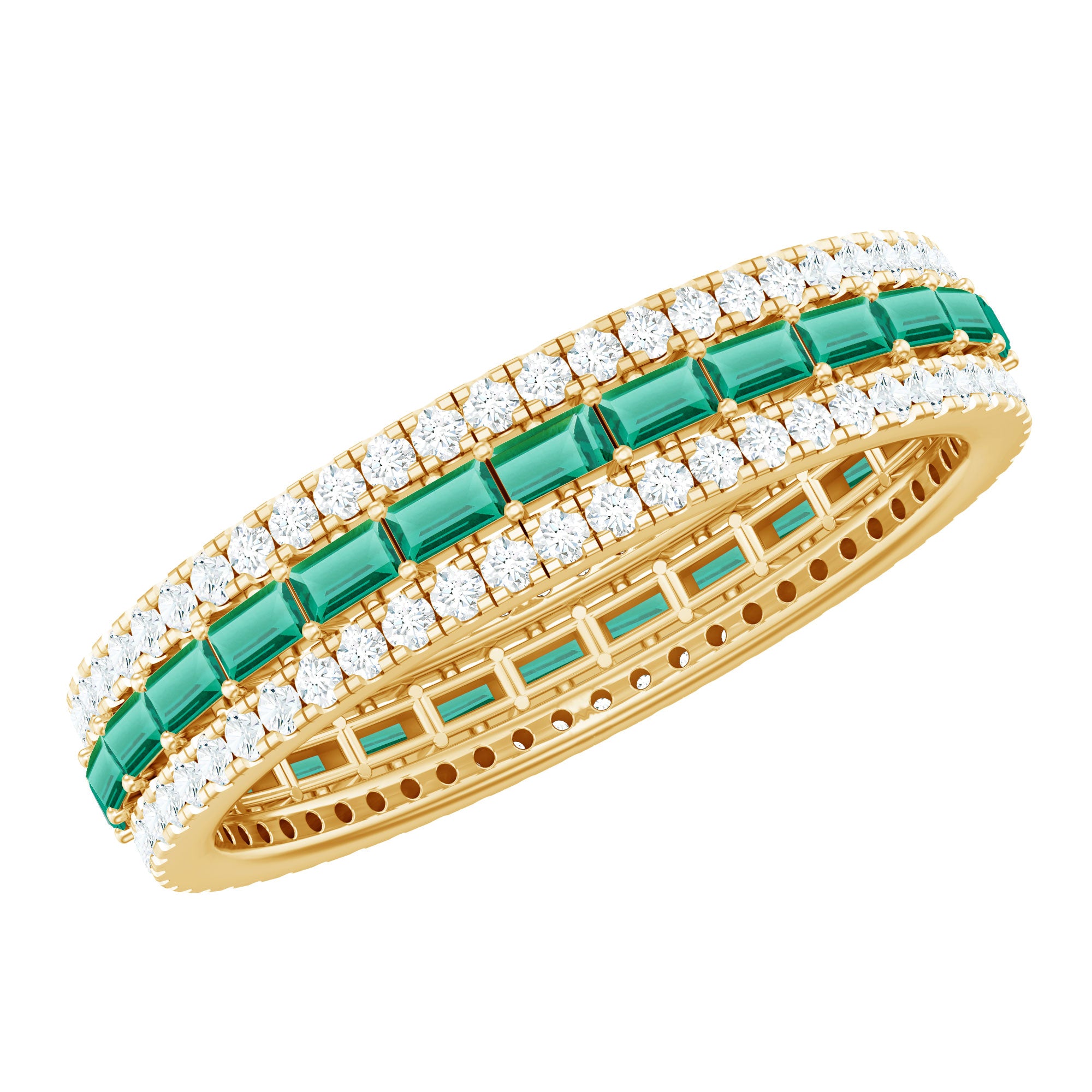 Baguette Cut Lab Grown Emerald and Moissanite Wedding Band