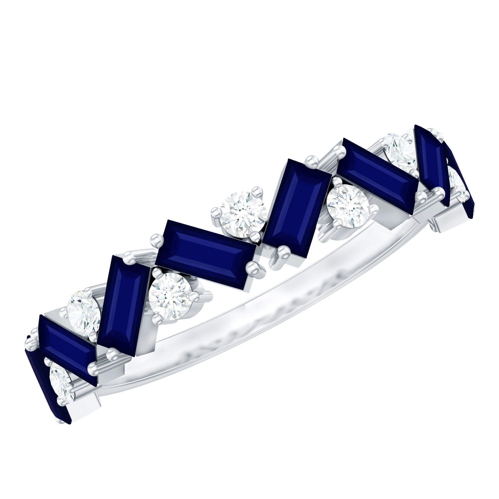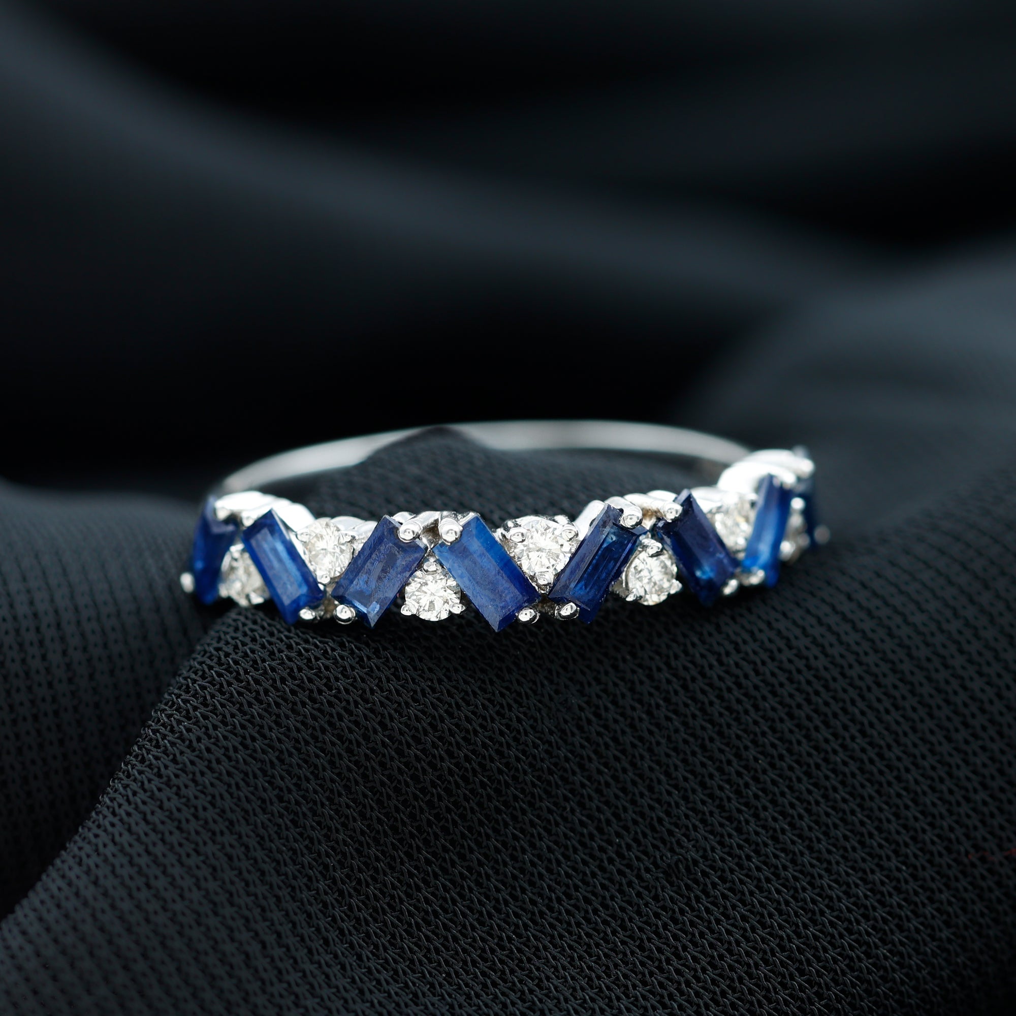 Baguette Cut Natural Blue Sapphire and Moissanite Half Eternity Ring