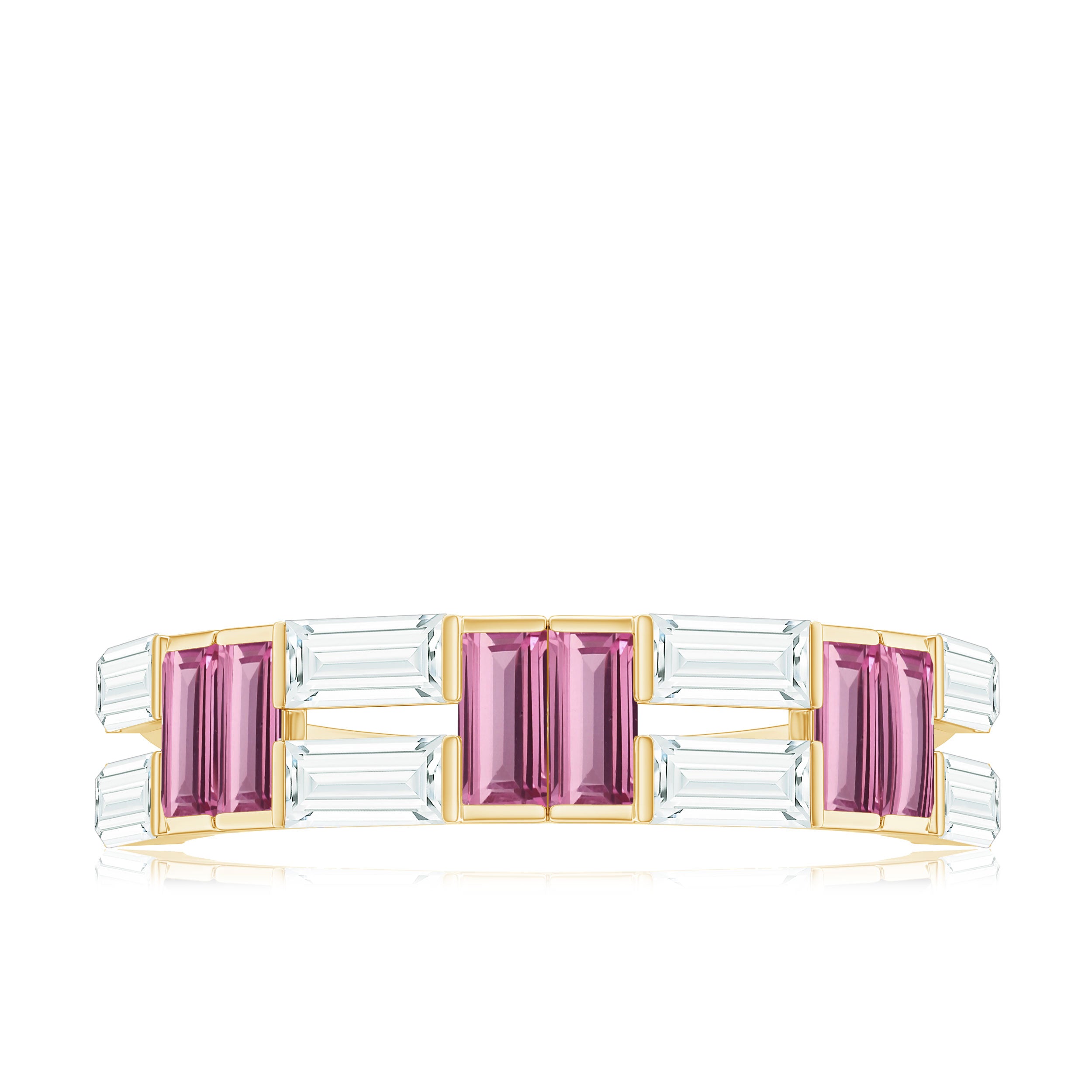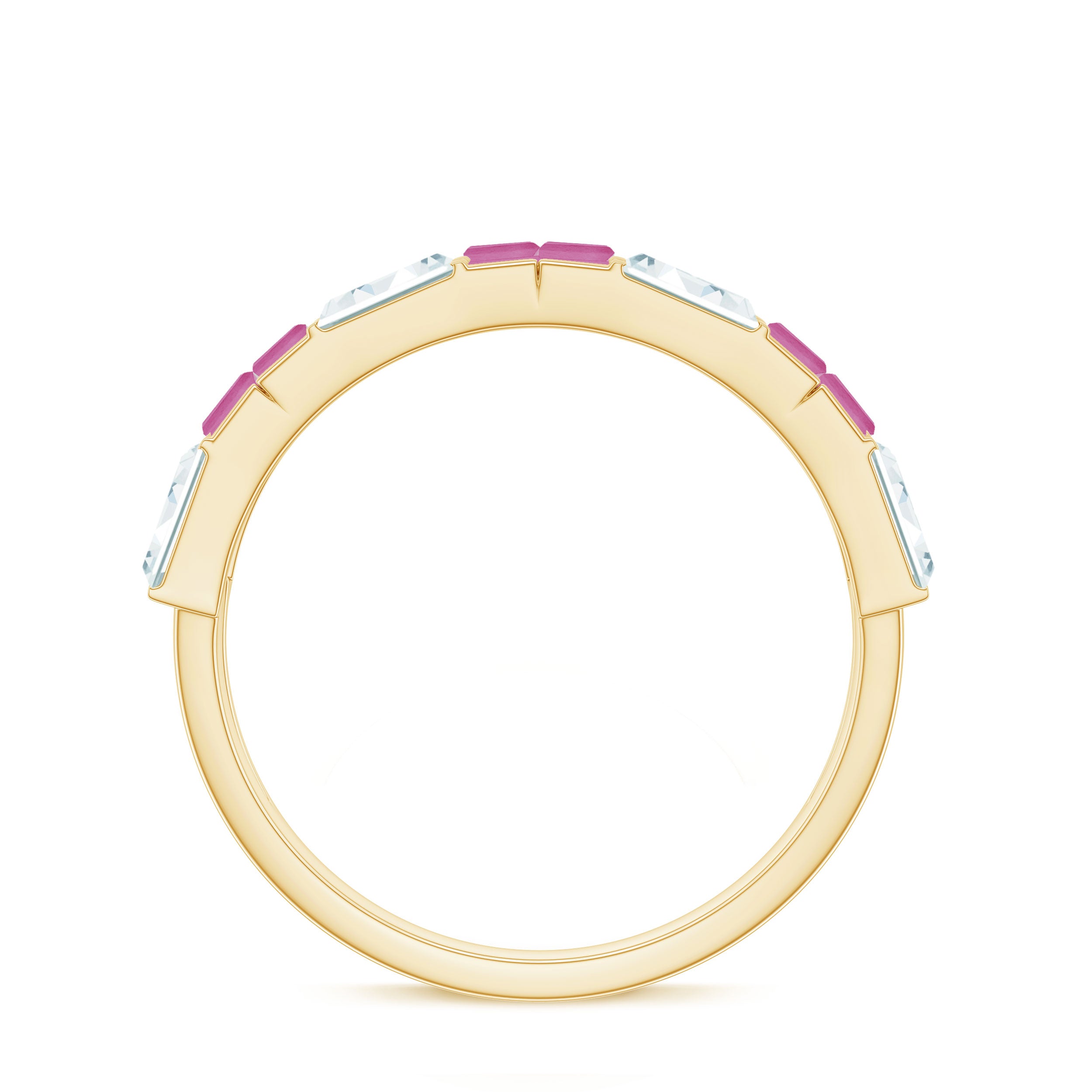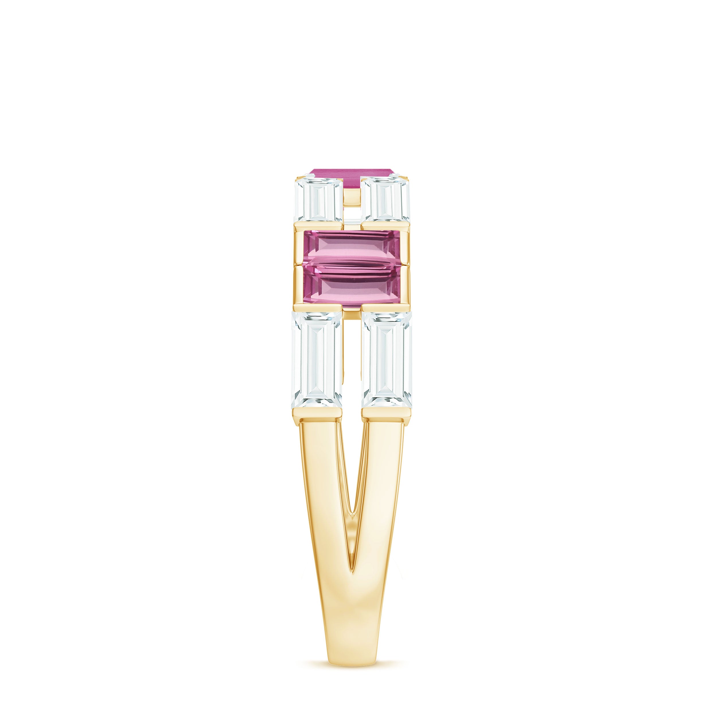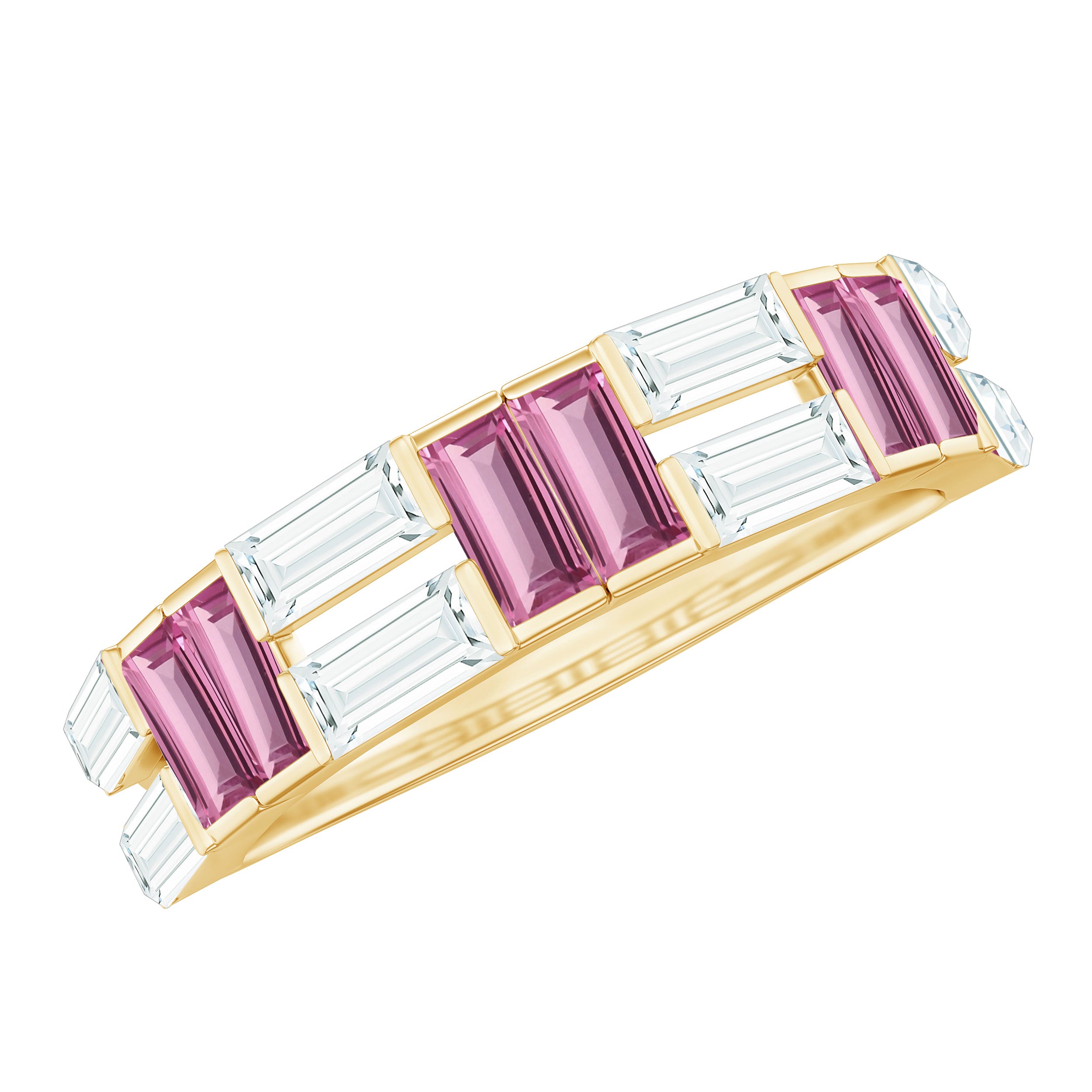 Baguette Shape Pink Tourmaline and Moissanite Half Eternity Ring