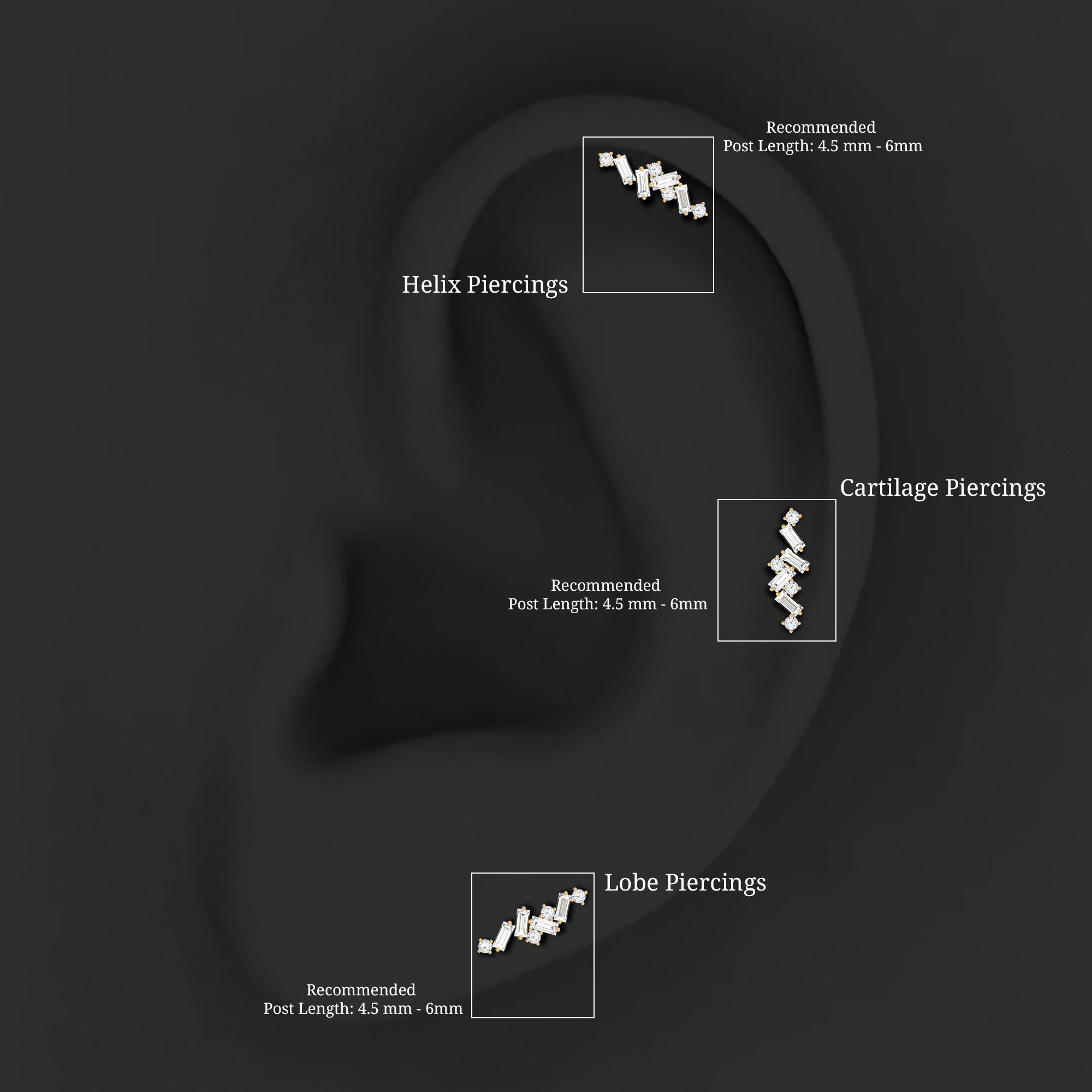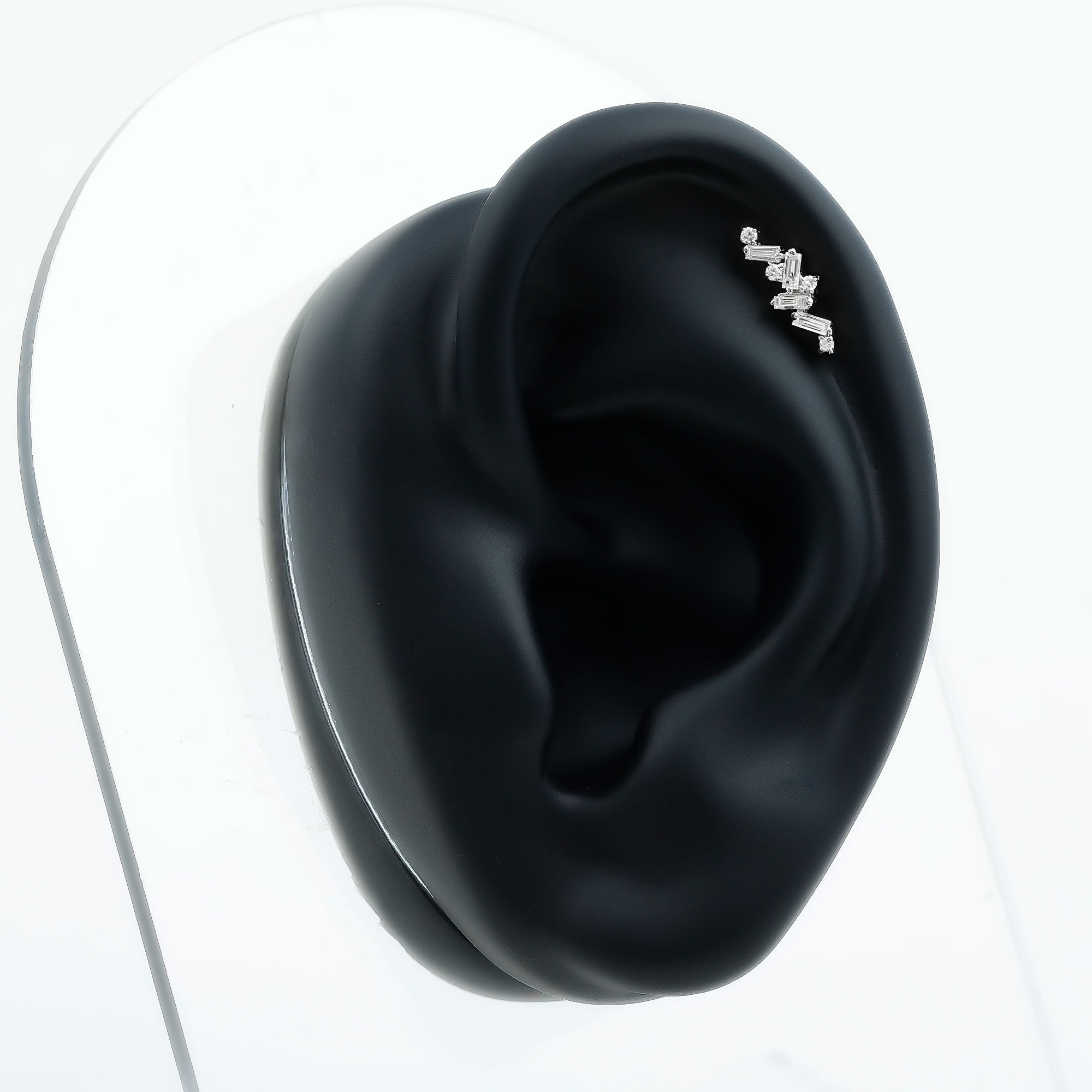 Baguette Diamond Cartilage Earring with Flat Back