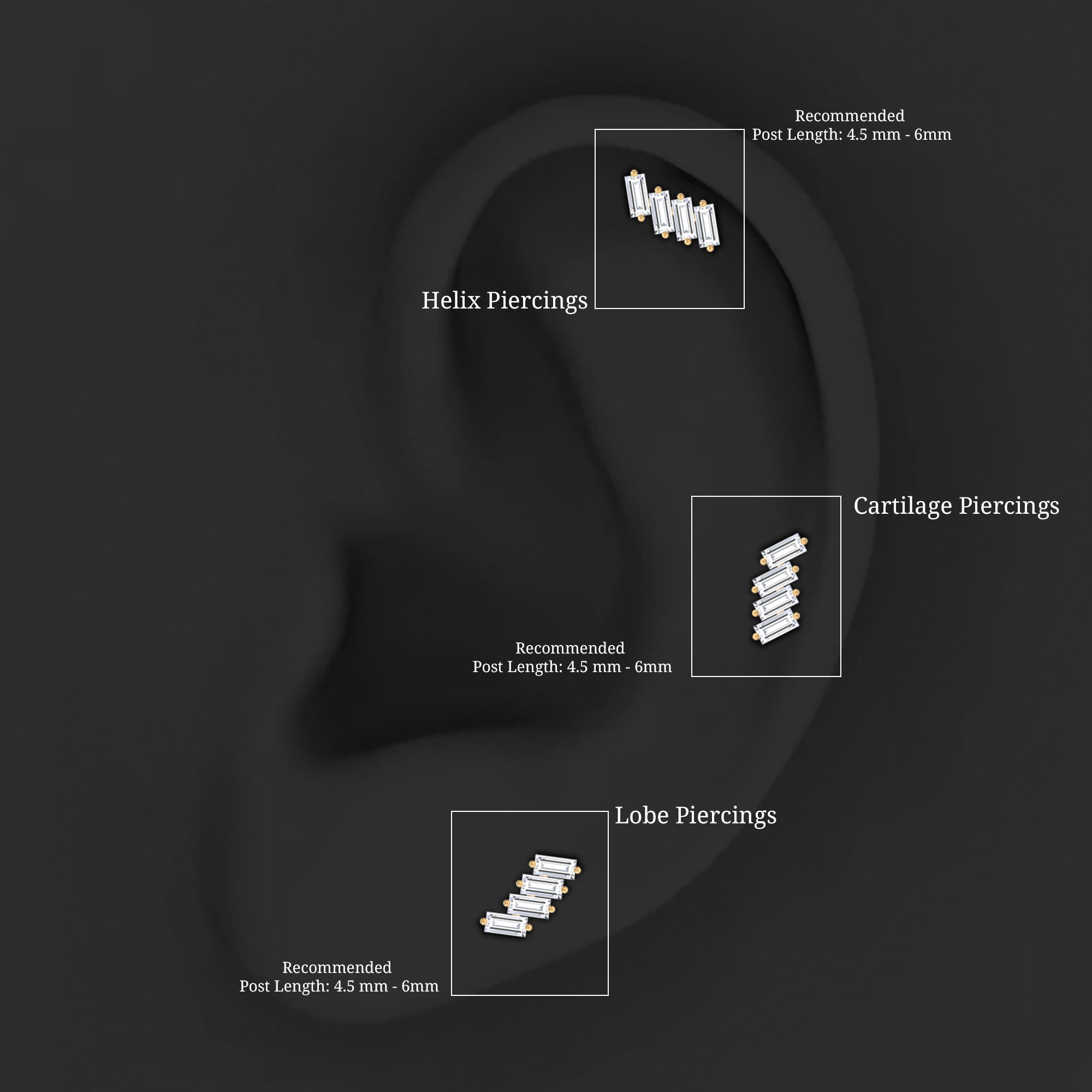 Enrich your grace of beauty with our exquisite Baguette Diamond Helix Earring, a perfect touch of luxury and style.
