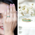 Let your friends get envious of the Emerald Baguette Eternity Ring. Having rich green hue of the Emerald gemstone is gorgeously placed as Tilted with the Baguette Shape in Tension Mount Setting. To enhance this Unique Wedding Band Ring are the Diamond Accents that shimmer along the side. A timeless Emerald Wedding Band Womens lets you add color to your stack or is worn all alone as a symbol of modern love that radiates uniqueness and ethical elegance. This Eternity Half Eternity Band has a chic combo of Baguette Emerald and Round Diamond. This Emerald Baguette Wedding Band is an attention-grabbing ring that makes the perfect choice for a wedding band or as an anniversary present. Emerald is also the birth month of May.