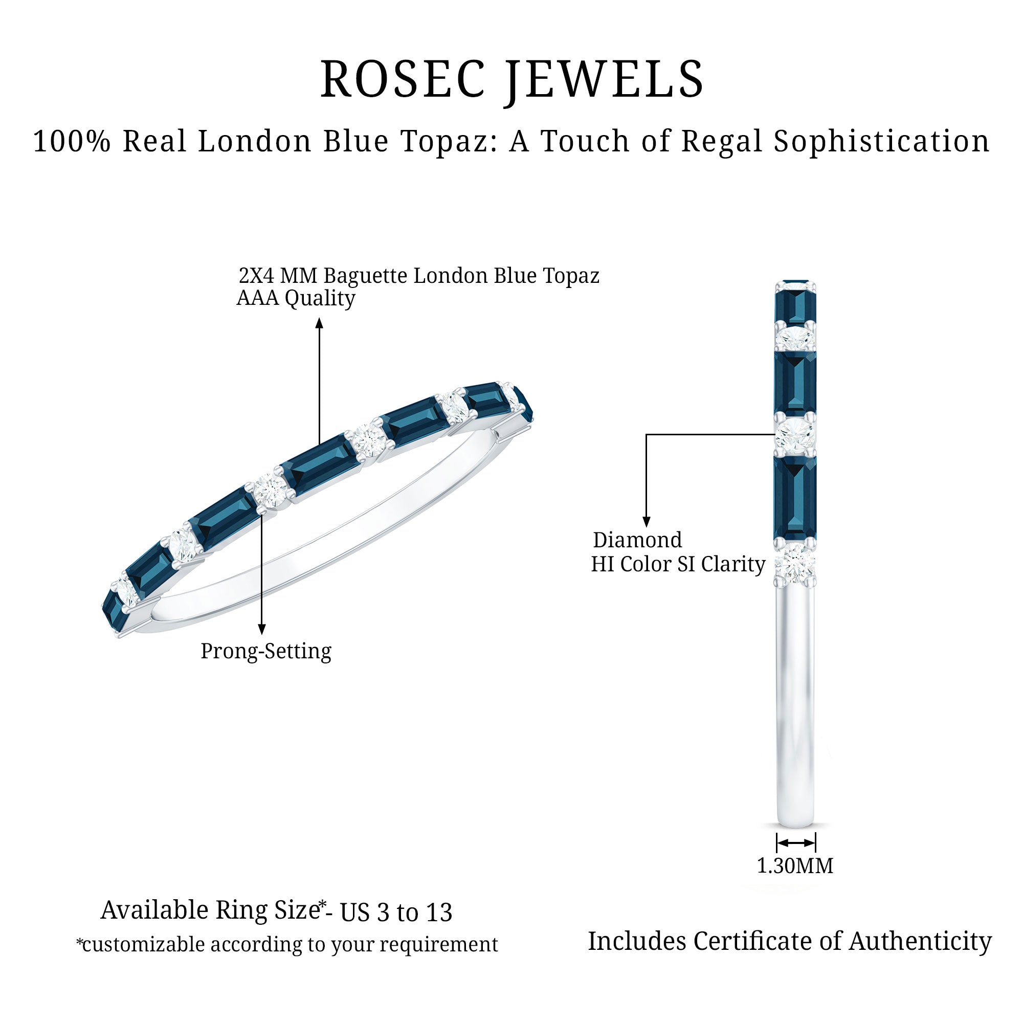 Baguette London Blue Topaz and Diamond Stackable Band Ring