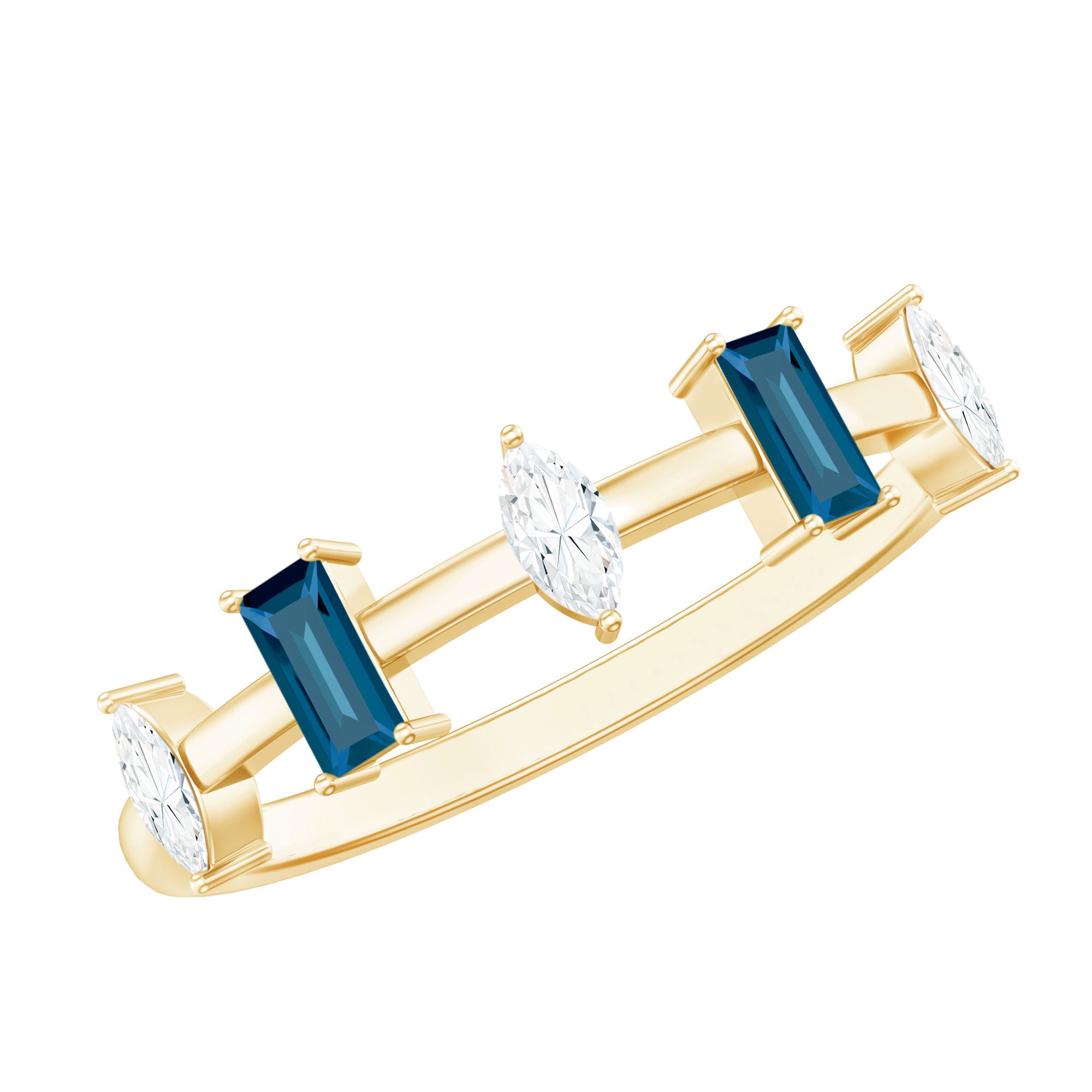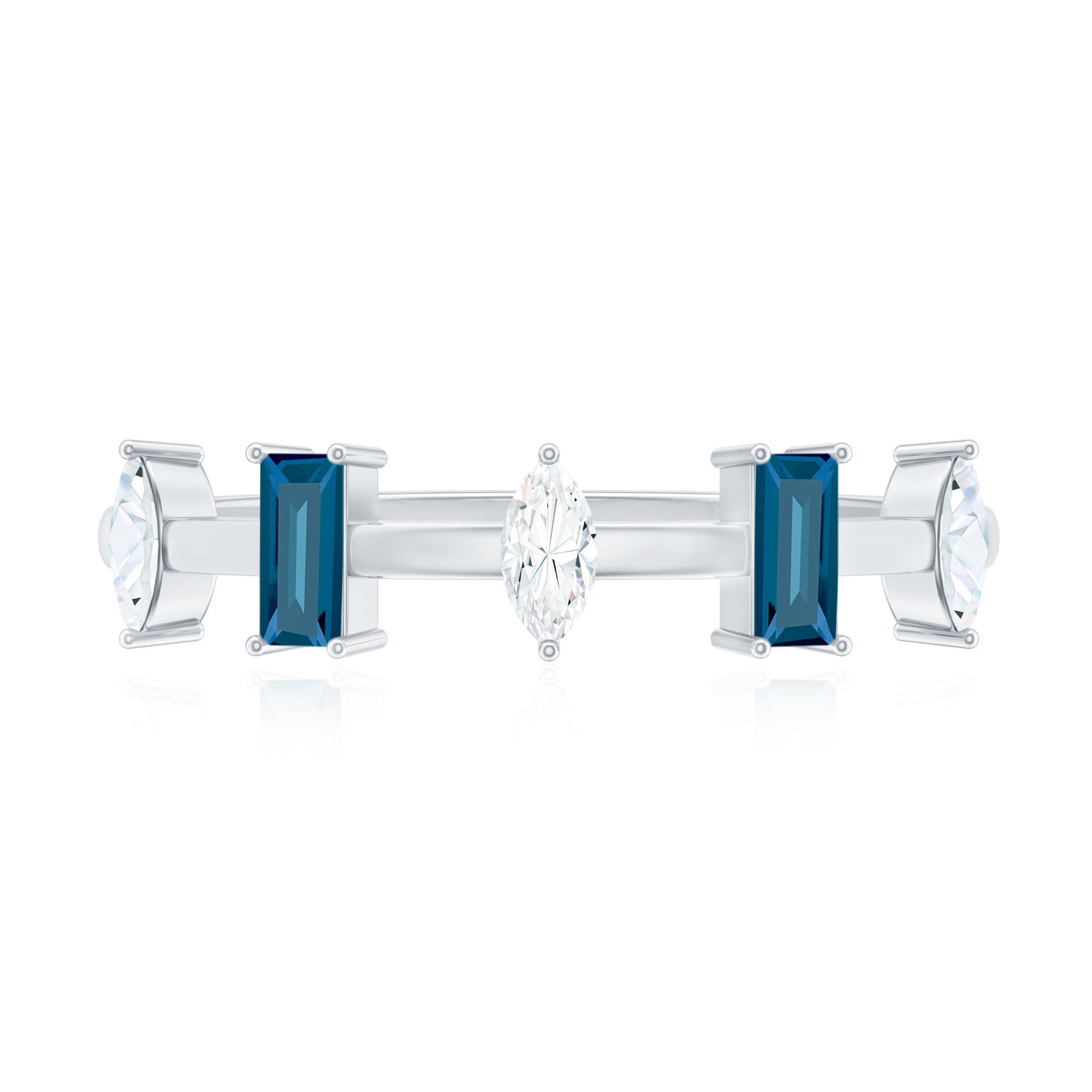 Baguette London Blue Topaz and Marquise Diamond Half Eternity Ring
