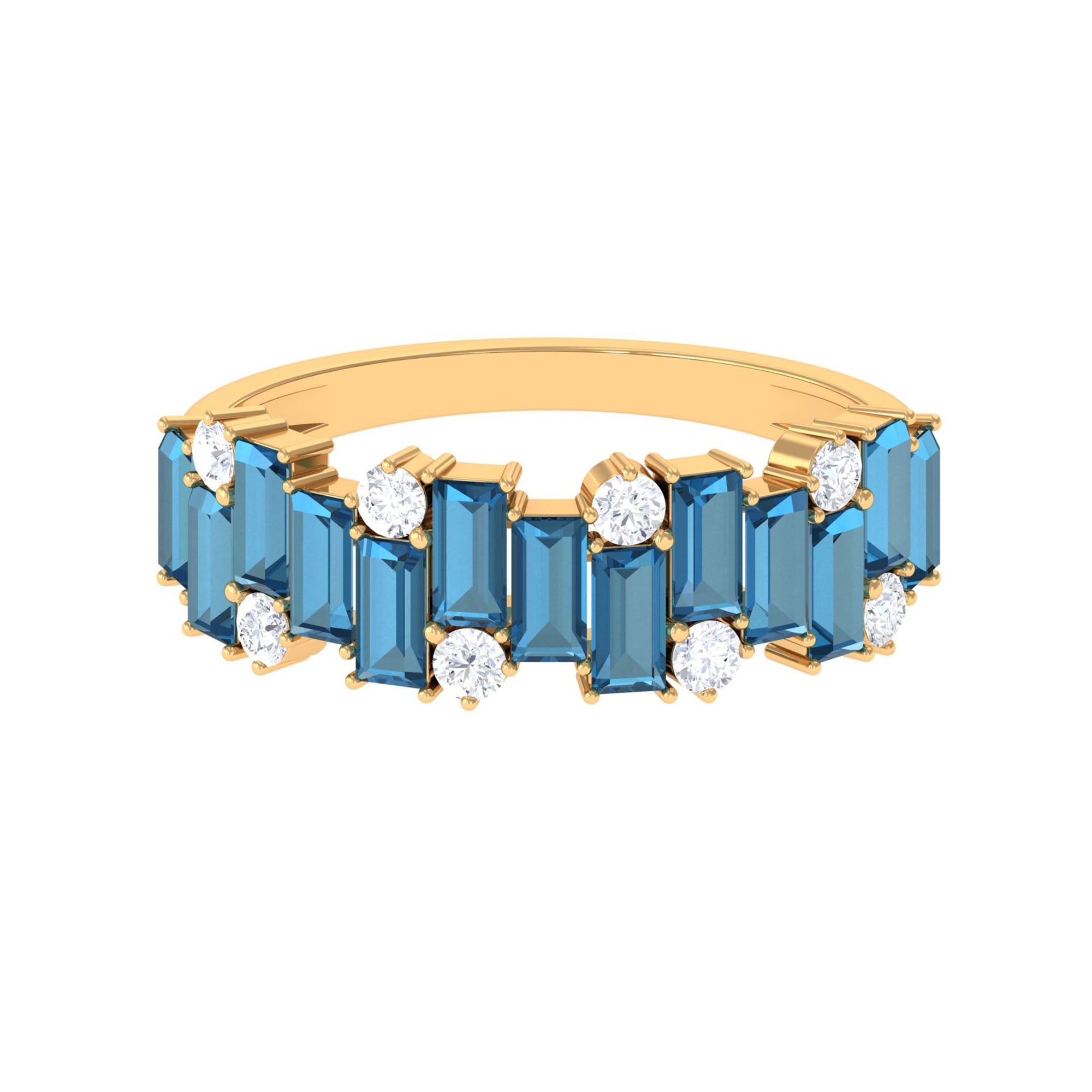 Baguette London Blue Topaz Uneven Eternity Ring with Moissanite
