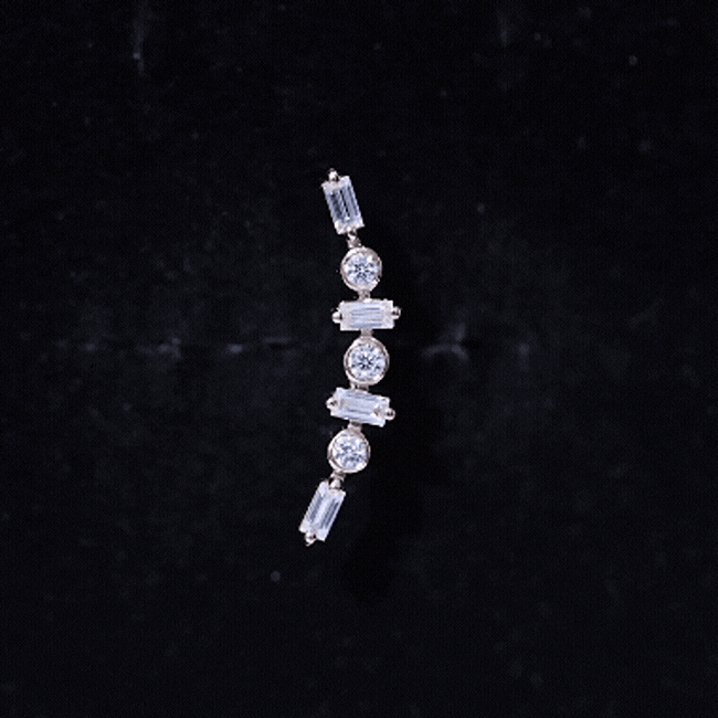 Baguette Moissanite Art Deco Climber Earring for Helix Piercing