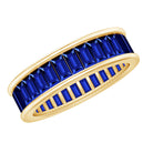 Step into a world of enchanting elegance with this Full Eternity Band Ring. Symbolizing endless love and commitment, the deep blue Baguette Shape Lab Created Blue Sapphire gemstones are set in Channel Setting. Embrace the fusion of luxury and sustainability with this exquisite Wedding Eternity Band, a testament to both modern craftsmanship and enduring style. This Sapphire Band Ring radiates a deep and captivating blue and represents endless love and commitment to your lady. This Ring Band will illuminate your special day and always cherish your everlasting love with your partner. This Sapphire Band Ring will be delivered in the signature jewelry box with the certificate of gemstone authentication.
