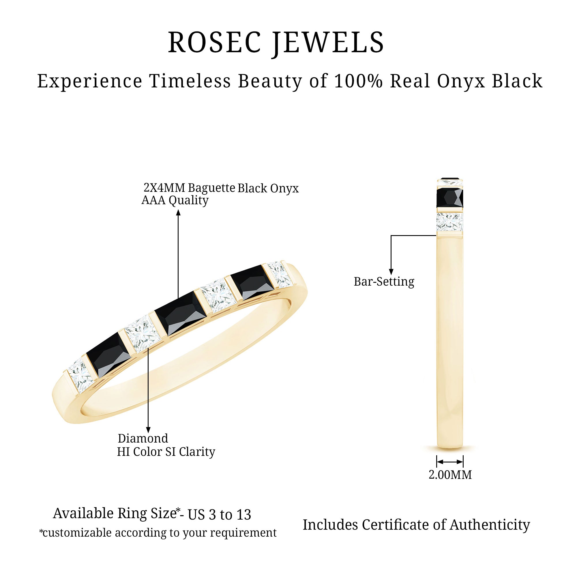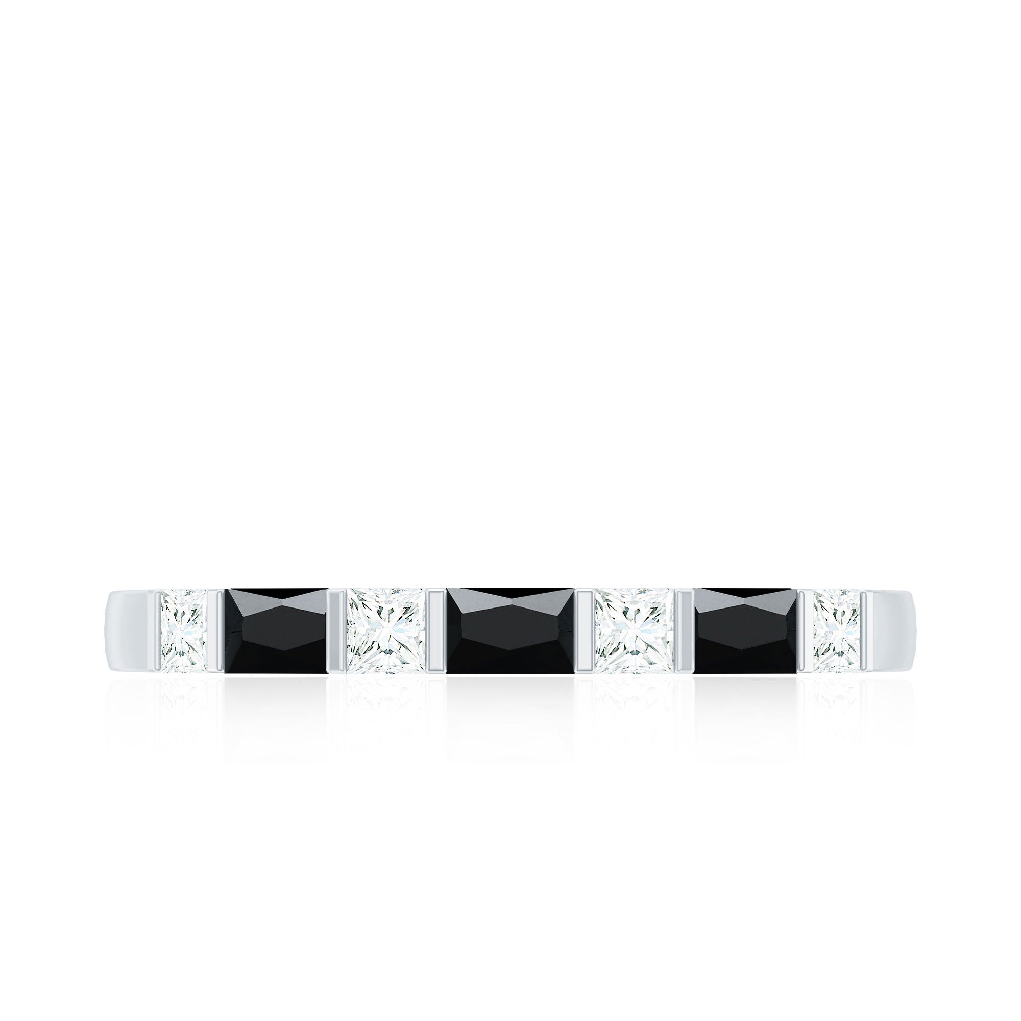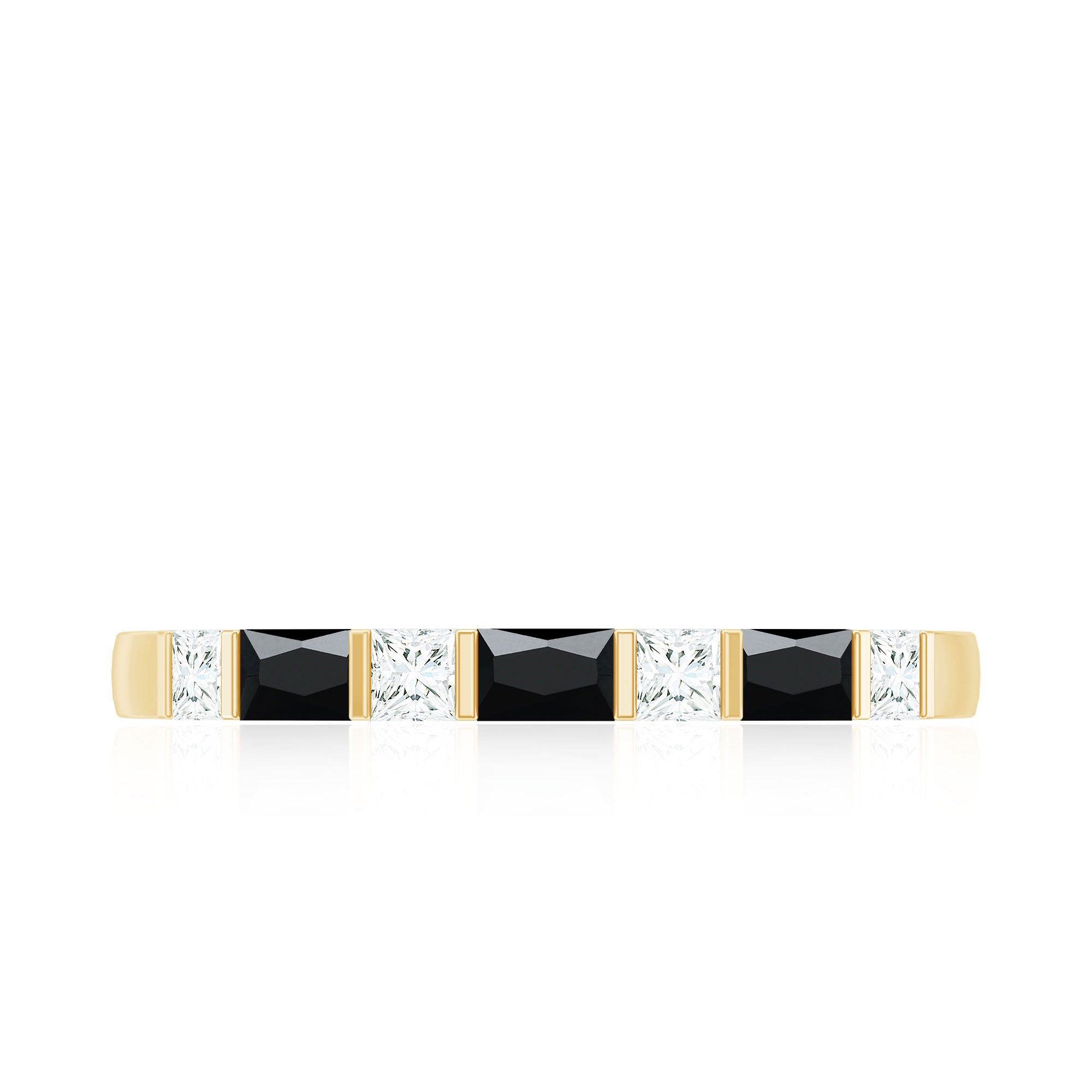 Give her something that speaks of style and sentiment. Designed for moments that matter, or simply to show you care, this Black Onyx Eternity Ring brings a refined touch to any jewelry collection. The design features baguette cut black onyx stones and princess cut real diamonds, creating a beautiful contrast of dark and light. The alternating pattern adds visual interest and a modern feel, while the secure bar setting keeps each stone in place for lasting wear. Perfect for stacking or wearing alone, the half eternity layout offers a graceful look that is both eye-catching and timeless. Whether she prefers a minimalist style or loves to mix and match, this Half Eternity Wedding Band adapts easily to her personal taste. Crafted with attention to detail using AAA quality black onyx and HI-SI quality diamonds, it is made to last and feel comfortable throughout the day. Available in US sizes 3 to 13, finding the right fit is simple. This Onyx and Diamond Wedding Band arrives in an elegant jewelry box, making it a thoughtful gift that is ready to give for birthdays, anniversaries, or just because.