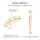 Simplicity meets sophistication in this captivating Moissanite Promise Ring, a perfect blend of elegance and modern charm. Thoughtfully handcrafted in precious metal, this Solitaire Ring features a brilliant 5 MM round cut moissanite set in bar setting, offering a bold yet refined look. The wide band adds a statement-worthy presence on the hand and adds an unexpected detail that elevates the entire design. With its D color and VS1 clarity, the ethically sourced moissanite sparkles with fire and brilliance, closely resembling the beauty of a natural diamond, without the high price or environmental impact. This minimalist yet powerful Pre Engagement Ring is a timeless piece she will cherish forever, whether it is gifted for a heartfelt promise, a memorable proposal, or just because she deserves something special. Available in US ring sizes 3 to 13, we also offer a complimentary ring sizer upon request to ensure a perfect fit. Affordable yet luxurious, this Half Carat Moissanite Ring offers a sustainable and budget-friendly alternative to traditional diamonds, making it an ideal choice for the modern woman who values both beauty and meaning.