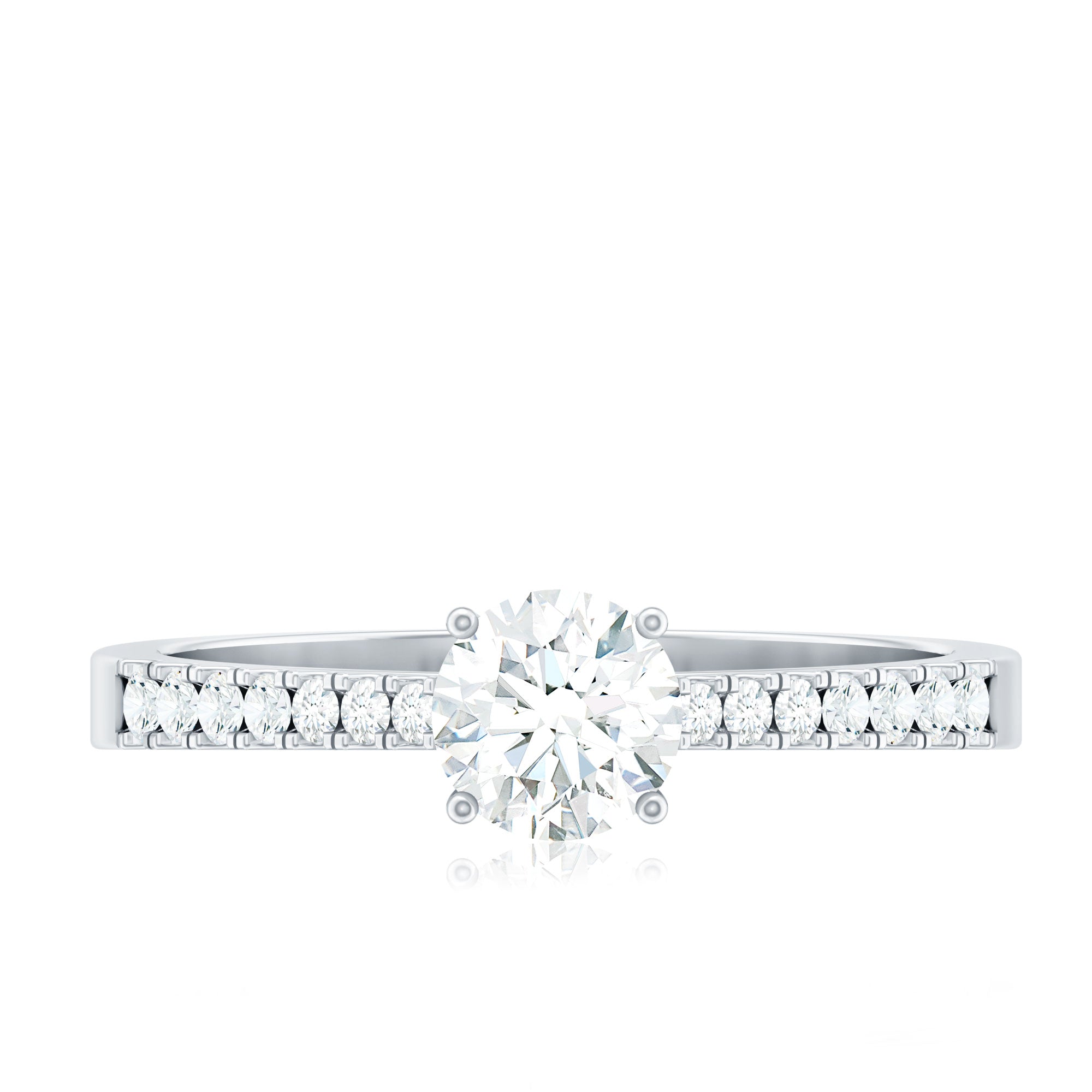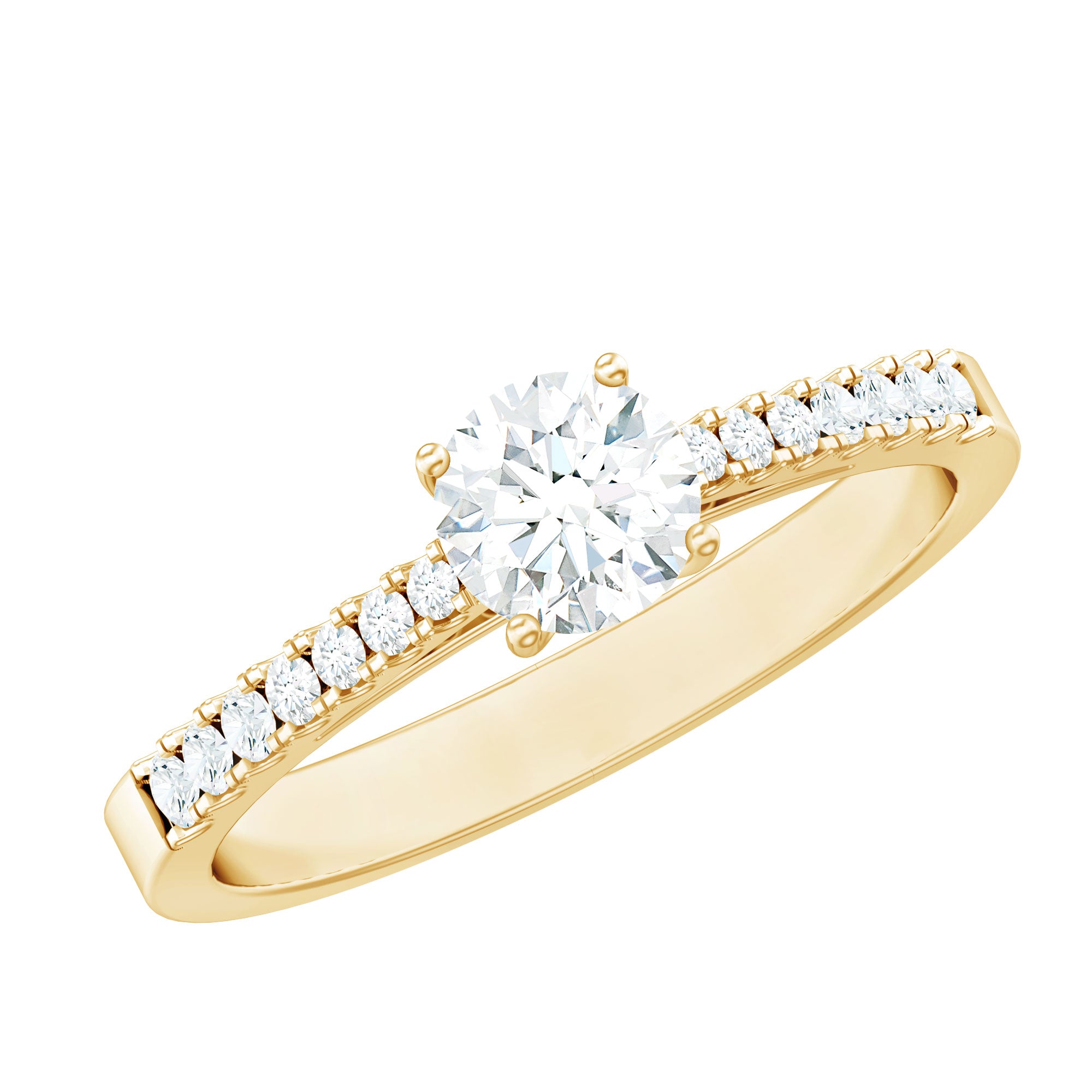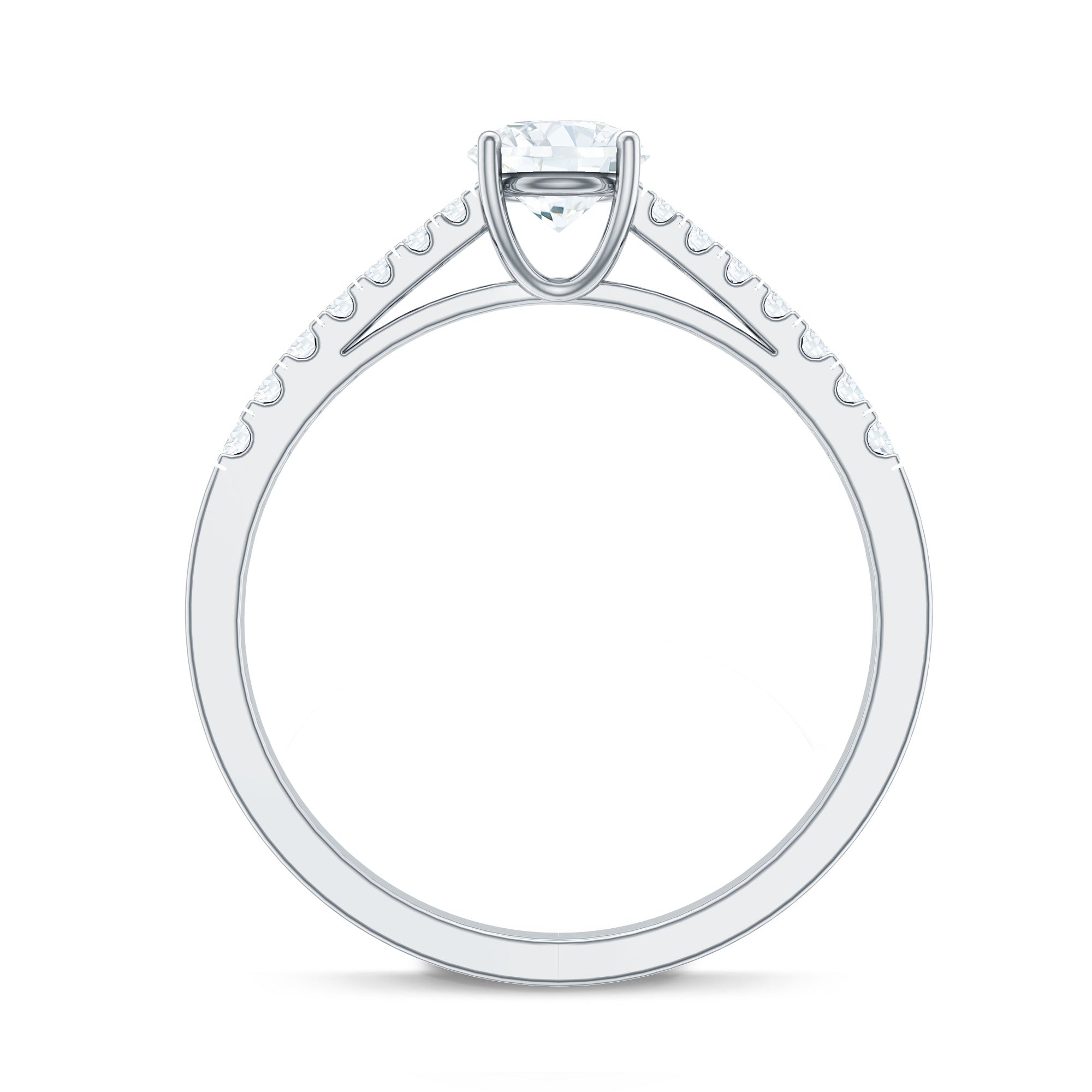 This elegant Moissanite Engagement Ring is designed to shine with timeless beauty and soft sparkle. At the center, a 5 MM round moissanite sits securely in basket setting. The basket setting gently lifts the stone, allowing more light to enter from every angle and making the center stone sparkle even more. On both sides of the center stone, small round moissanites are arranged in a graduated style. This smooth transition draws your eyes toward the main stone and gives the Side Stone Engagement Ring a balanced and graceful look. All the moissanite stones in this Round Engagement Ring are of D color and VS1 clarity, known for their brilliant shine. Whether worn alone as an engagement ring or as a promise ring, this design is made to fit perfectly into any style. This Half Carat Moissanite Ring is perfect for someone who loves classic style with a little modern twist. With its thoughtful details and classic look, it is a piece that can be cherished for years to come.