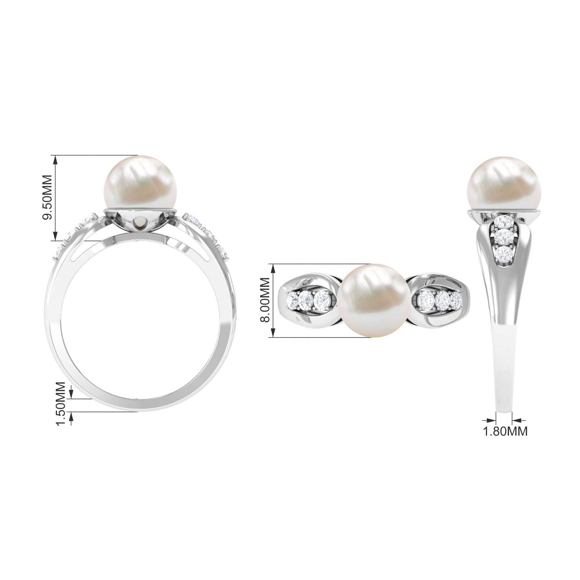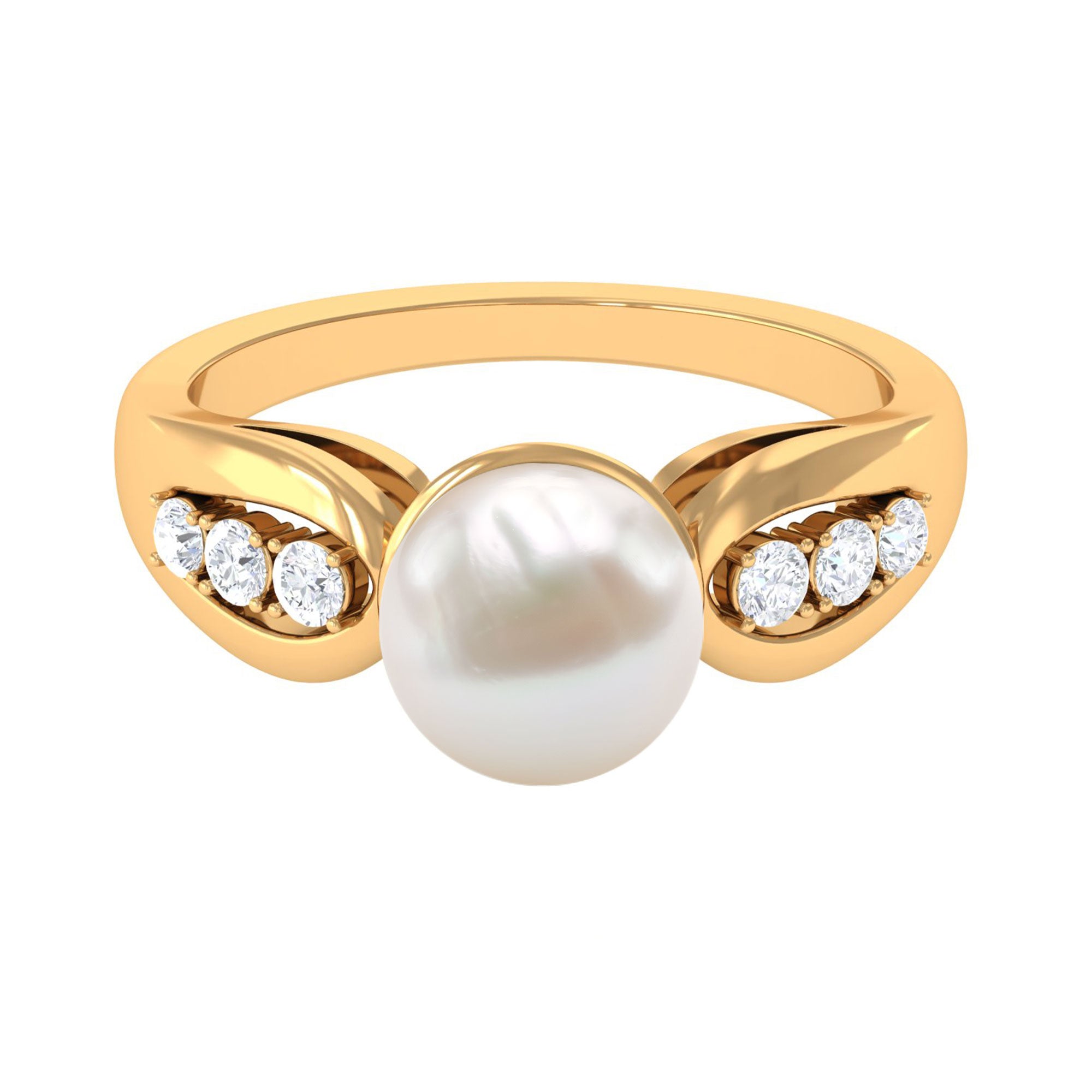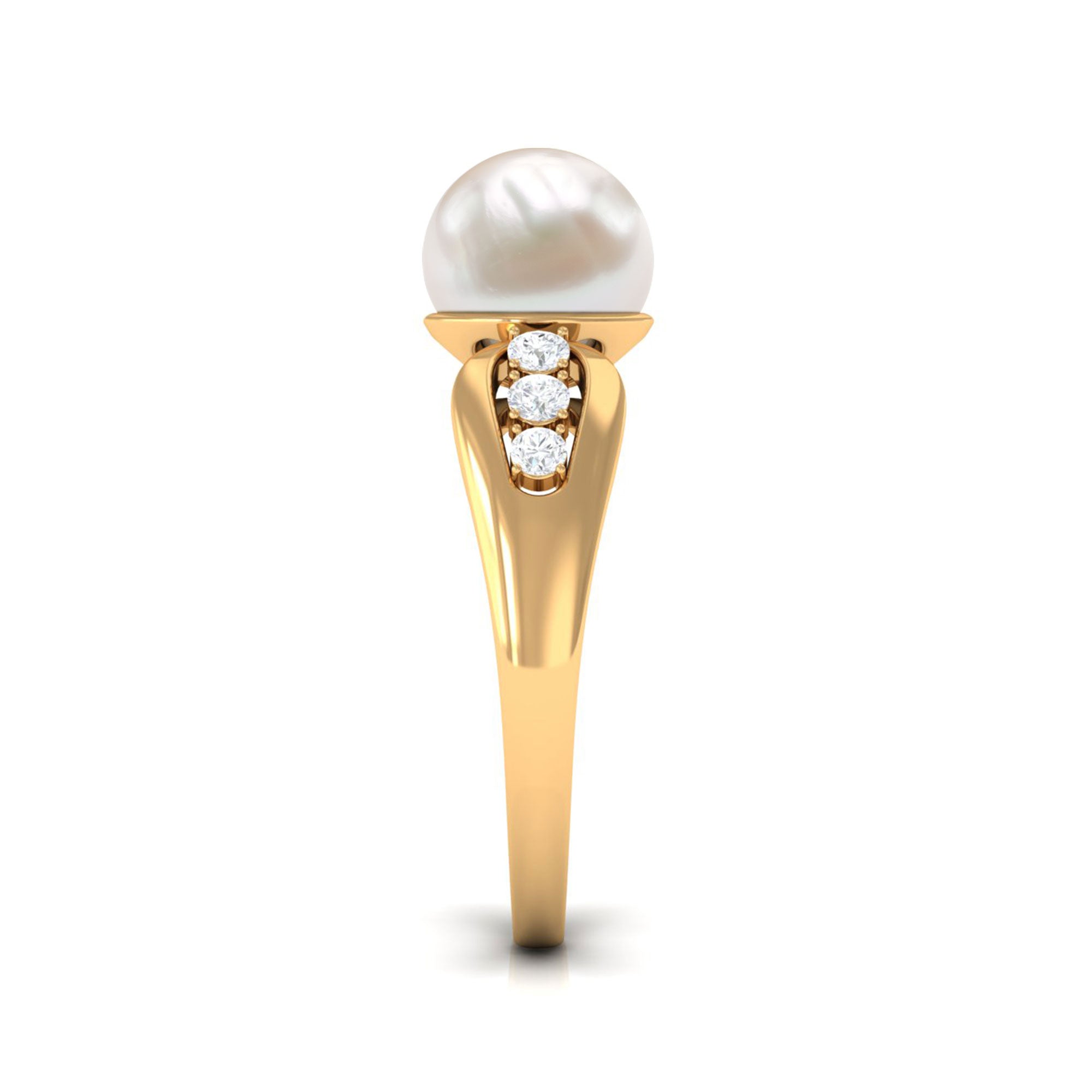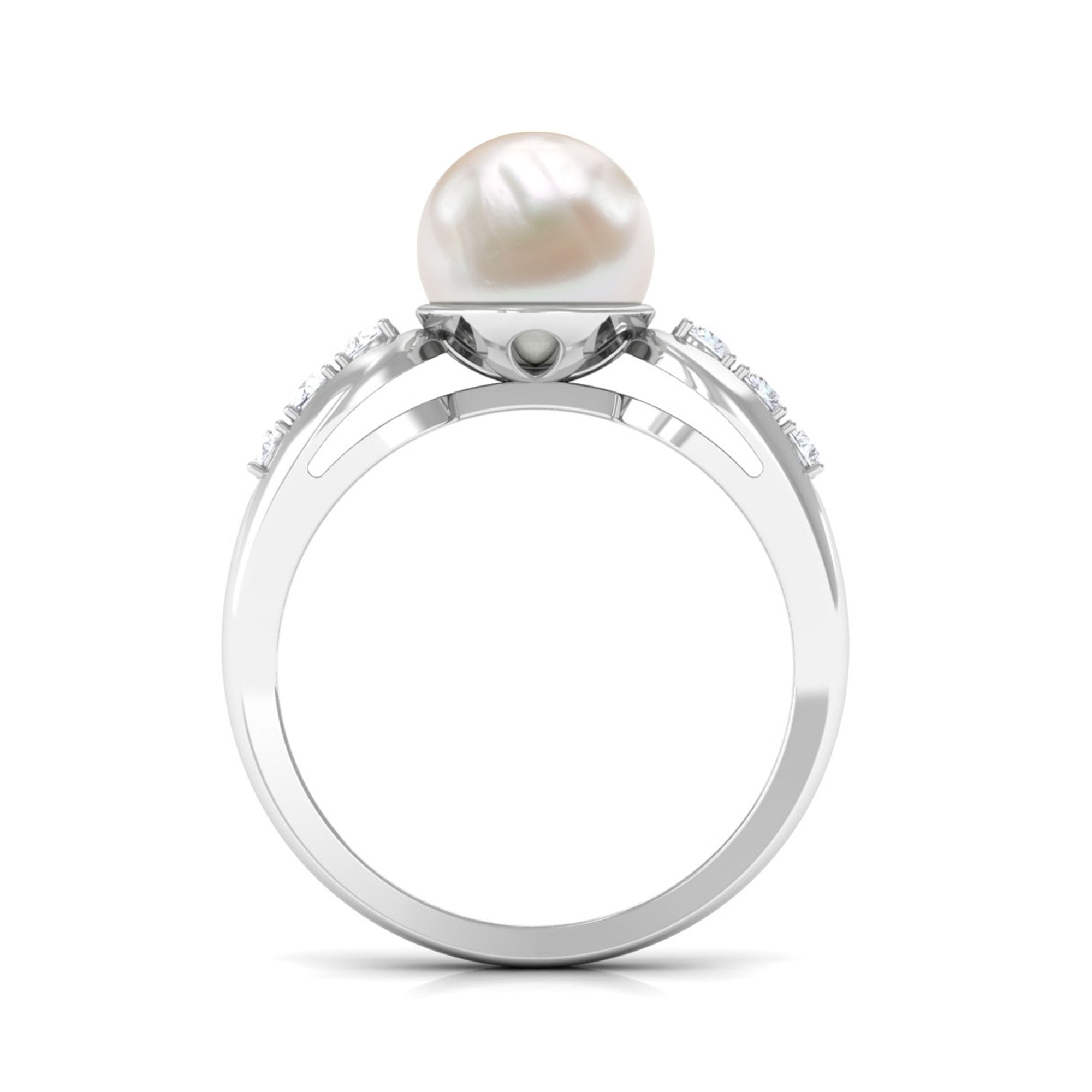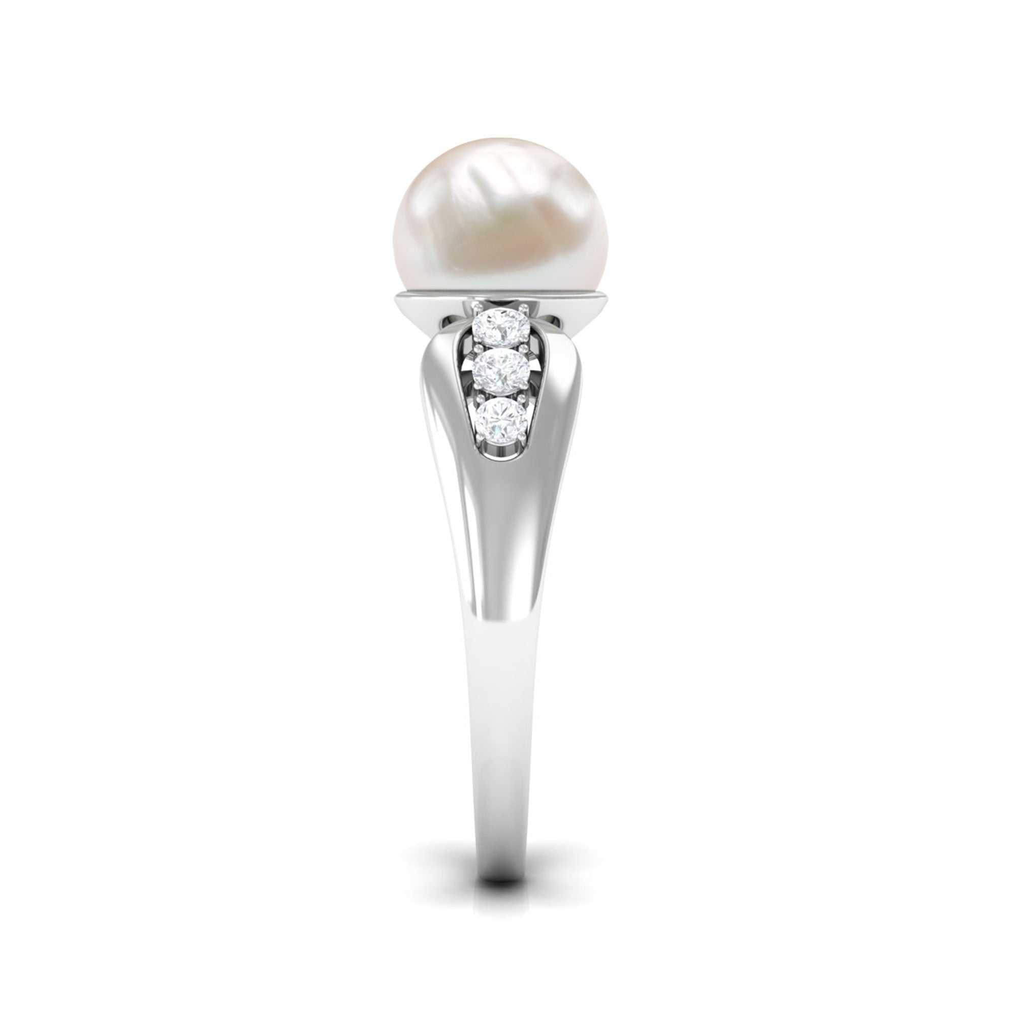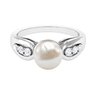 Bead Set Freshwater Pearl Solitaire Ring with Diamond Side Stones