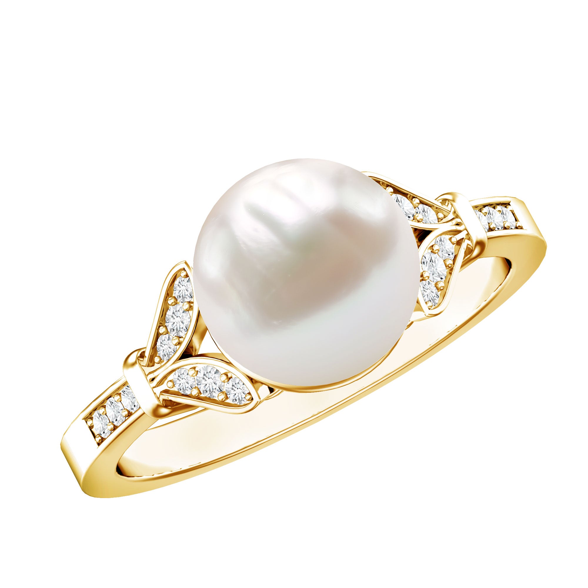Bead Set Freshwater Pearl Solitaire Split Shank Ring with Diamond