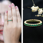 A circle of endless sparkle and beauty, this Emerald Eternity Ring is made for every woman who loves to shine with style and grace. Designed to capture hearts, this Full Eternity Ring is a true symbol of love that never ends. The stunning design features round cut emerald stones set beautifully in half beaded bezel setting, creating a perfect line of glowing green gems that wrap around the band in an unbroken circle of brilliance. Each emerald sparkles with AAA quality and vibrant hue, giving the Stackable Wedding Band a fresh and timeless charm. This Emerald Anniversary Band is a celebration of elegance and emotion. The continuous circle of emeralds represents everlasting love, unity, and strength, making it a meaningful choice for special occasions. Its delicate yet striking design makes it perfect for any moment, from a glamorous evening out to a cozy dinner date. The beaded bezel setting not only enhances the beauty of each emerald but also ensures comfort and durability for daily wear. For all the lovely ladies who never go out of style, this Emerald Stackable Ring adds a dash of color and sparkle to every look.