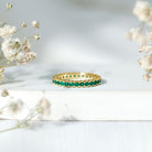 Beaded Bezel Set Emerald Full Eternity Stackable Ring
