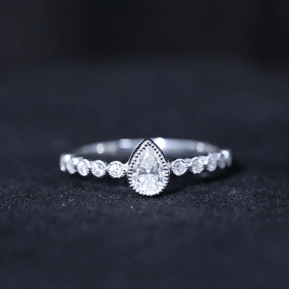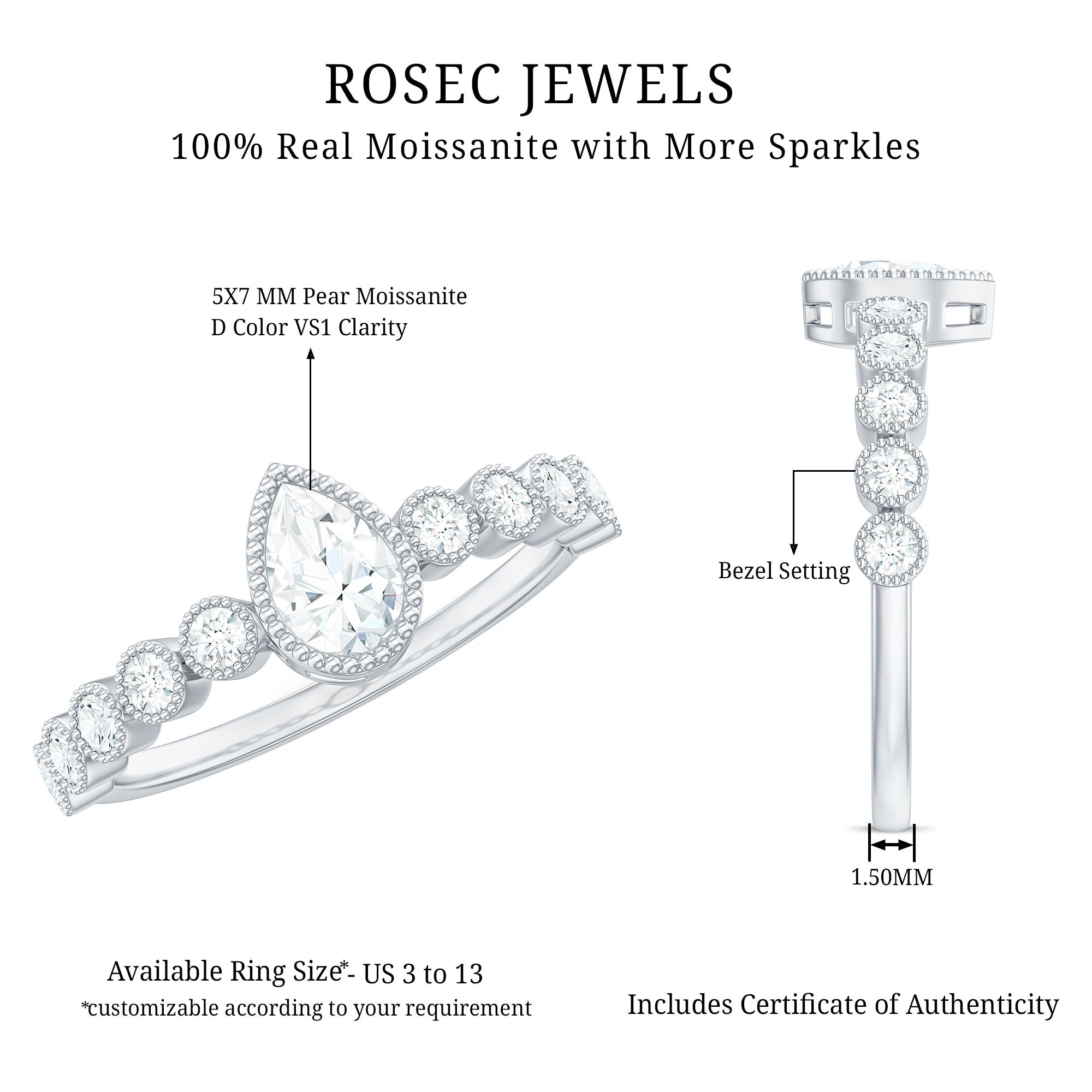 Beaded Bezel Set Moissanite Pear Engagement Ring