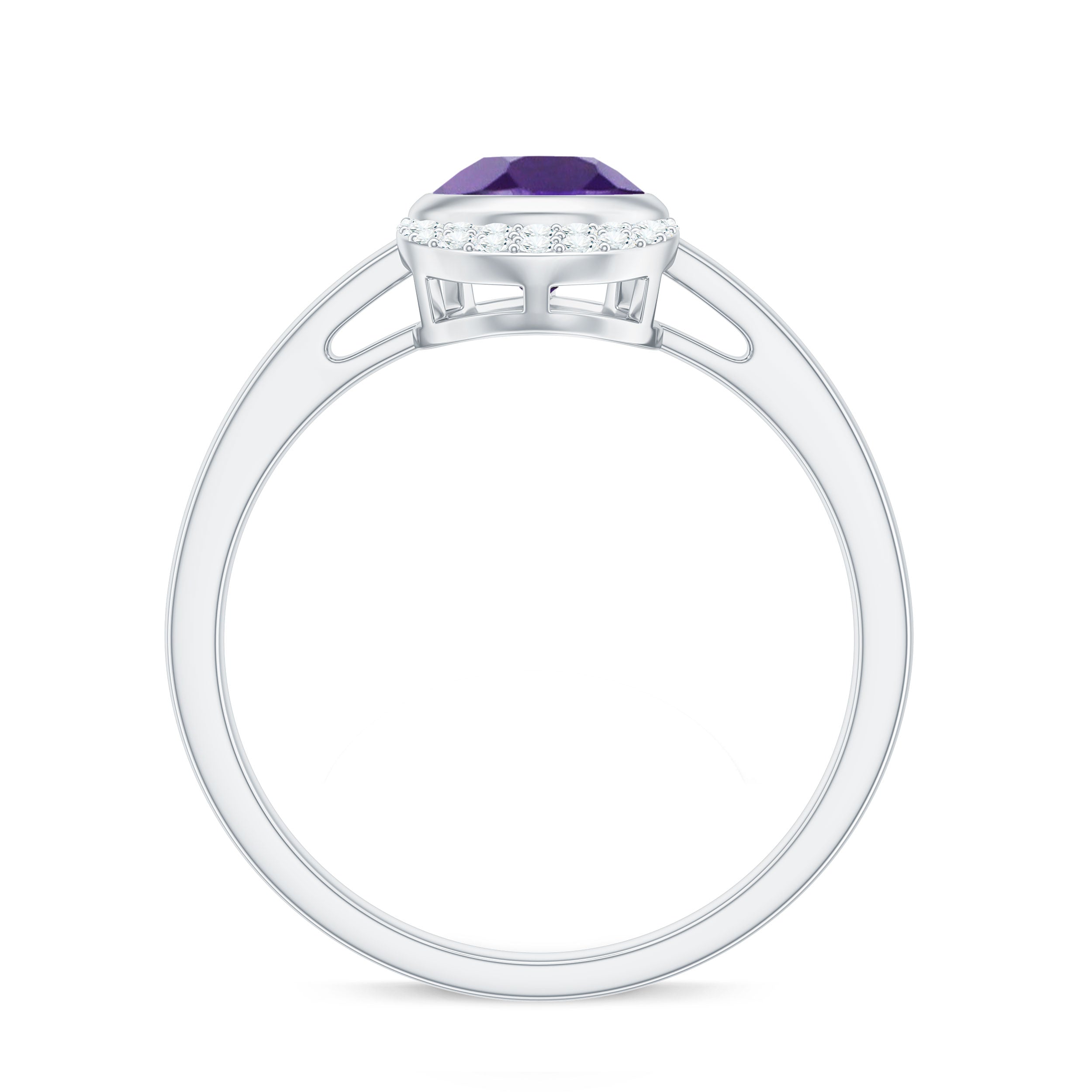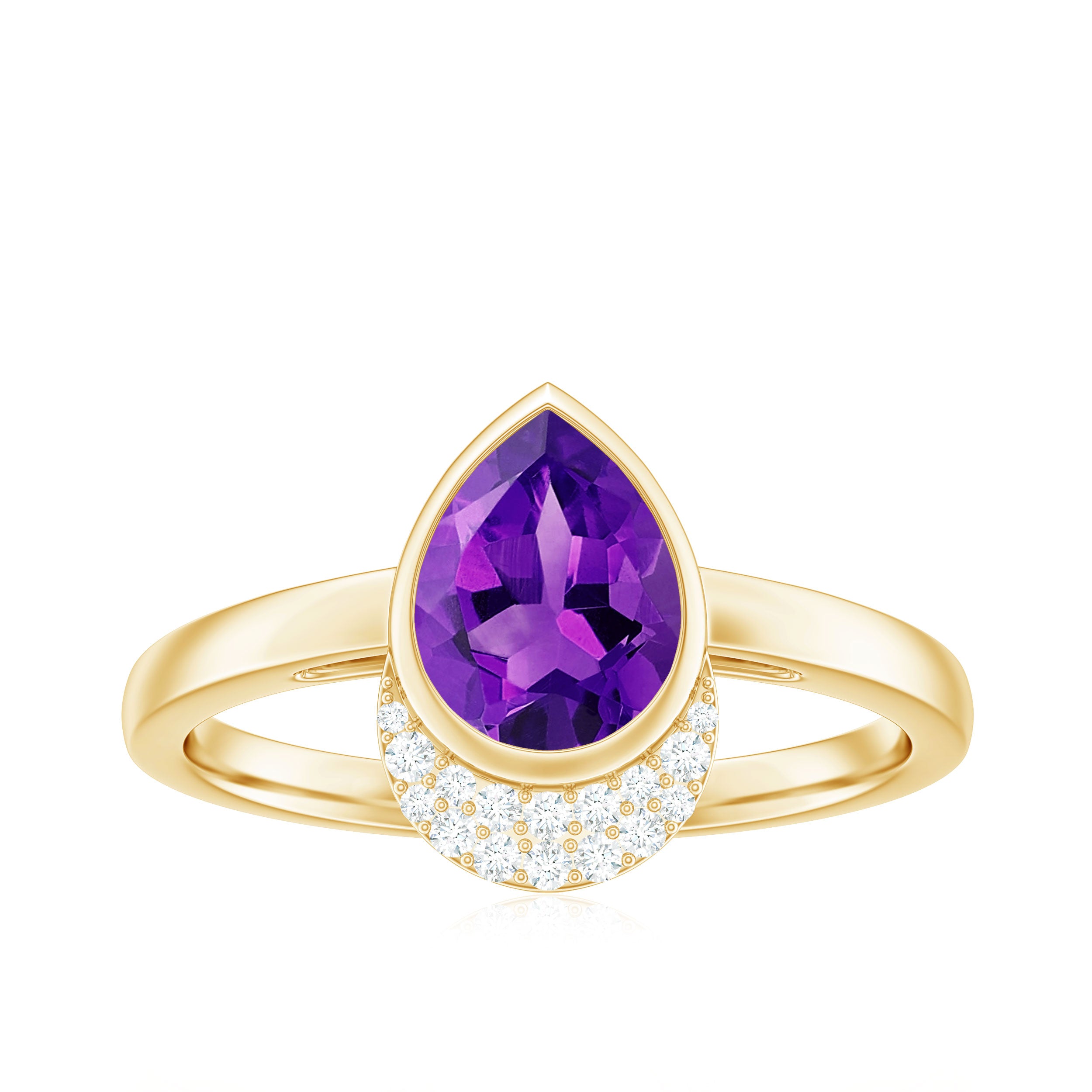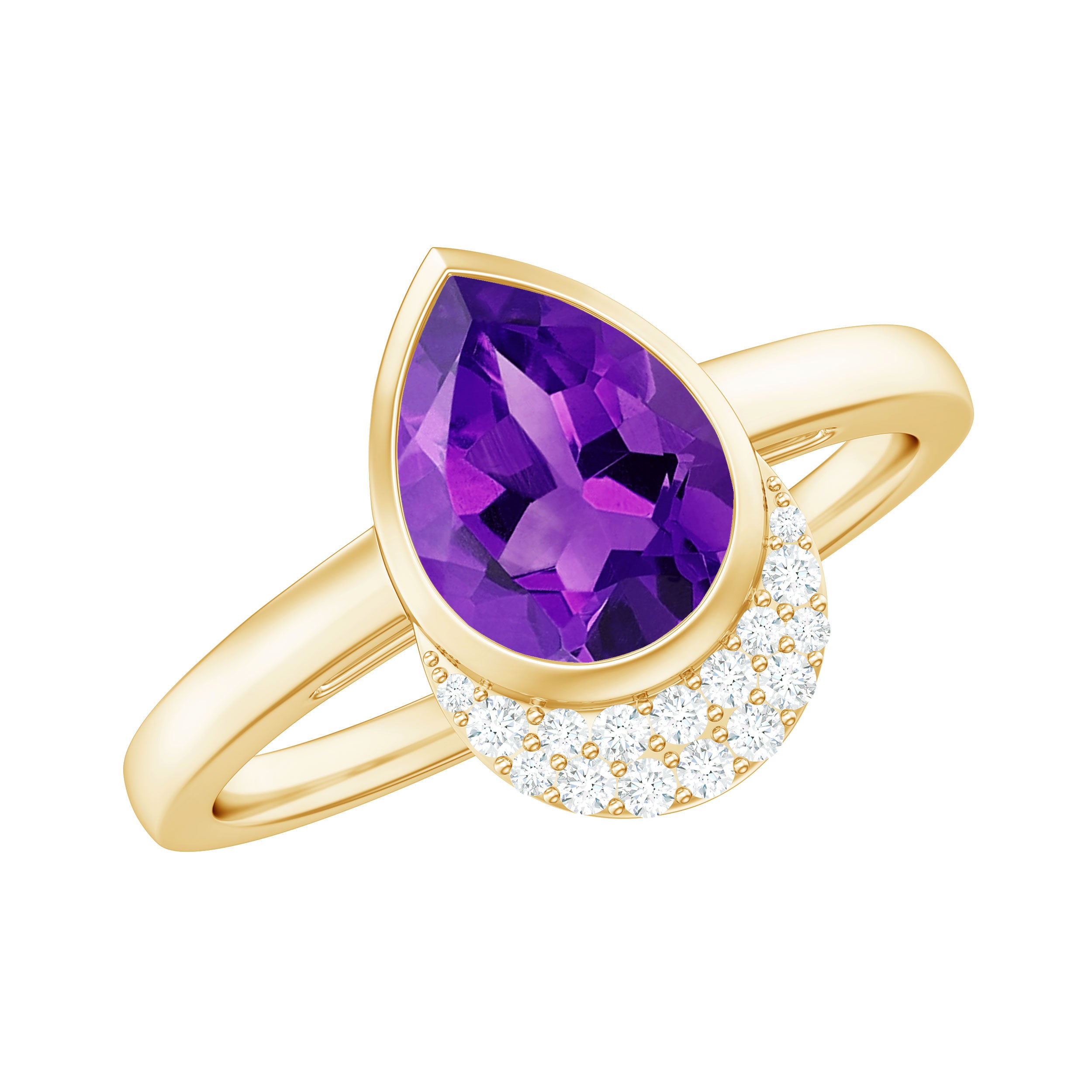 Bezel Set Amethyst Teardrop Cocktail Ring with Diamond Accent