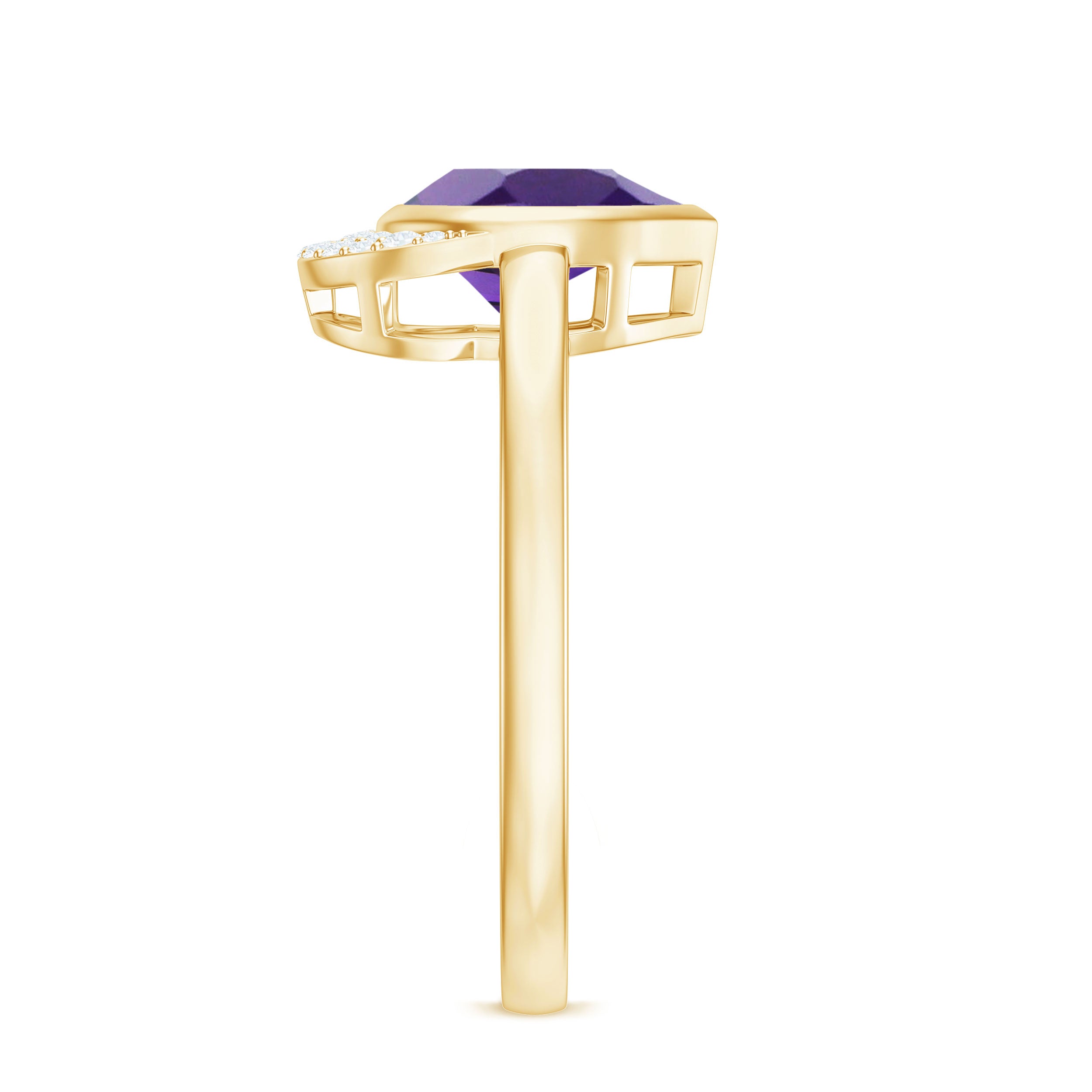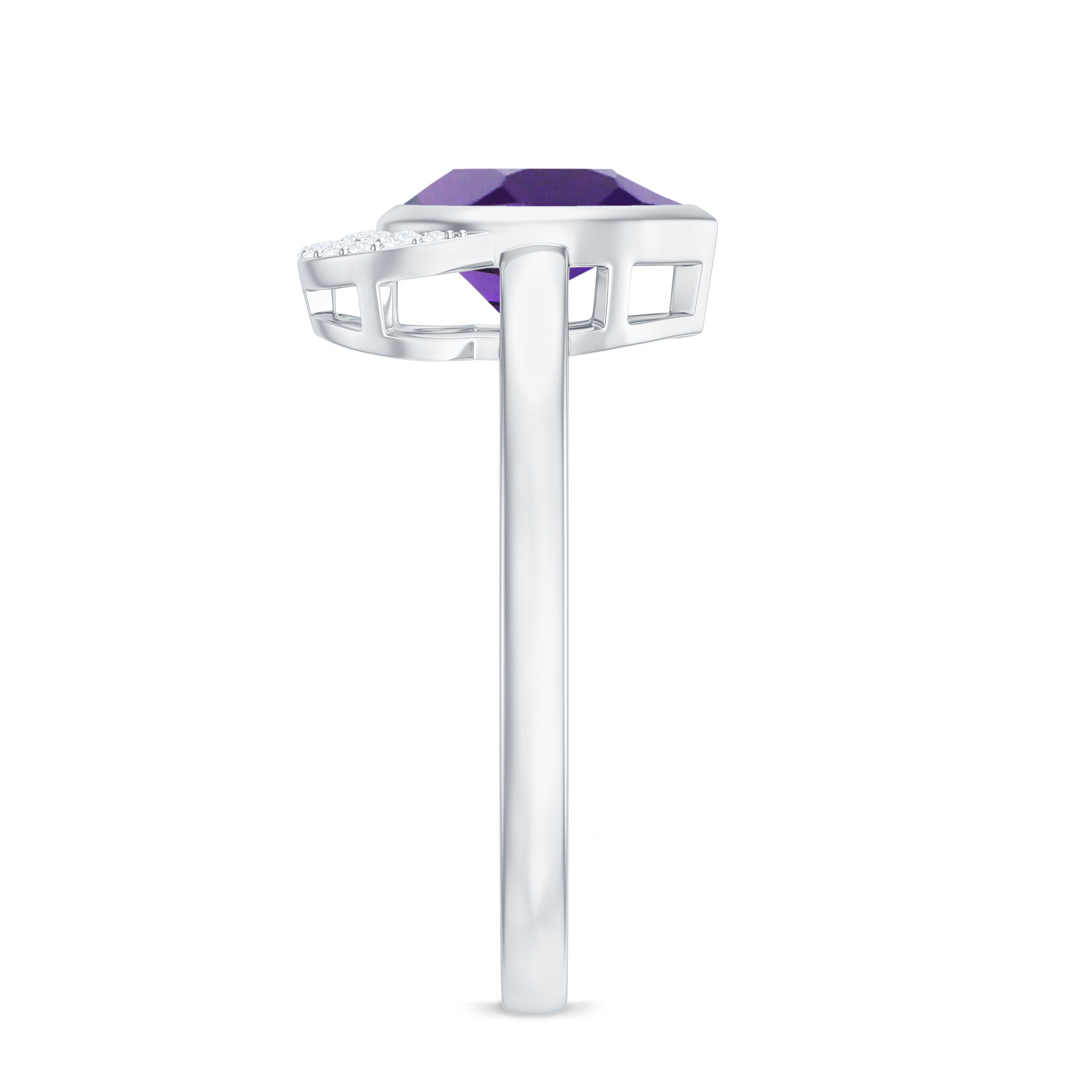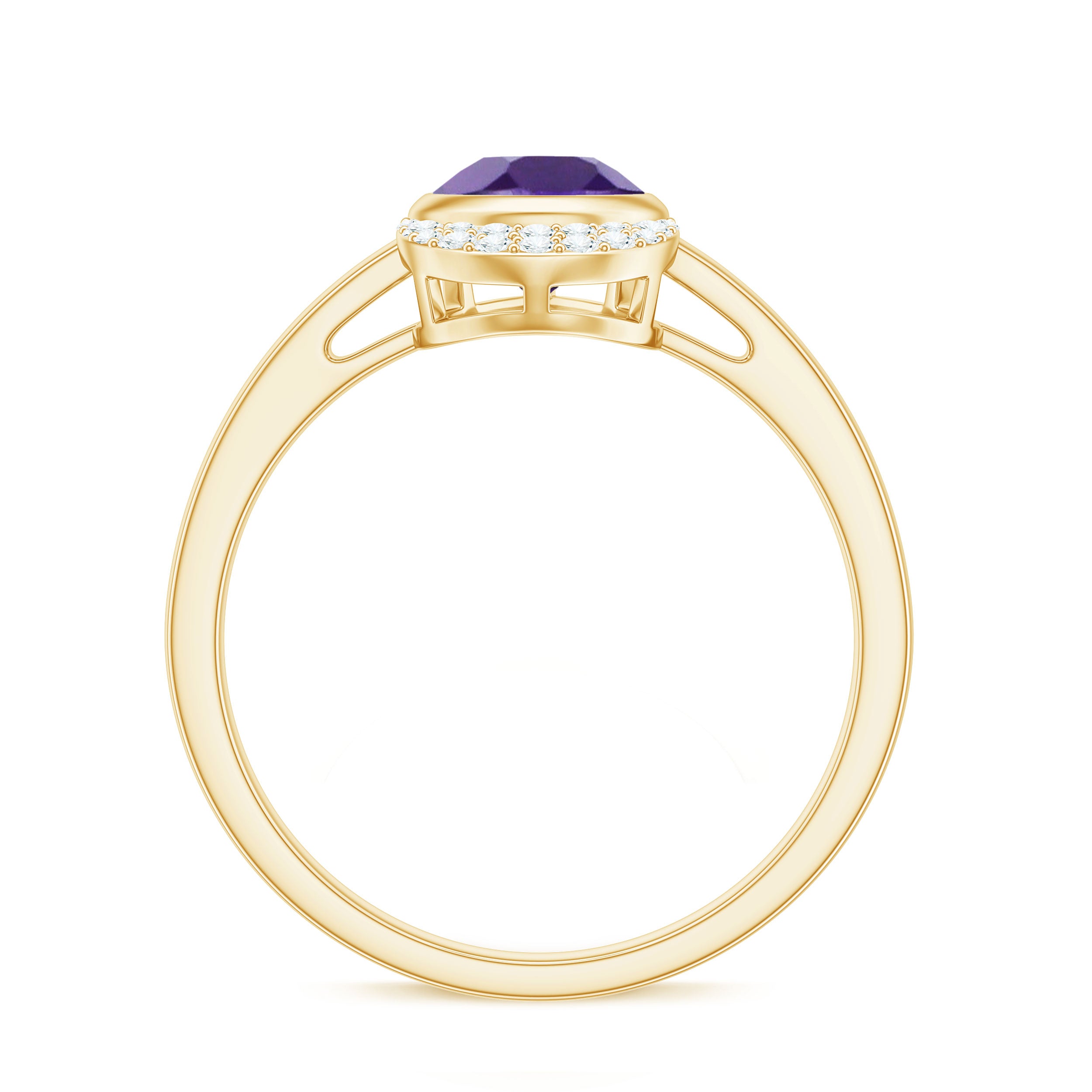 Bezel Set Amethyst Teardrop Cocktail Ring with Diamond Accent