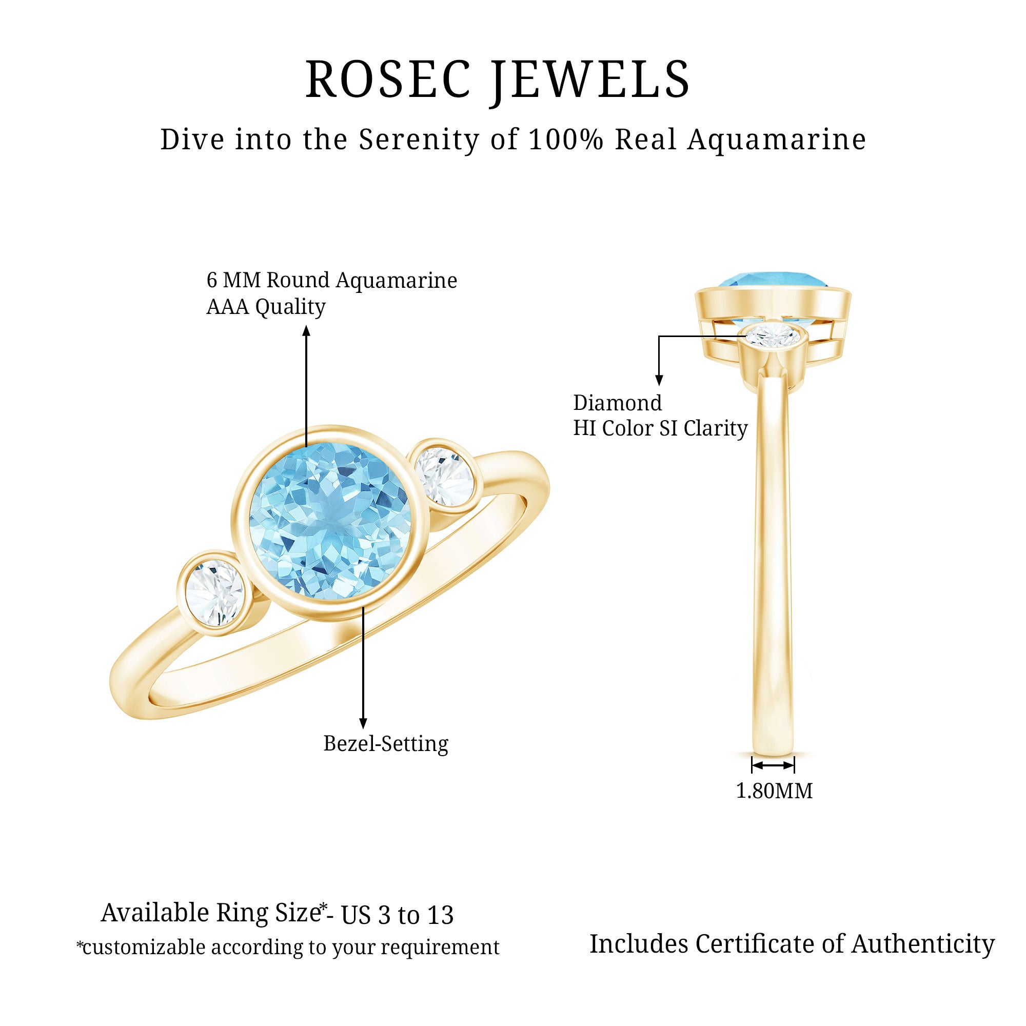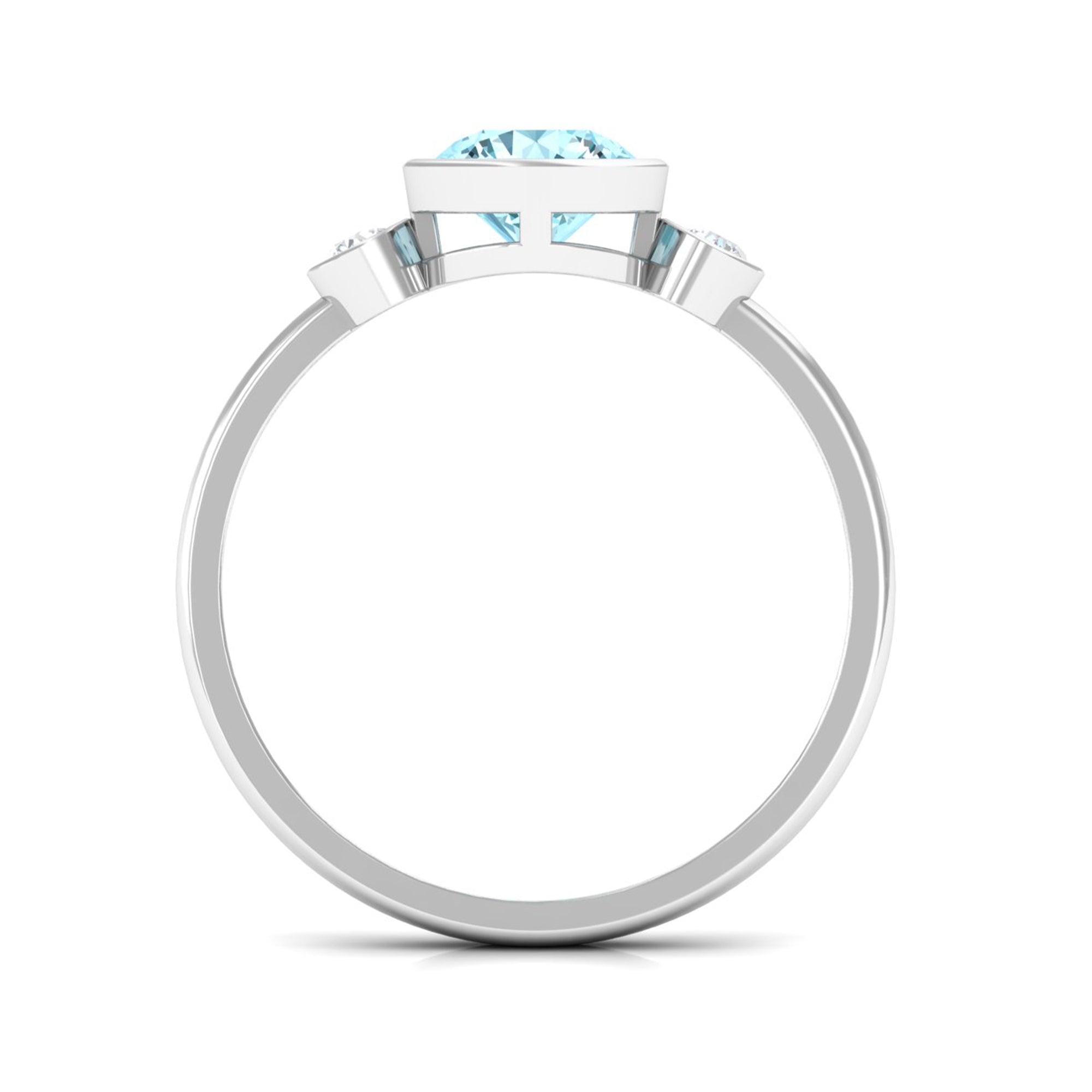 Bezel Set Aquamarine Solitaire Engagement Ring with Diamond