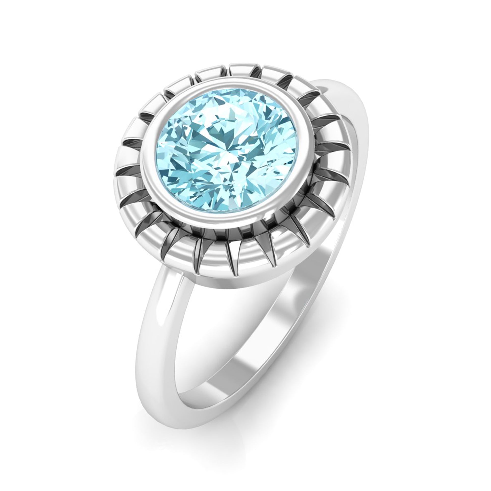 Bezel Set Aquamarine Solitaire Engagement Ring