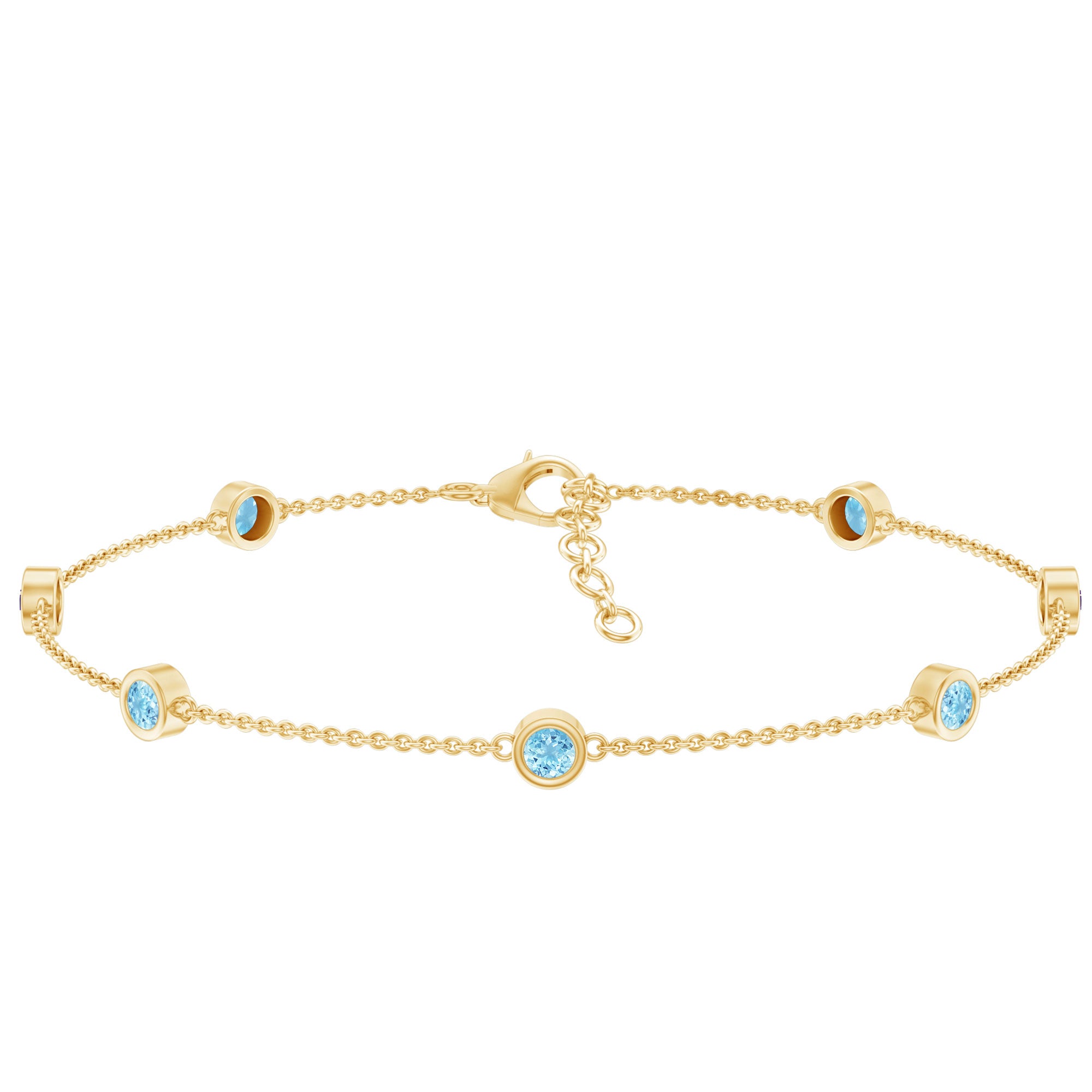 Express your love and make her happy by giving her this Aquamarine Bracelet this Valentine. This Chain Bracelet will magnify the beauty of your wrist and make it beautiful. This Delicate Bracelet is decorated with Round Cut Aquamarine in Bezel Setting over the Station Chain. The Station Chain Bracelet adds a splash of serene elegance and will complement any look whether a brunch or Dinner get-together. This March Birthstone Bracelet beholds the shine of AAA quality Aquamarine. This bracelet is crafted for your special one, that will be delivered to you in a classic jewelry box with the certification of gemstone authentication.