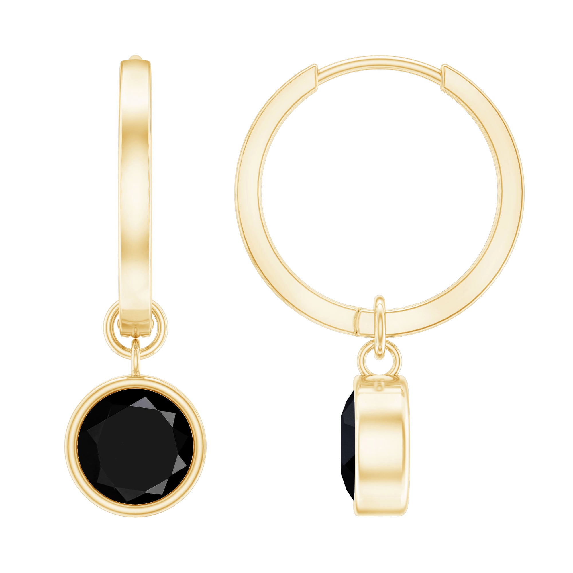Indulge in the allure of our exquisitely crafted Hoop Earrings, a modern and timeless addition to your jewelry collection. These Hoop Drop Earrings, feature a delicate small hoop attached to a sparkling Round Cut Black Onyx in a captivating bezel setting, destined to shimmer for eternity.