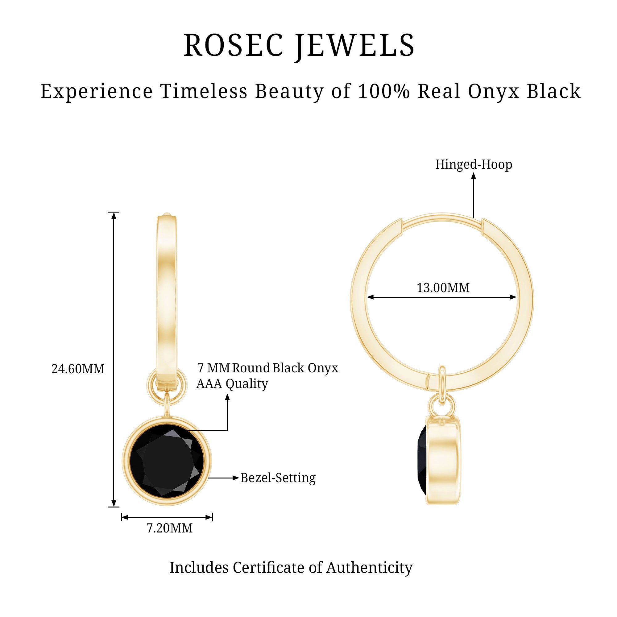 Indulge in the allure of our exquisitely crafted Hoop Earrings, a modern and timeless addition to your jewelry collection. These Hoop Drop Earrings, feature a delicate small hoop attached to a sparkling Round Cut Black Onyx in a captivating bezel setting, destined to shimmer for eternity.