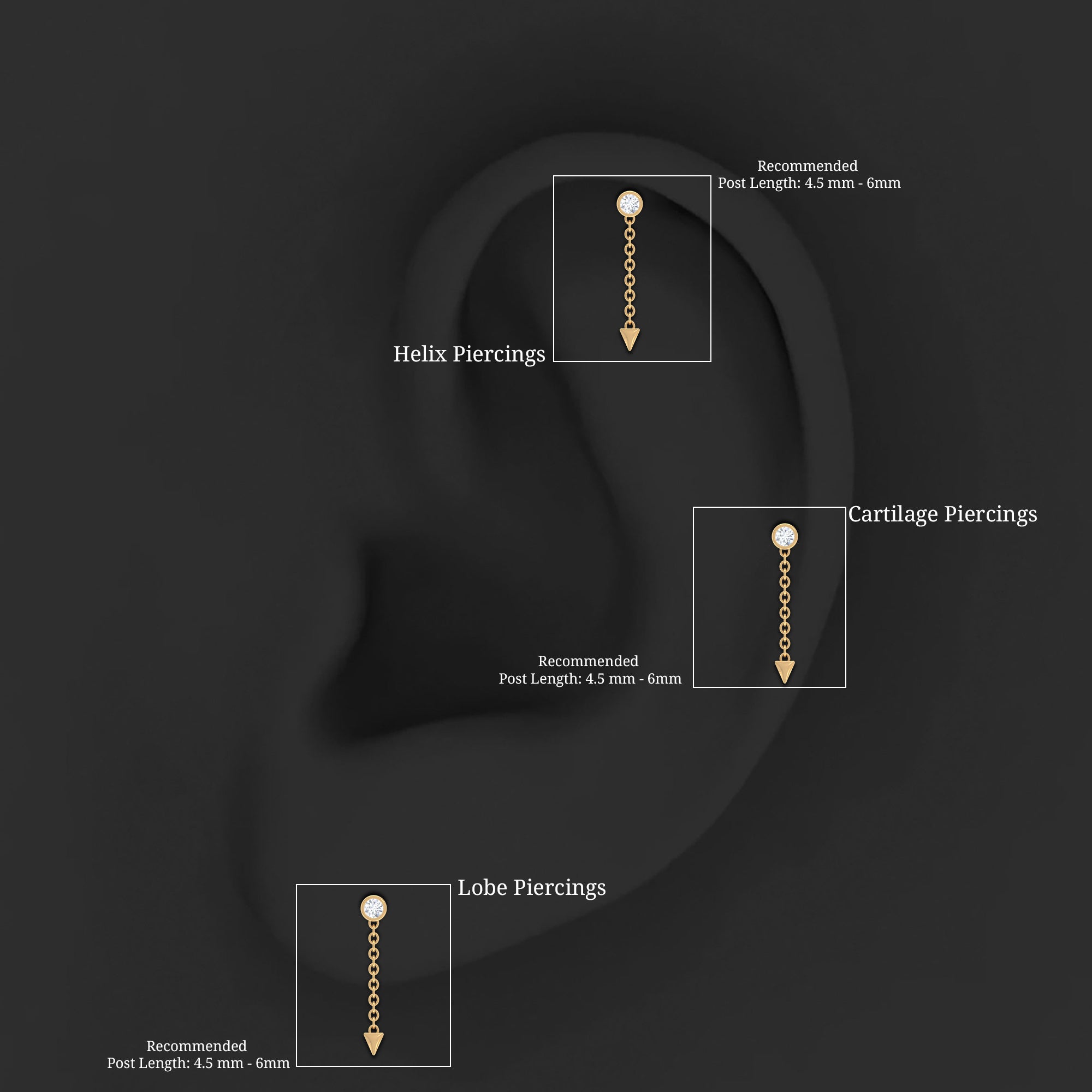 Bezel Set Diamond Chain Drop Earring for Cartilage Piercing