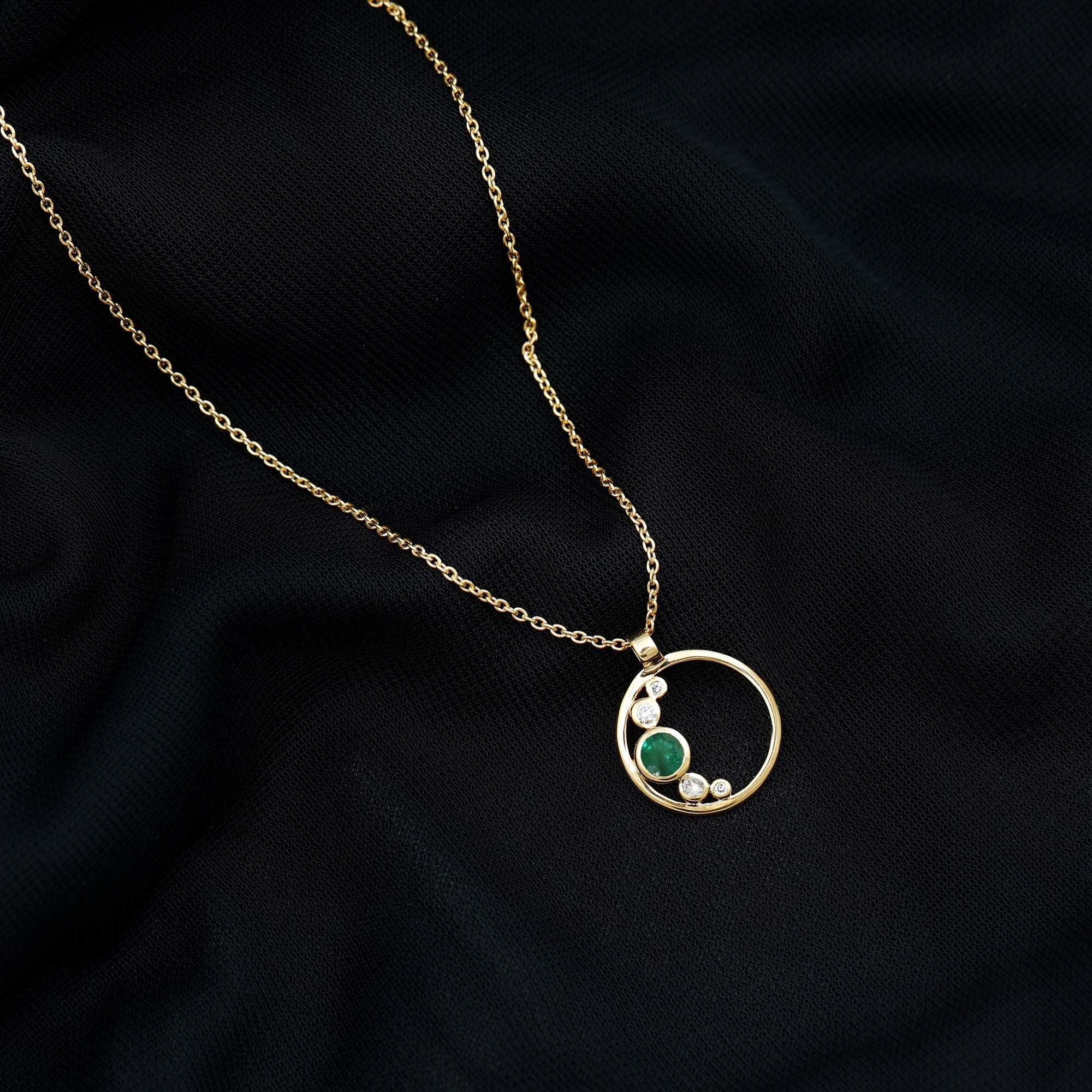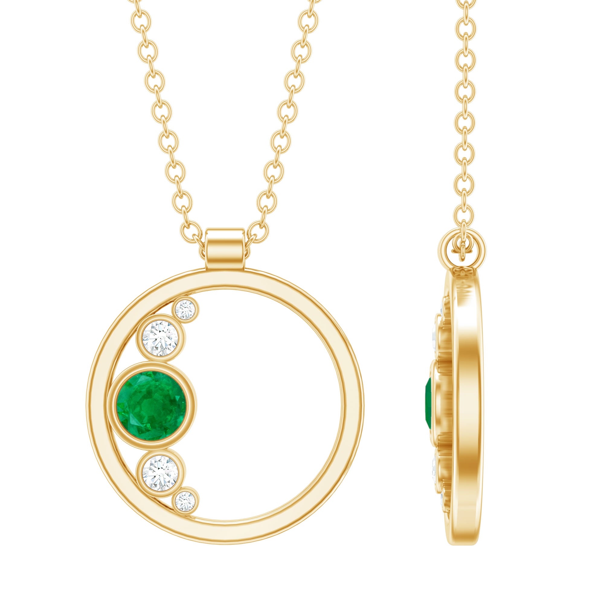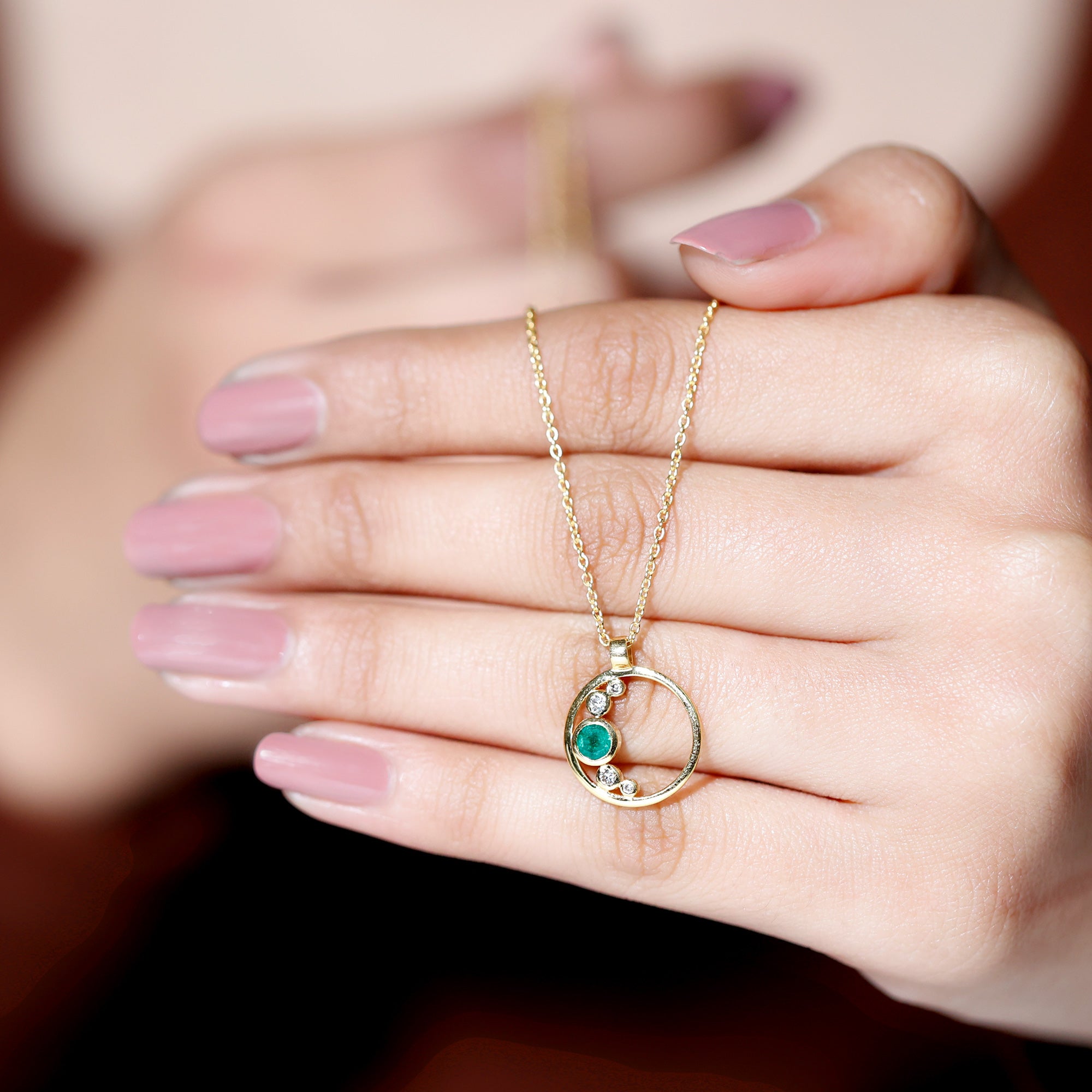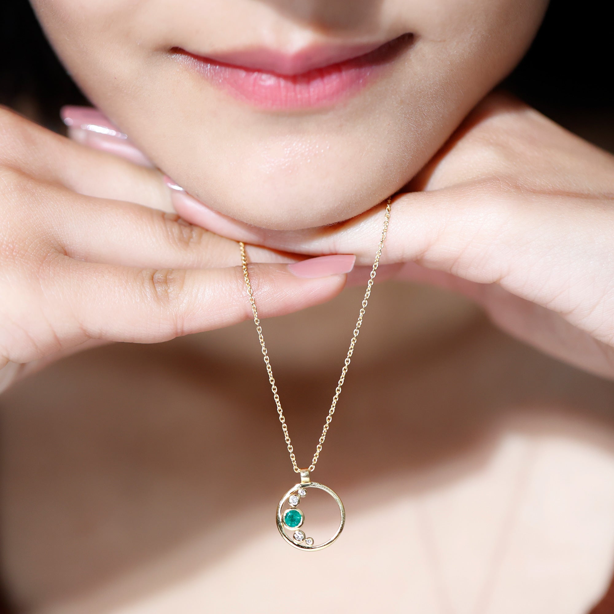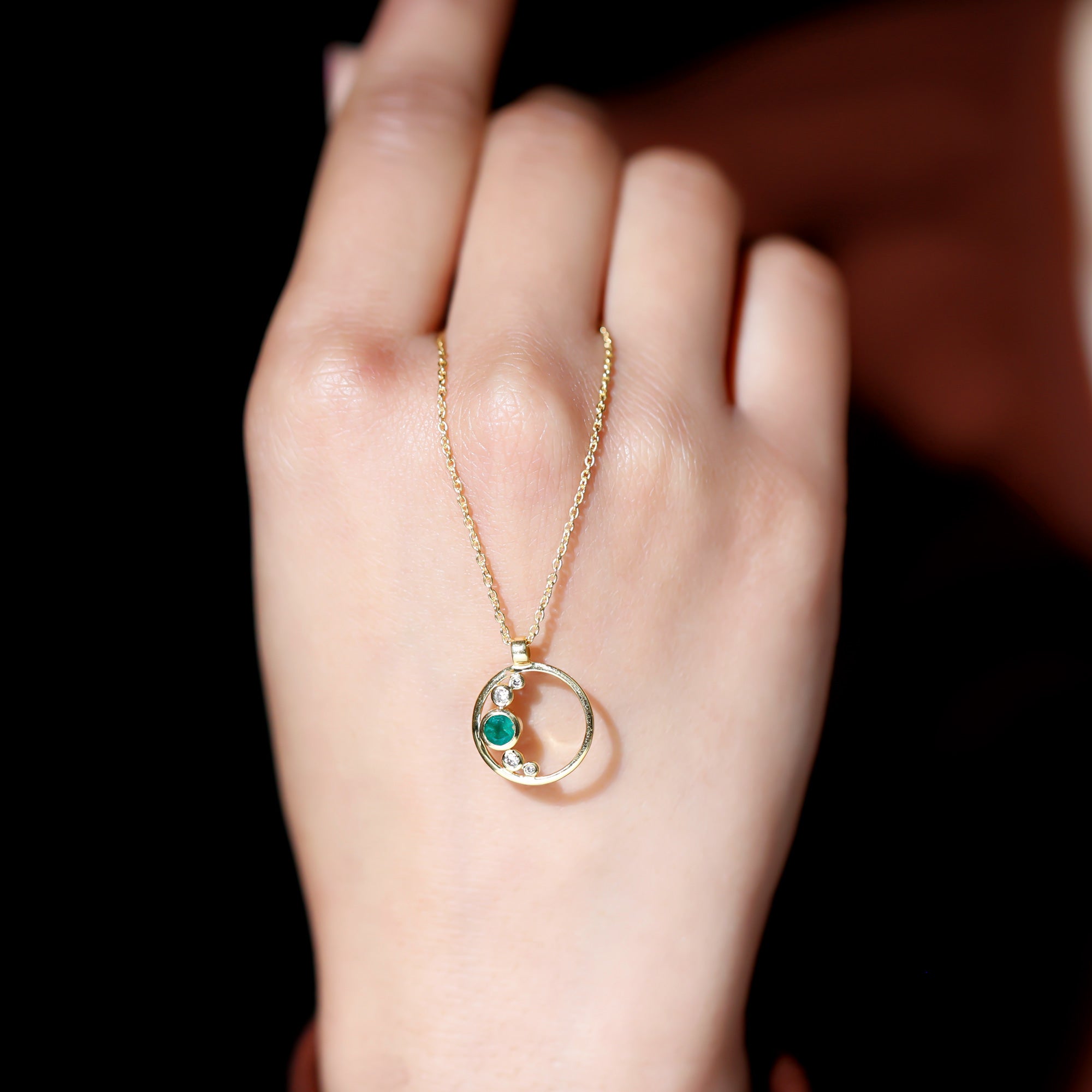 Add a flair of charm with this Emerald Pendant showcasing Round Shape Emerald and Diamond secured in Bezel Setting. The Circle Pendant is crafted with Solid Metal and can be effortlessly styled with your casual or dressy attire for achieving a gorgeous look. Treat yourself with this Minimal Pendant and it makes a sweet birthday present for her.