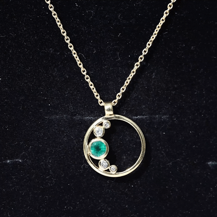 Bezel Set Emerald and Diamond Open Circle Necklace