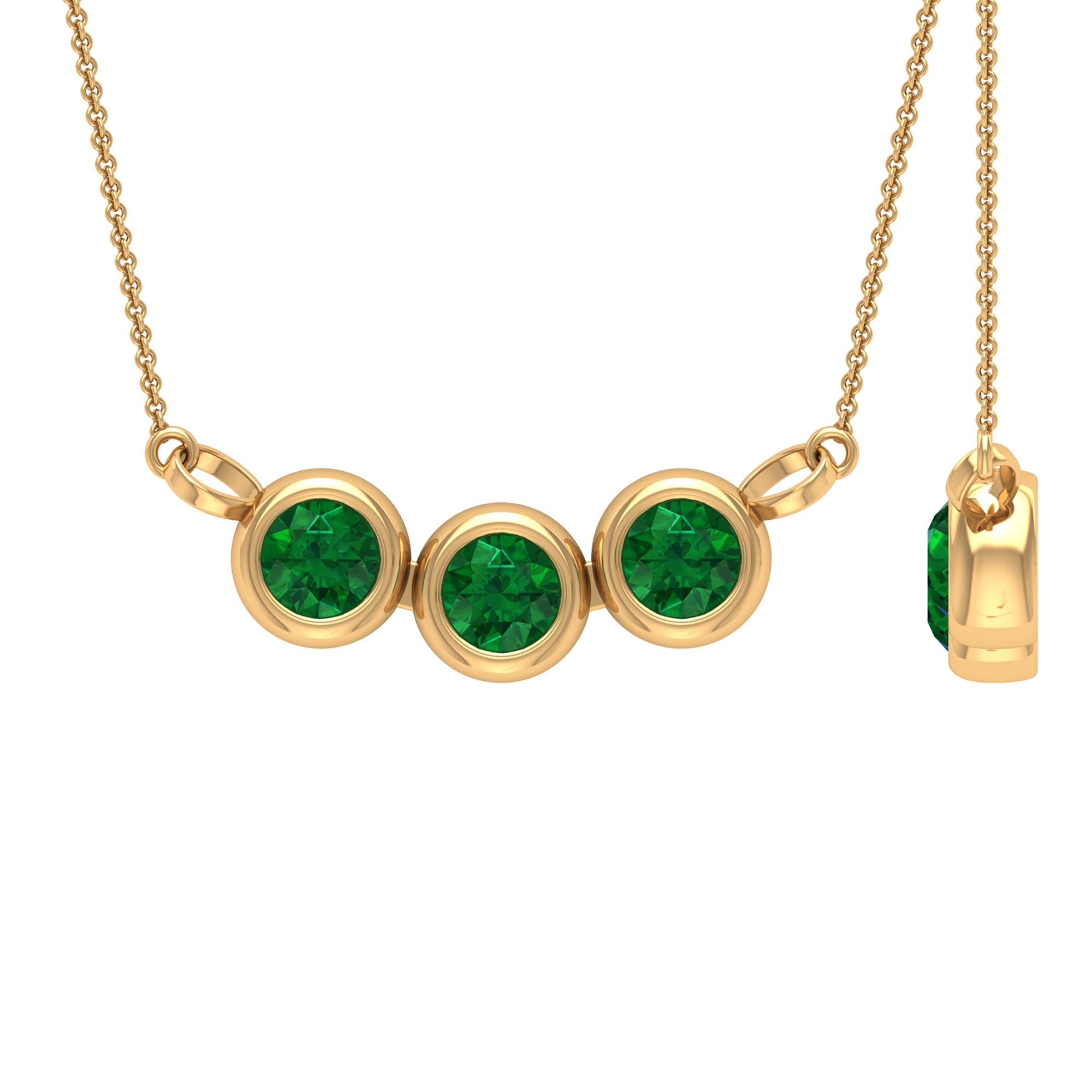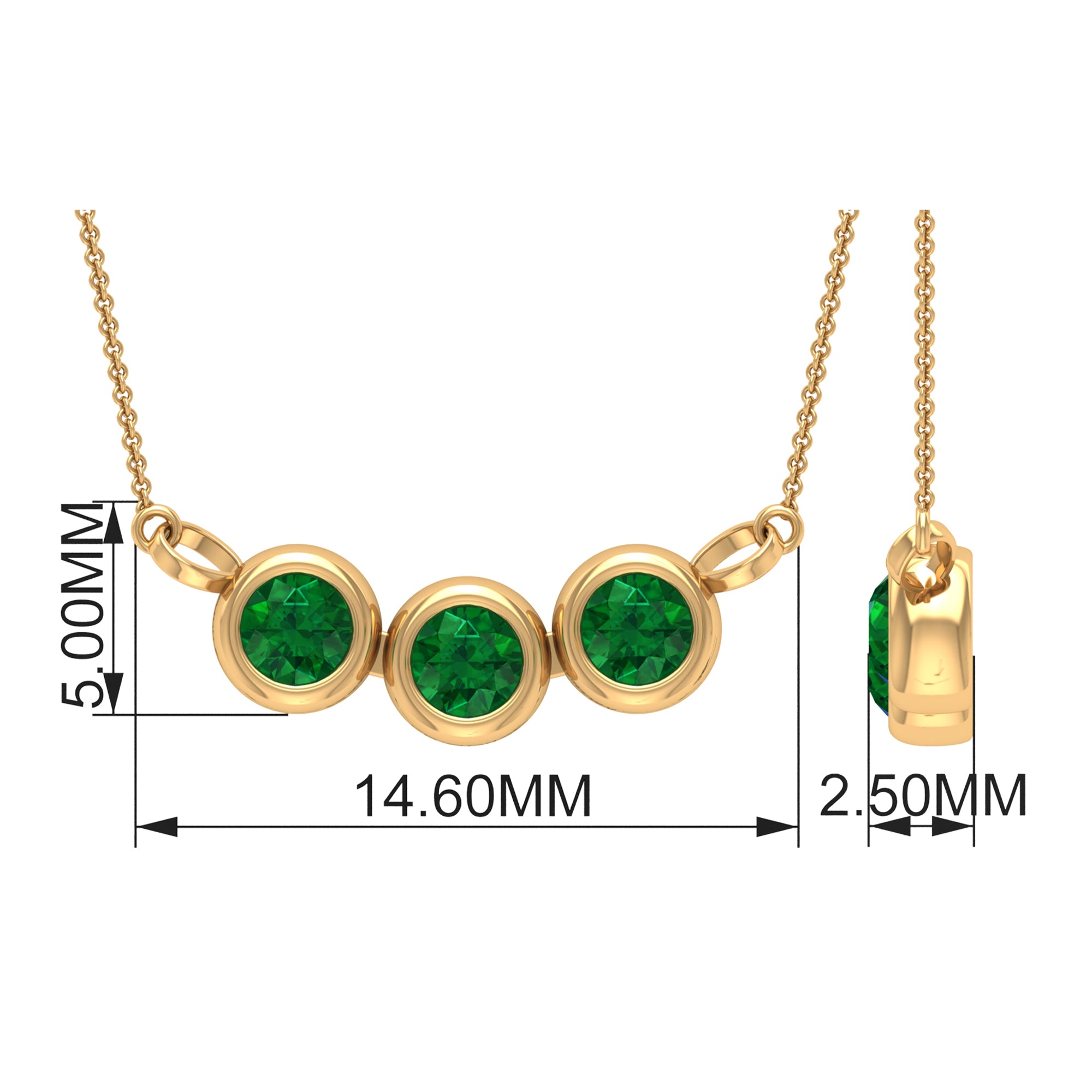 This elegant and classic Emerald Necklace is waiting for you. This Emerald Three Stone Necklace is featuring a trio of Round Shape Emerald in Bezel Setting. A perfect addition to any jewelry collection, this Green Emerald Necklace will make a beautiful and thoughtful surprise for your loved ones.