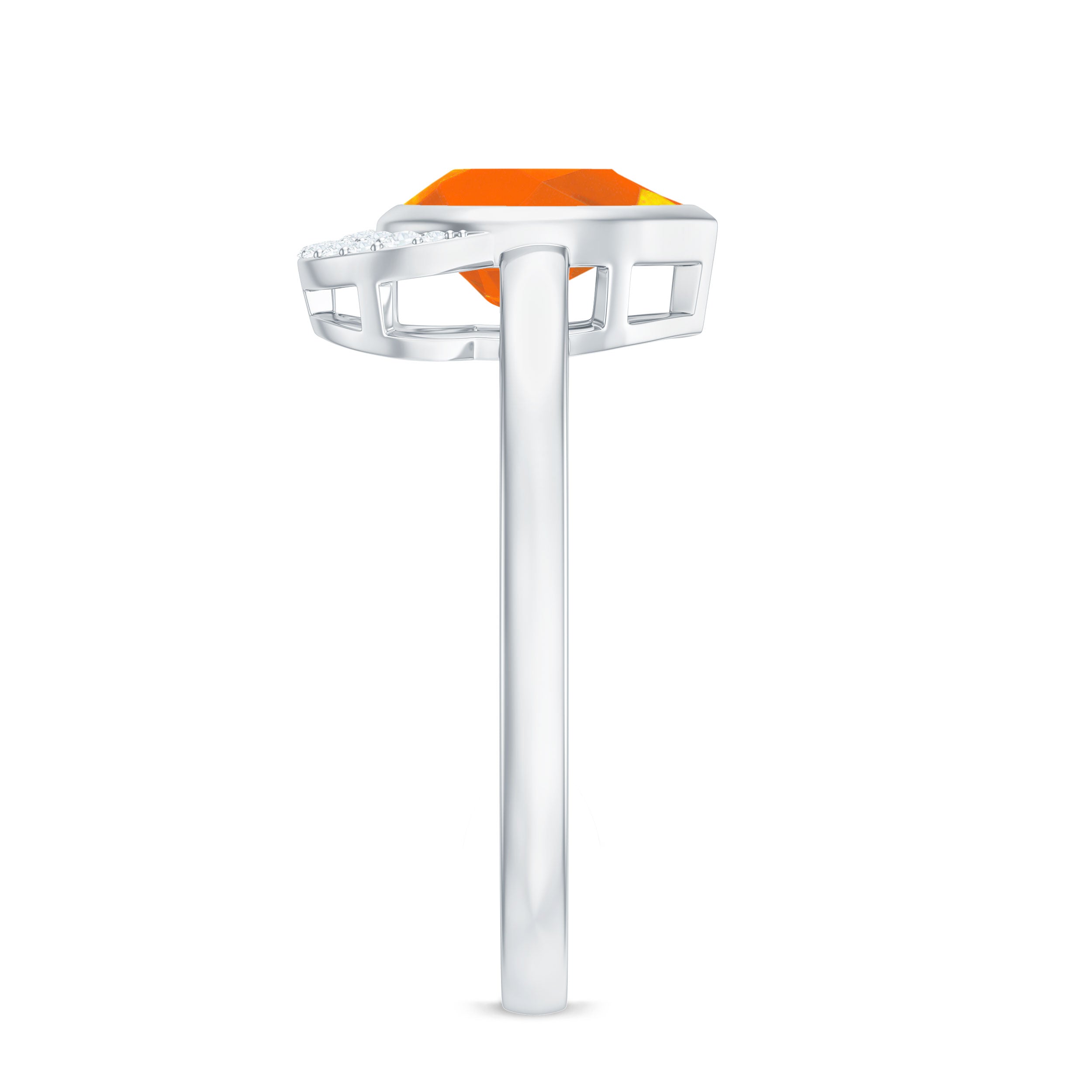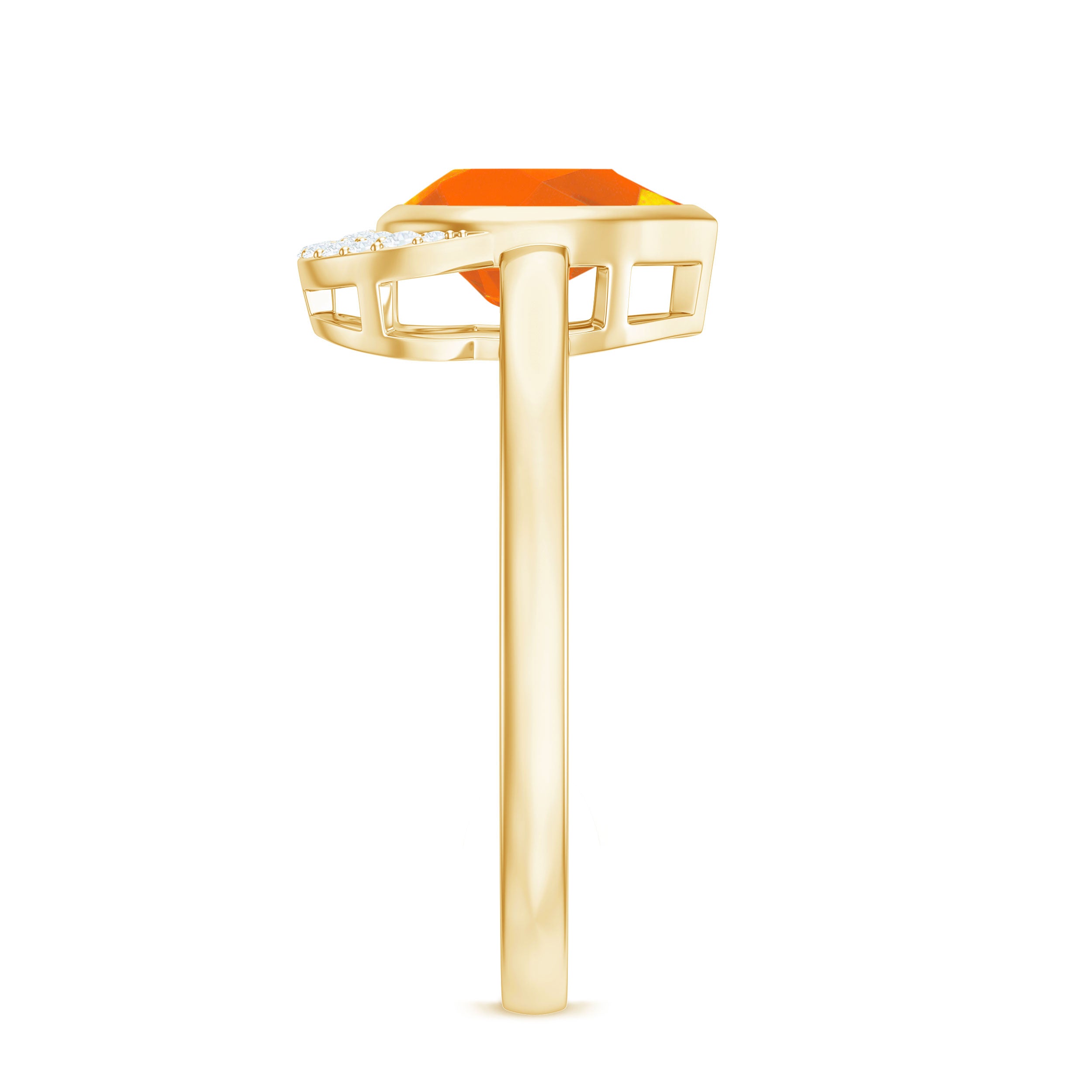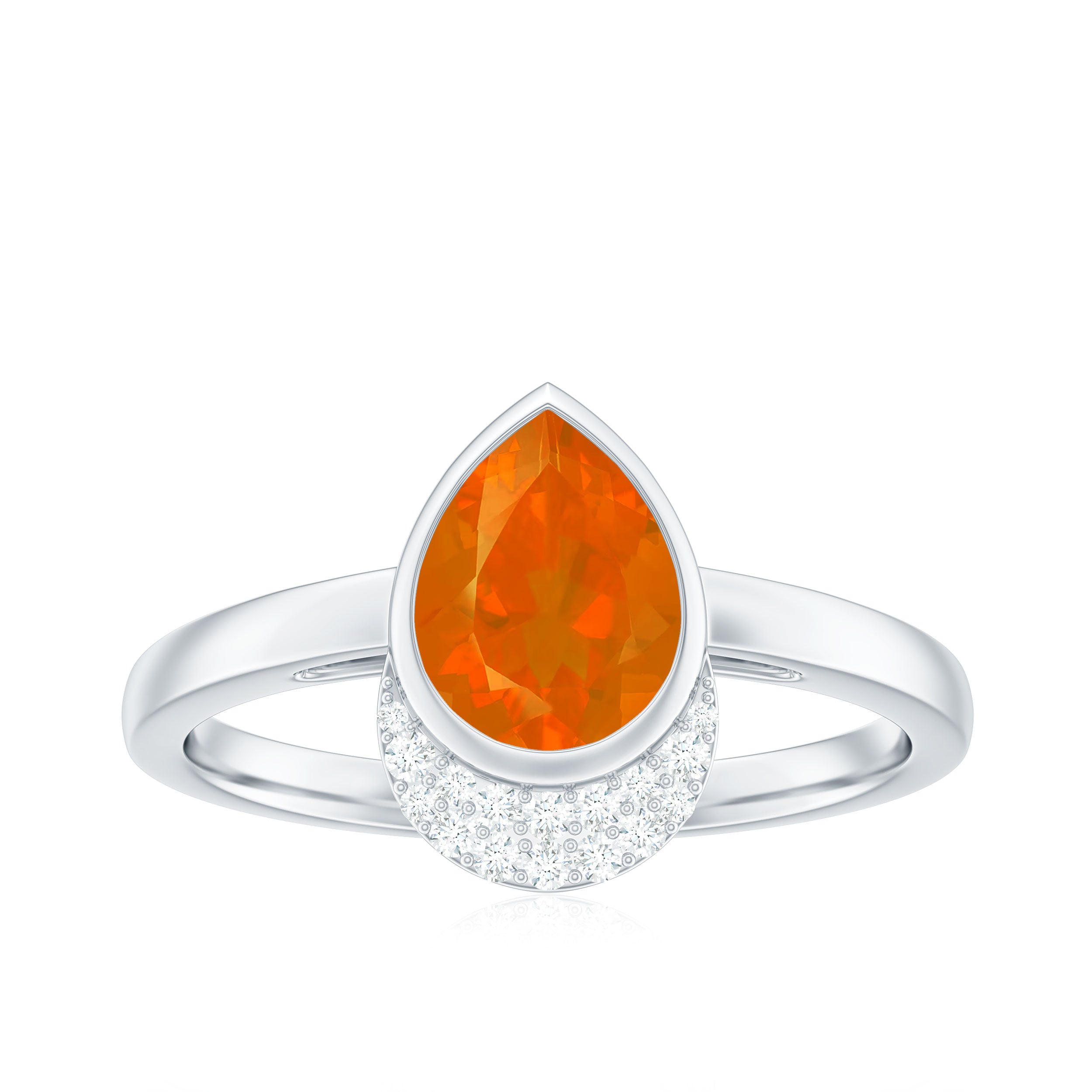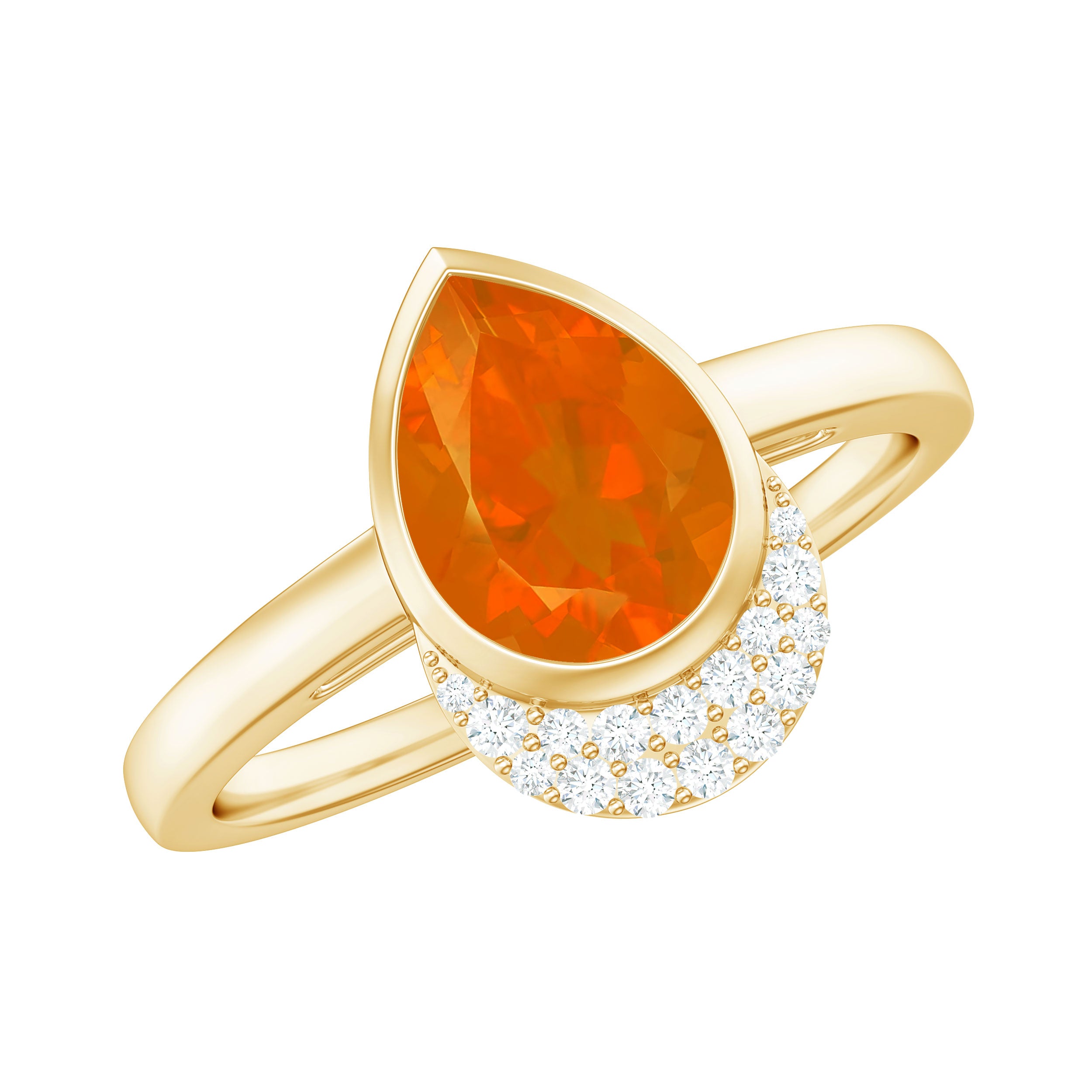Bezel Set Fire Opal Teardrop Cocktail Engagement Ring with Diamond Accent