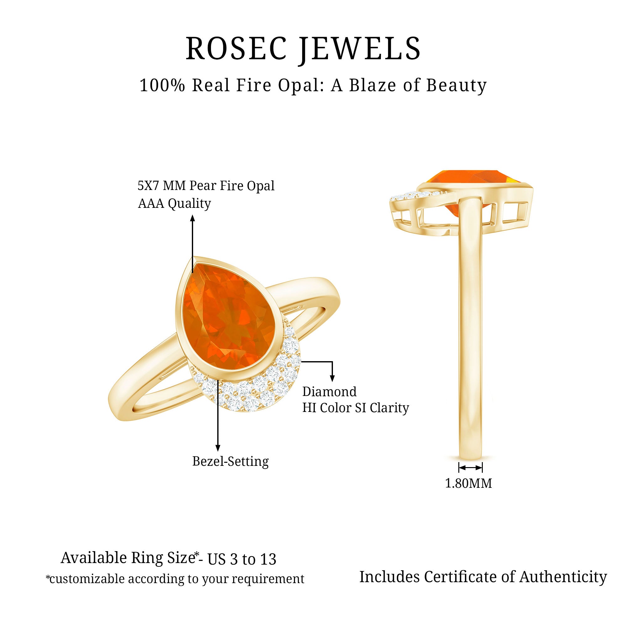 Indulge in the perfect combination of style and serenity with this stunning Fire Opal Cocktail Ring. Boasting a vividly hued 5X7 MM pear cut Fire Opal at its center, this ring is accented with dazzling Diamond stones on top, creating an alluring and captivating look. Its classic teardrop design makes it an ideal engagement ring for women born in October who love to flaunt their high fashion statement while soothing their minds. With its unique beauty and exquisite craftsmanship, this Fire Opal Cocktail Ring is sure to be a cherished addition to any jewelry collection.