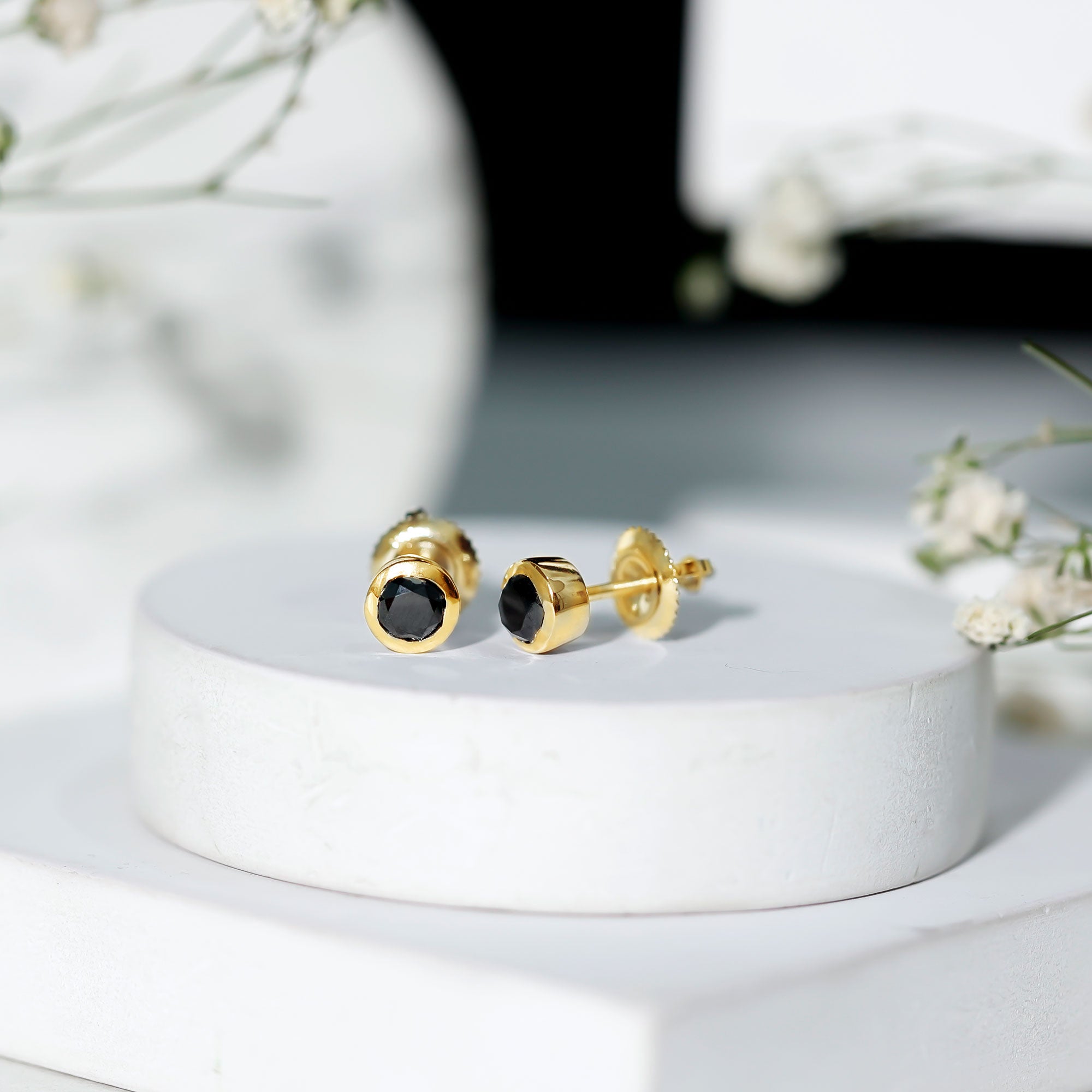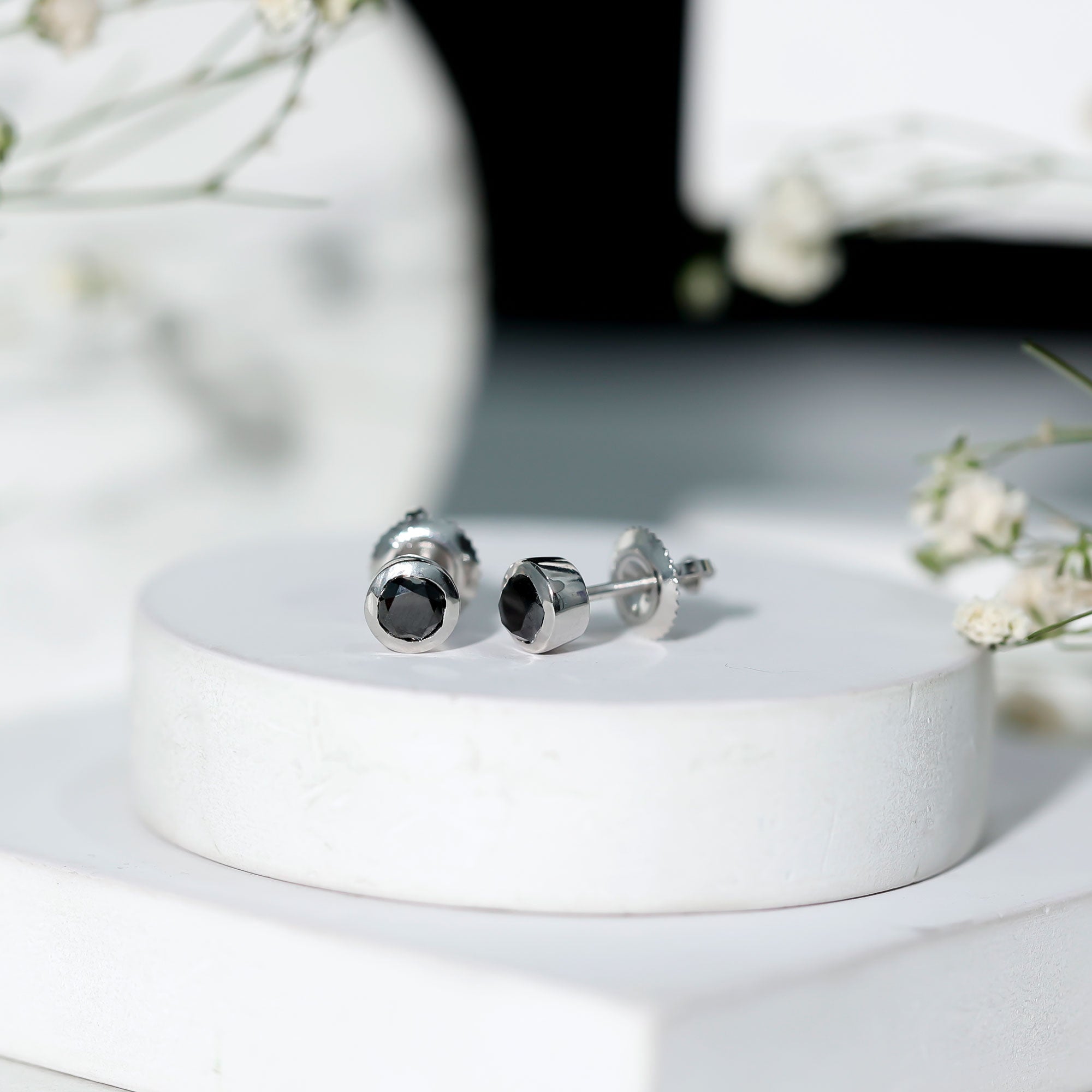 Bezel Set Genuine Black Diamond Stud Earrings With Certificate