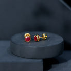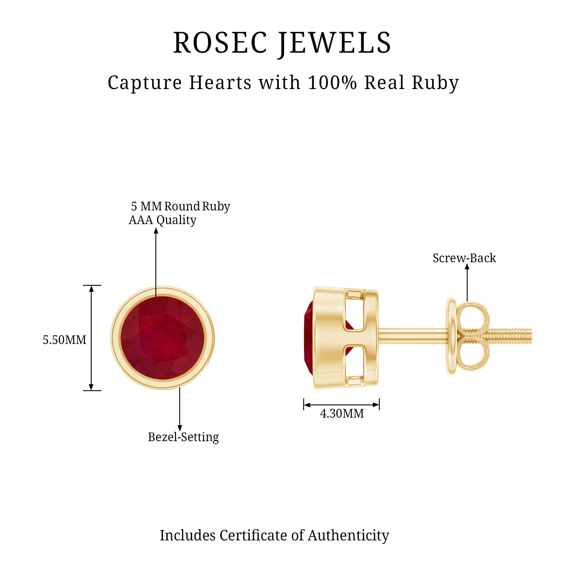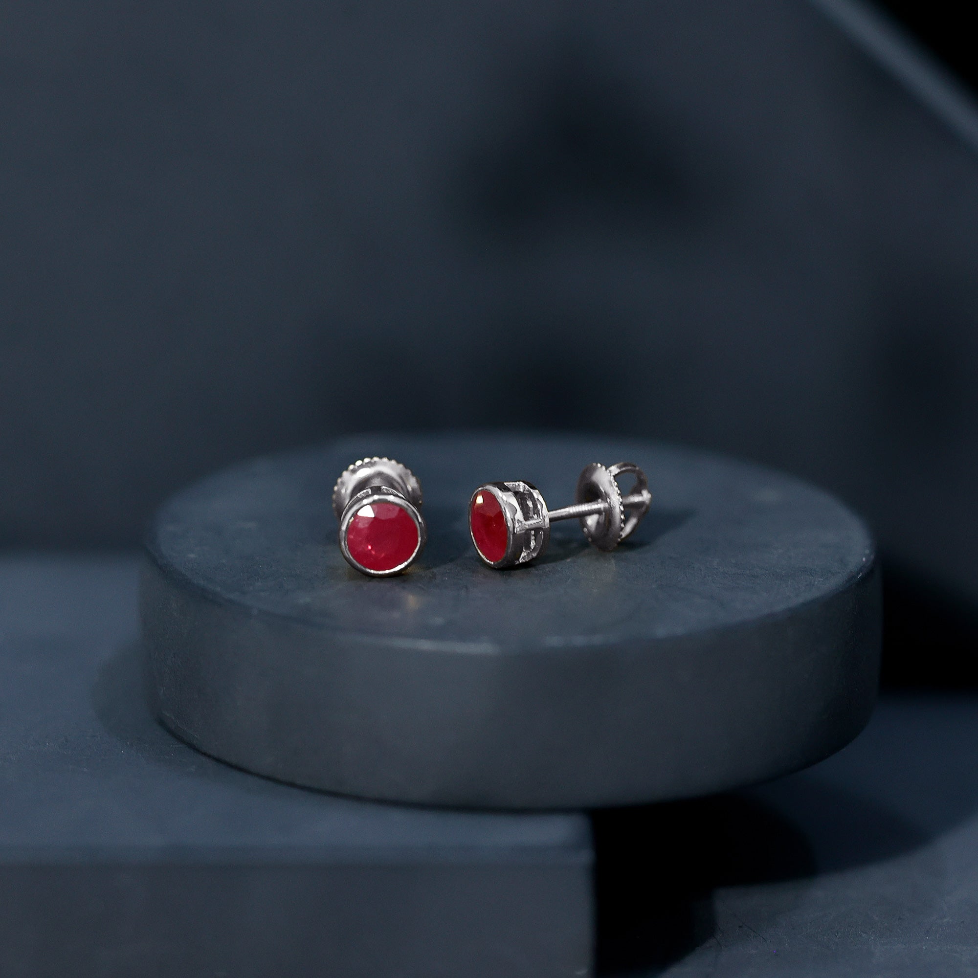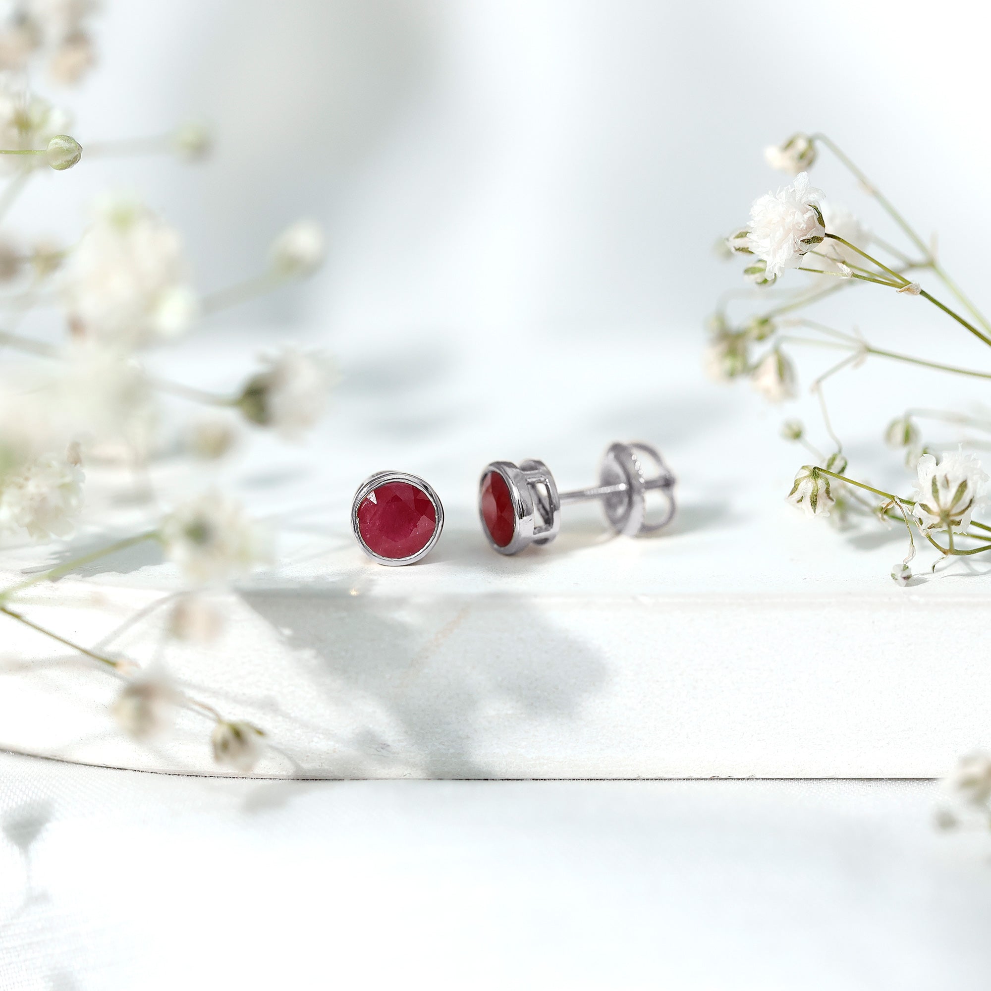 Elevate your style with our elegant Ruby Stud Earrings. Featuring Round Shape Ruby gems in a sleek Bezel Setting, these solitaire stud earrings are perfect for everyday wear. These stud earrings are sure to make a statement. Experience the beauty and charm of these exquisite earrings that effortlessly enhance your style with their understated yet captivating design.