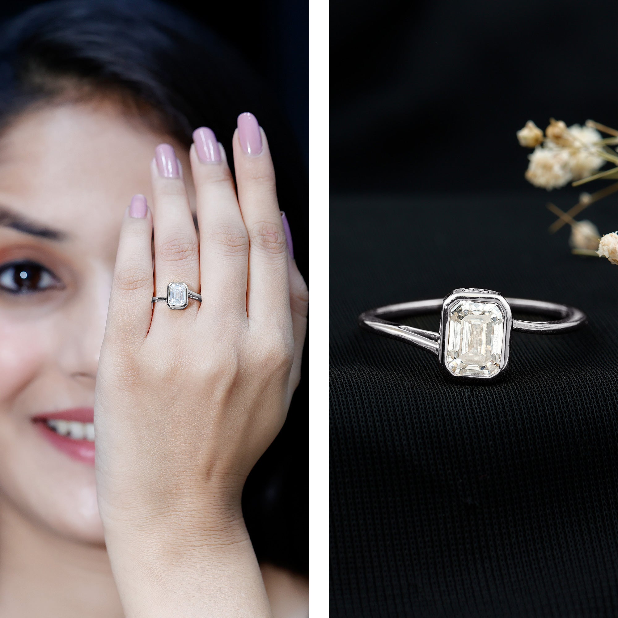 Capture hearts with the stunning Lab Grown Diamond Engagement Ring, a true symbol of your eternal love and dedication. With its breathtaking design, this Bypass Engagement Ring merges timeless elegance with a contemporary flair, making it an ideal pick for that special someone. This Solitaire Engagement Ring features a unique 6X8 MM emerald cut lab grown diamond set in bezel setting with a bypass shank. Shining brightly, this Solitaire Diamond Ring presents a sophisticated and elegant appearance that remains timeless. Expertly crafted, it showcases an EF Color VS Clarity lab diamond, allowing the Bezel Set Emerald Cut Engagement Ring to reflect light and sparkle from every angle. Taking center stage, this 1 Carat Diamond Ring celebrates simplicity and elegance while adding a touch of glamour for those who desire extra shine. The stunning brilliance of a Bypass Ring is versatile enough to endure through the years, making it a remarkable choice for any bride-to-be. With a touch of sophistication, Rosec Jewels offers a variety of metal choices and ring sizes ranging from 3 to 13 according to US standards.