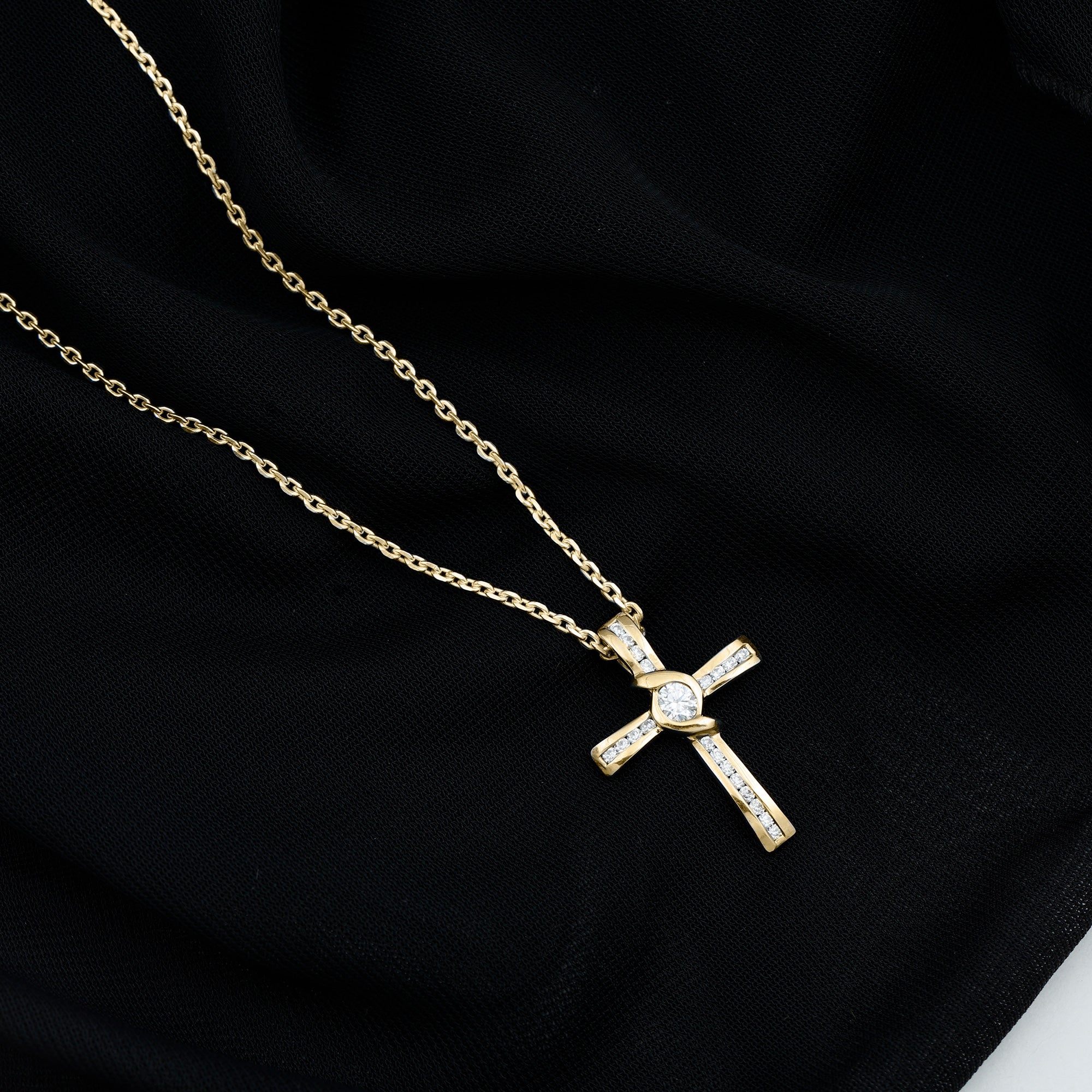 Bezel Set Lab Grown Diamond Cross Religious Necklace