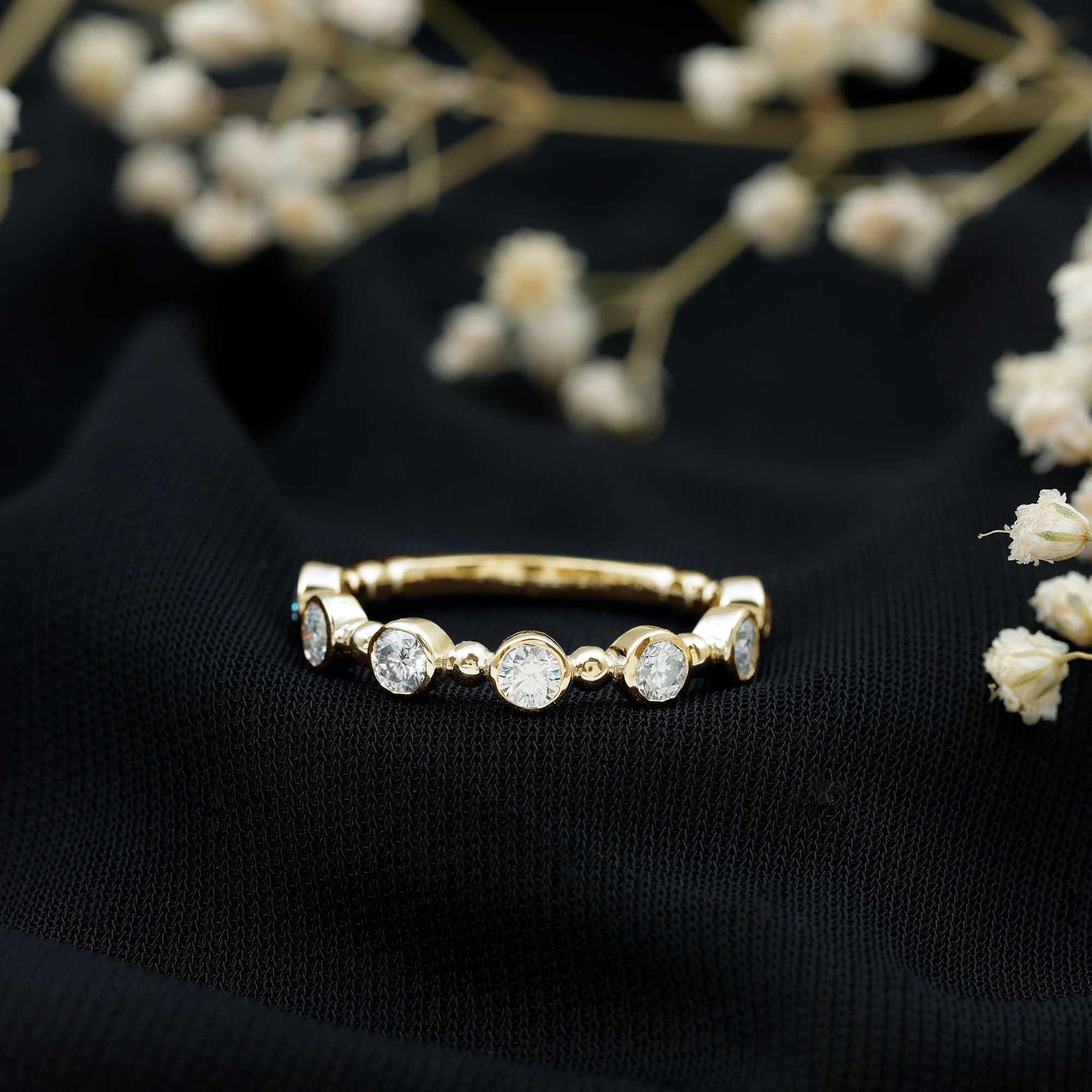 Absolutely gorgeous, this Diamond Half Eternity Ring is crafted for the woman who appreciates minimalist jewelry with a modern twist. It is adorned with round cut lab-grown diamonds (EF-VS quality), each set in bezel setting, covering half of the band with incredible sparkle. The beaded detailing brings a classic charm while keeping the Diamond Anniversary Ring light and comfy for daily wear. Plus, all the gemstones in this Stackable Wedding Band are lab-created and certified, offering the same brilliance and durability as natural stones, but made in an eco-friendly and sustainable manner, making this piece a stylish and responsible choice. Packaged in a premium box, it is the ideal selection for a moment you will treasure forever. Our Bezel Set Eternity Ring comes in various metal types and colors, giving you the chance to create a truly personalized piece. It is also available in multiple ring sizes to guarantee a perfect fit for every hand. Celebrate your lifes most significant day with a piece of fine jewelry that showcases your unique personality. This Lab Grown Diamond Wedding Band is a fantastic choice that combines luxury, elegance, and modern ethics into one stunning design.