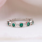 Bezel Set Lab Grown Emerald 7 Stone Half Eternity Ring with Certificate