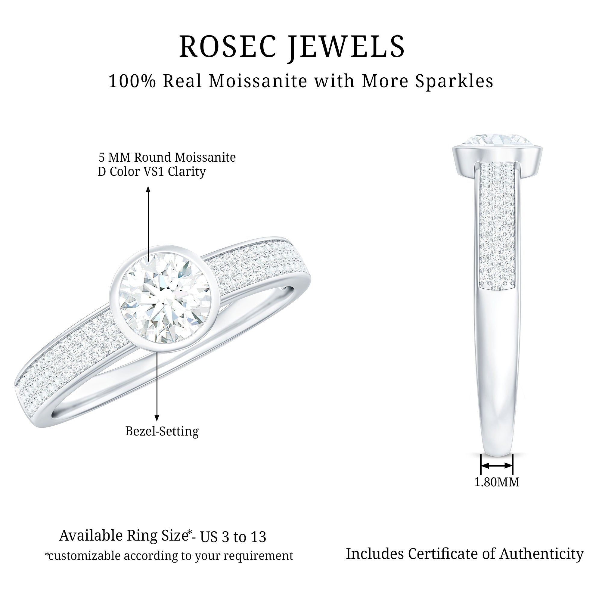 Bezel Set Moissanite Engagement Ring with Side Stones