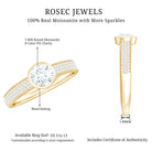 Crafted to honor your most treasured moments, this Side Stone Engagement Ring exudes contemporary elegance. At its heart lies a breathtaking 5 MM round moissanite stone, securely set in bezel setting. Enhancing this focal point are beautifully pave set side moissanite stones, carefully selected for their D color and VS1 clarity, designed to reflect light from every angle and celebrate your love with unmatched radiance. The round center stone offers a classic design that will remain timeless, while the sleek band adds a graceful touch that suits any style. Presented in a stylish jewelry box, this Round Moissanite Ring is ready to create lasting memories, whether for a surprise proposal, an anniversary, or any special occasion that deserves a little extra shine. Expertly crafted, this Moissanite Engagement Ring features side stones that elegantly enhance the main stone, adding sophistication and elevating its overall allure. Let this stunning Bezel Engagement Ring symbolize your shared journey, a piece that will continue to shine with your love for years to come.