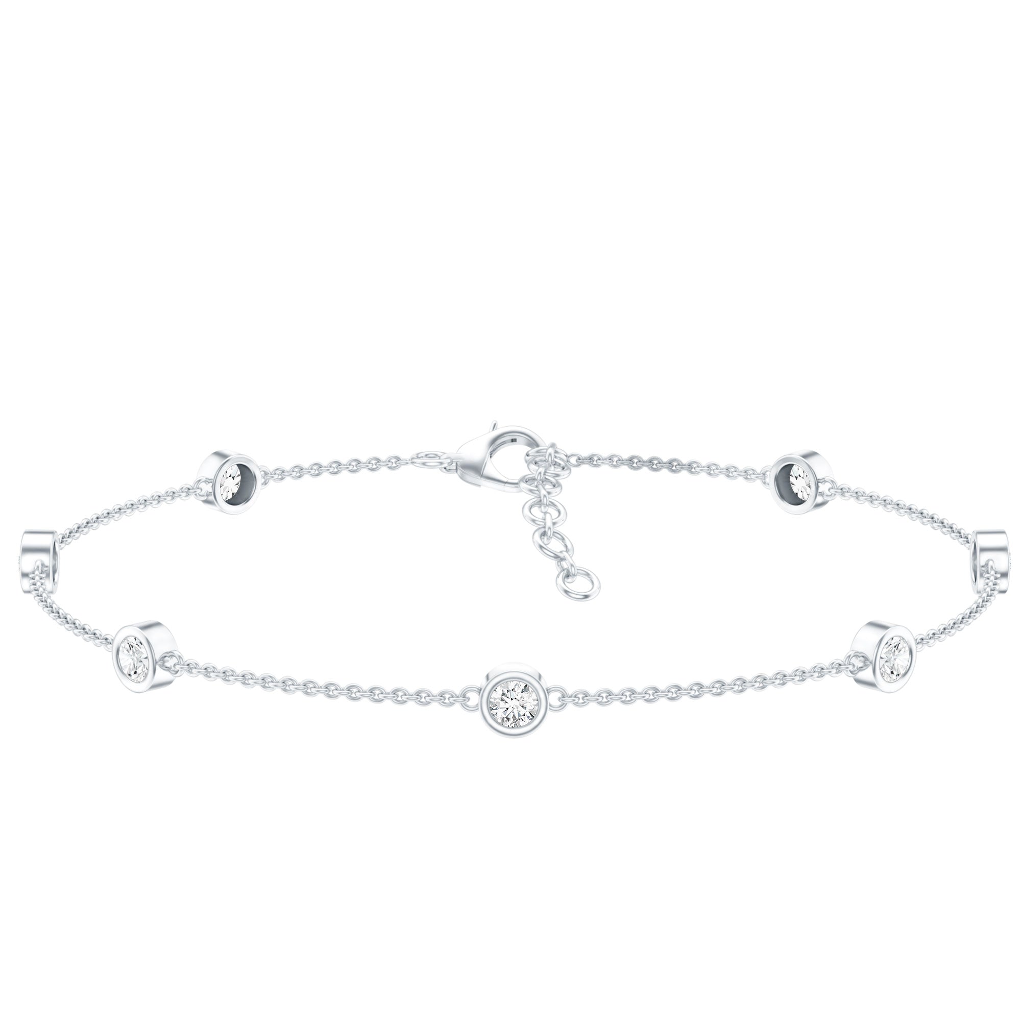 Bezel Set Moissanite Station Bracelet in Silver for Women