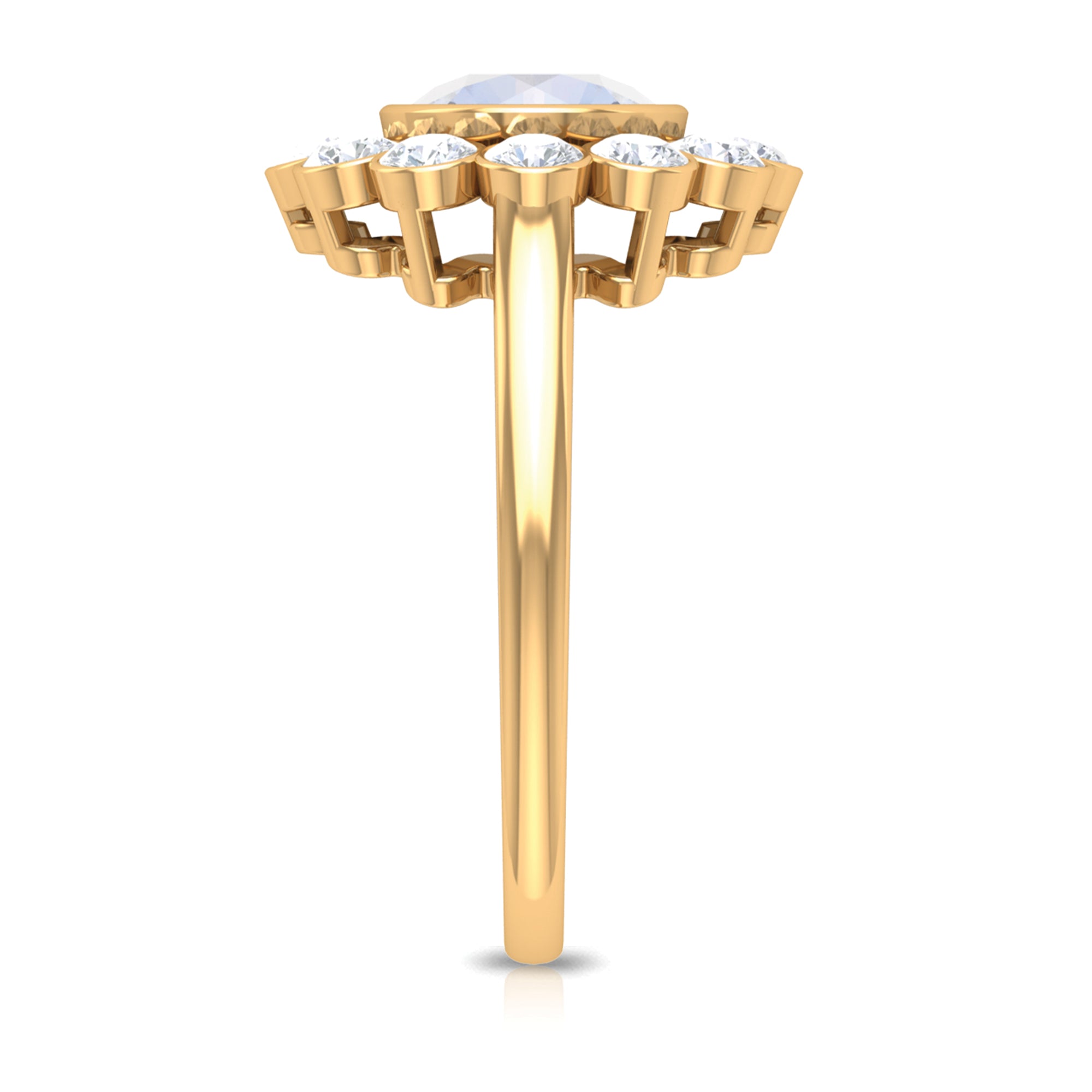 Bezel Set Moonstone Statement Engagement Ring with Diamond Halo