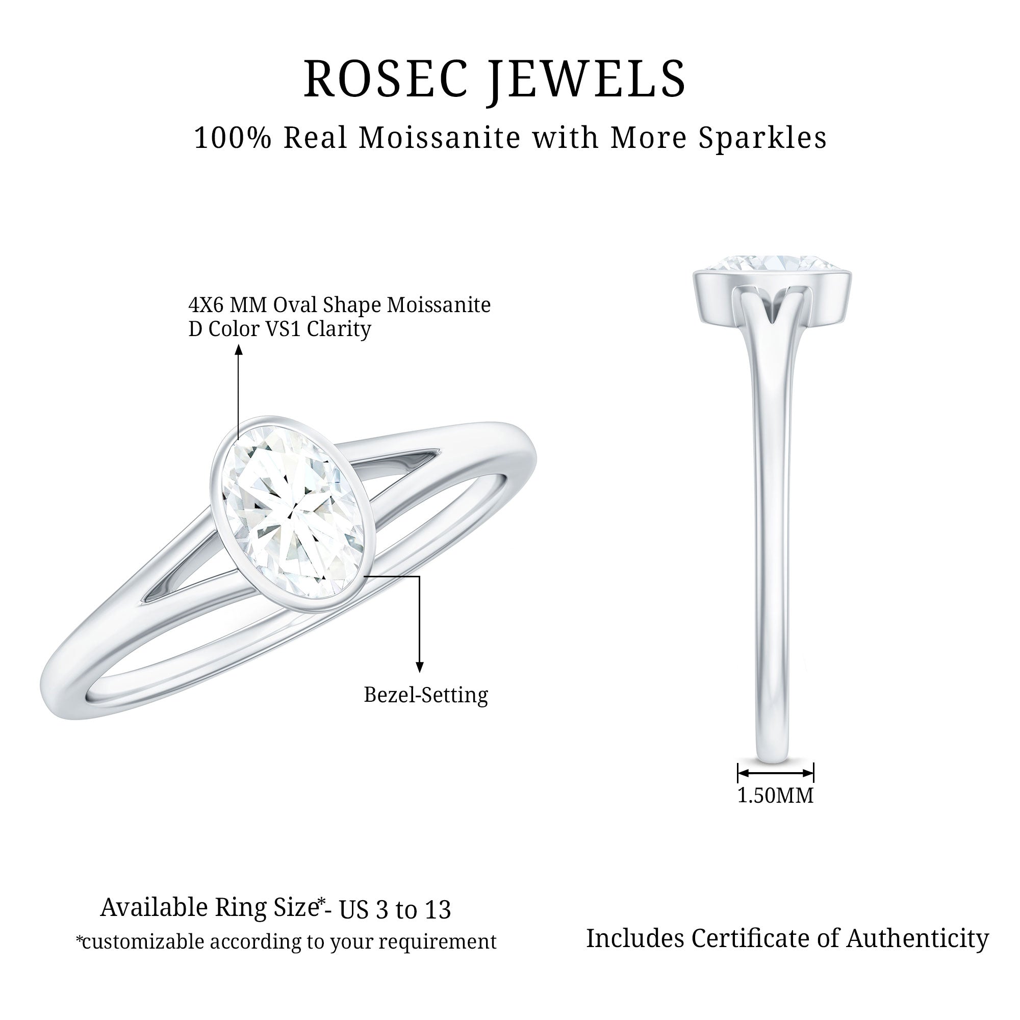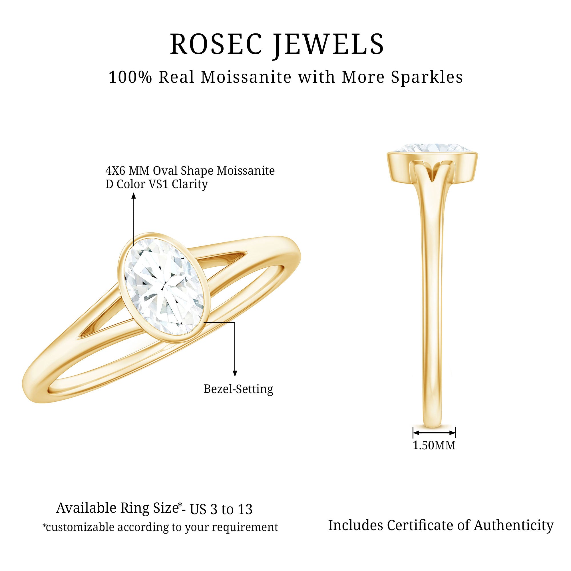 Bezel Set Oval Cut Moissanite Promise Ring in Split Shank
