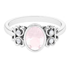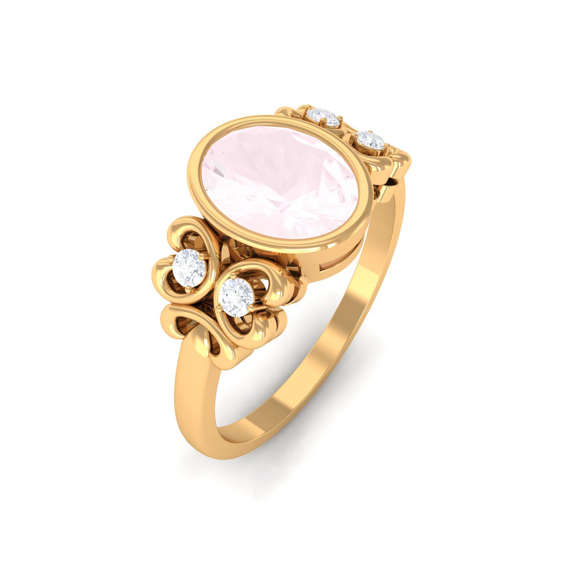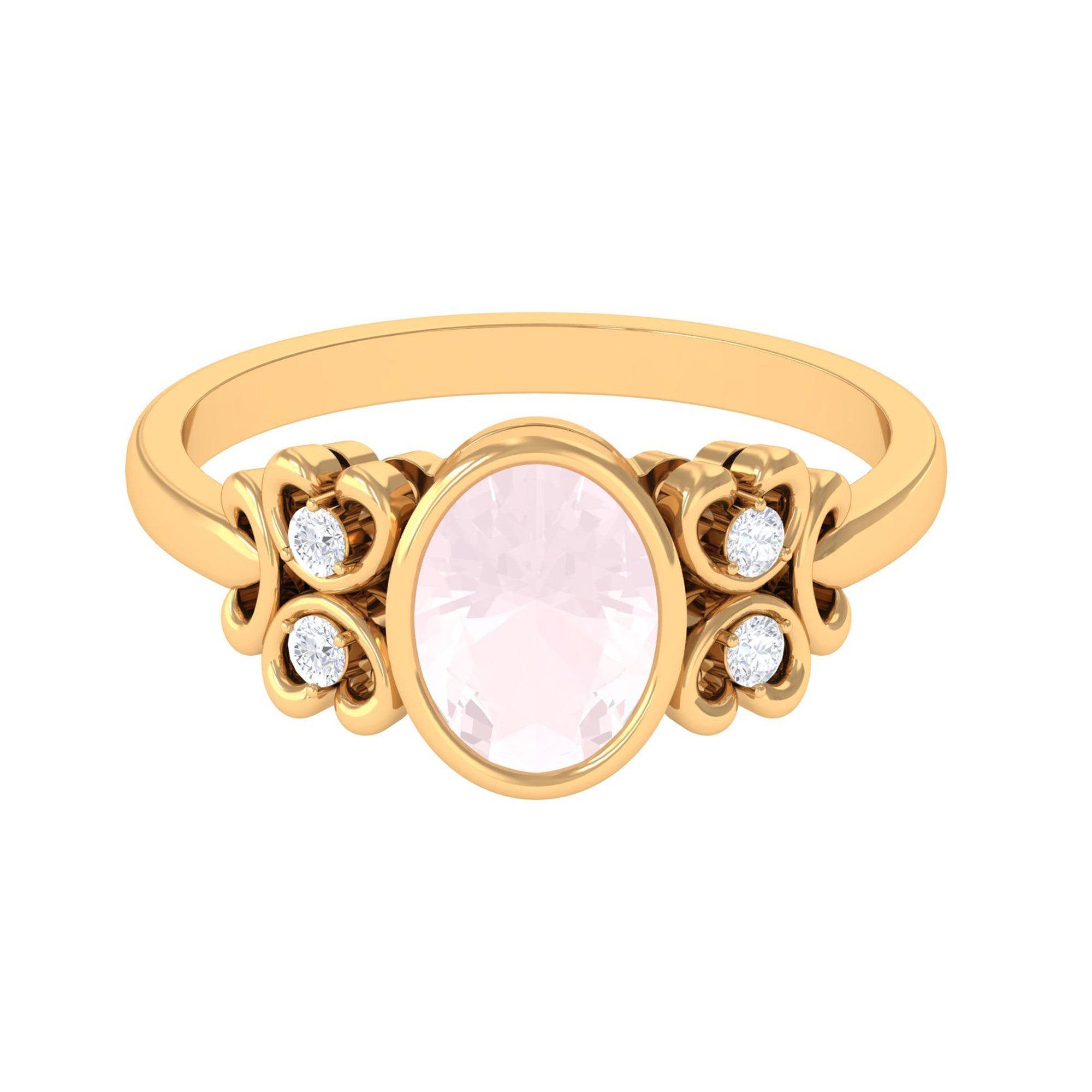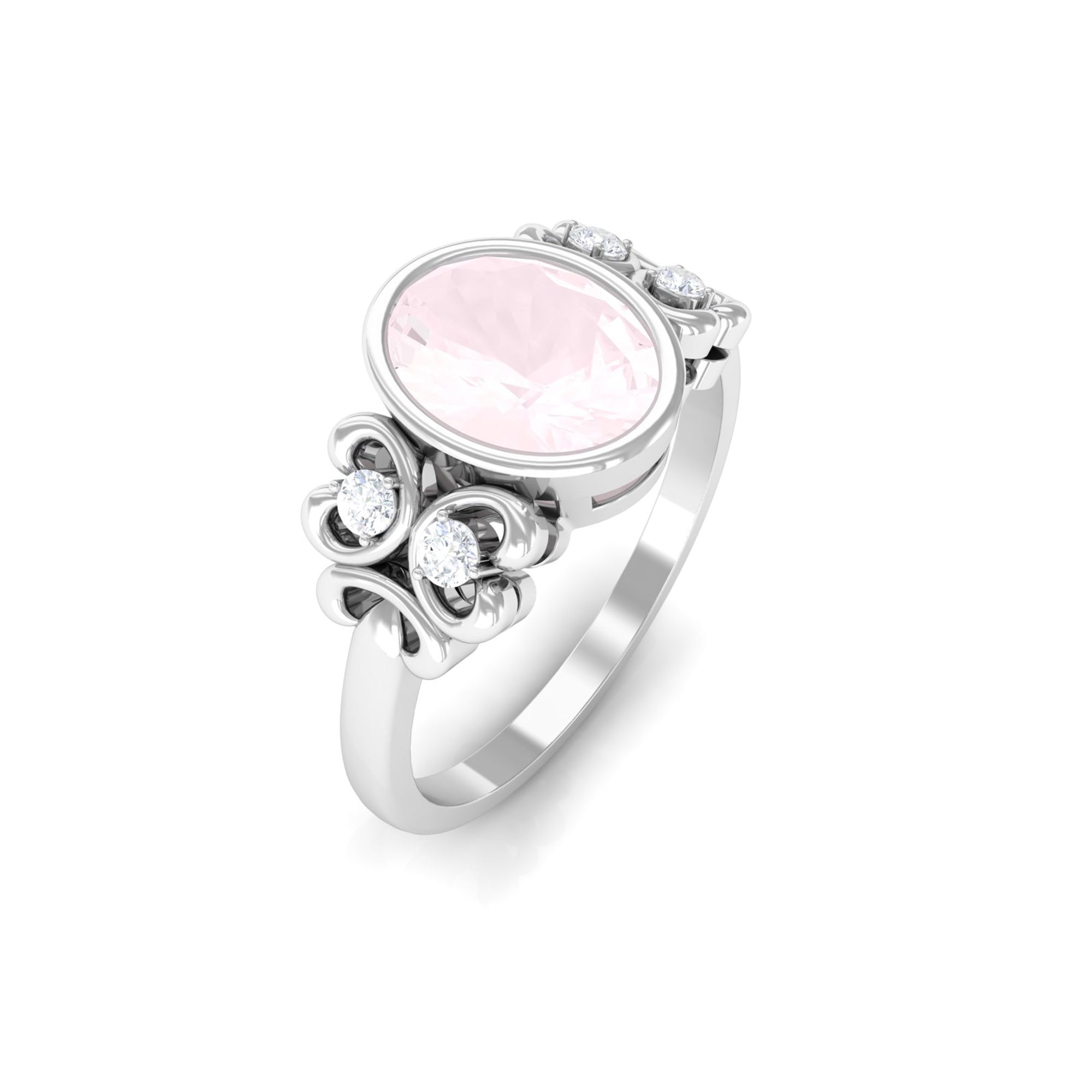 Bezel Set Oval Rose Quartz Statement Engagement Ring with Diamond