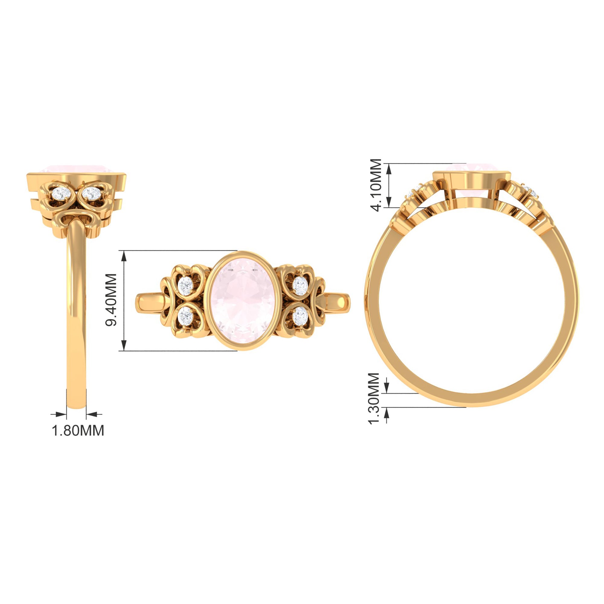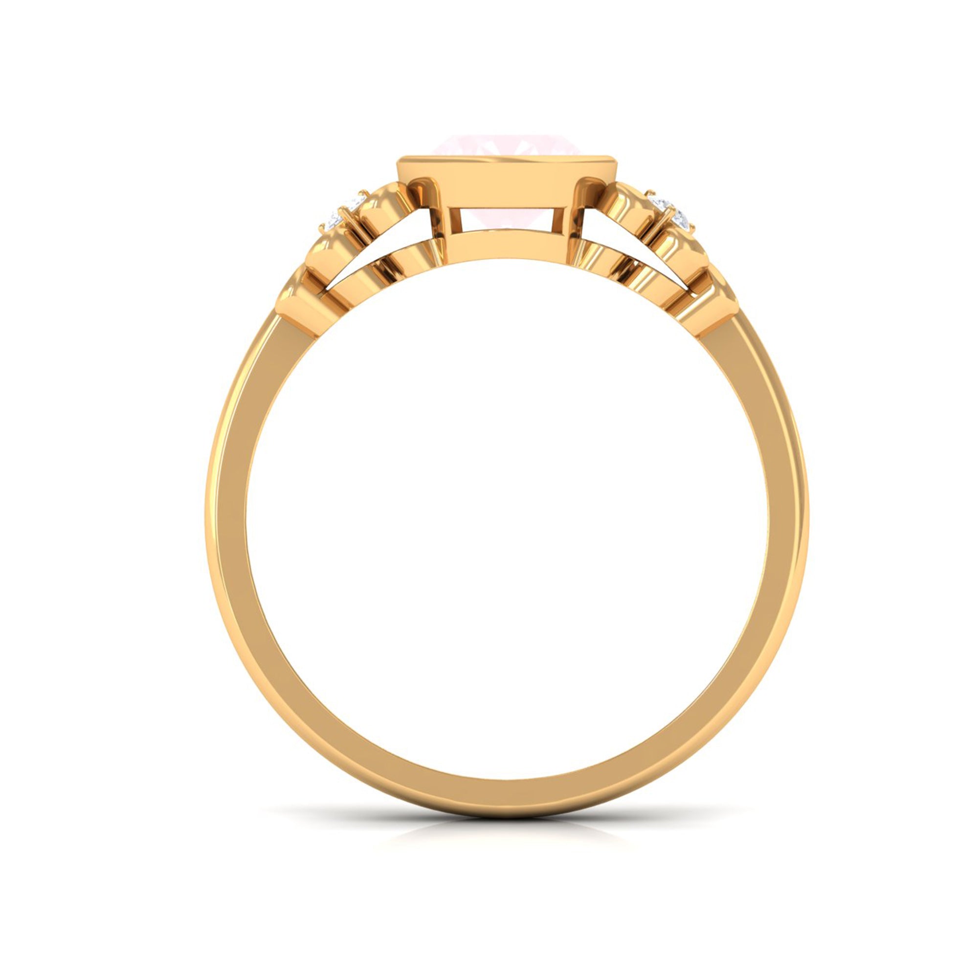 Make your significant others special day unforgettable with this heavenly Solitaire Engagement Ring, featuring a magnificent Rose Quartz at the center, embellished with shimmering Diamond stones. The statement ring is meticulously crafted with Solid Gold, ensuring that every tiny detail is taken care of to perfection. The Bezel Set Rose Quartz Engagement Ring is a timeless and elegant piece that exudes sophistication and refinement. Show your love and commitment to your significant other by presenting them with this extraordinary and enchanting quartz ring, and let its exquisite beauty symbolize your unending love for years to come.