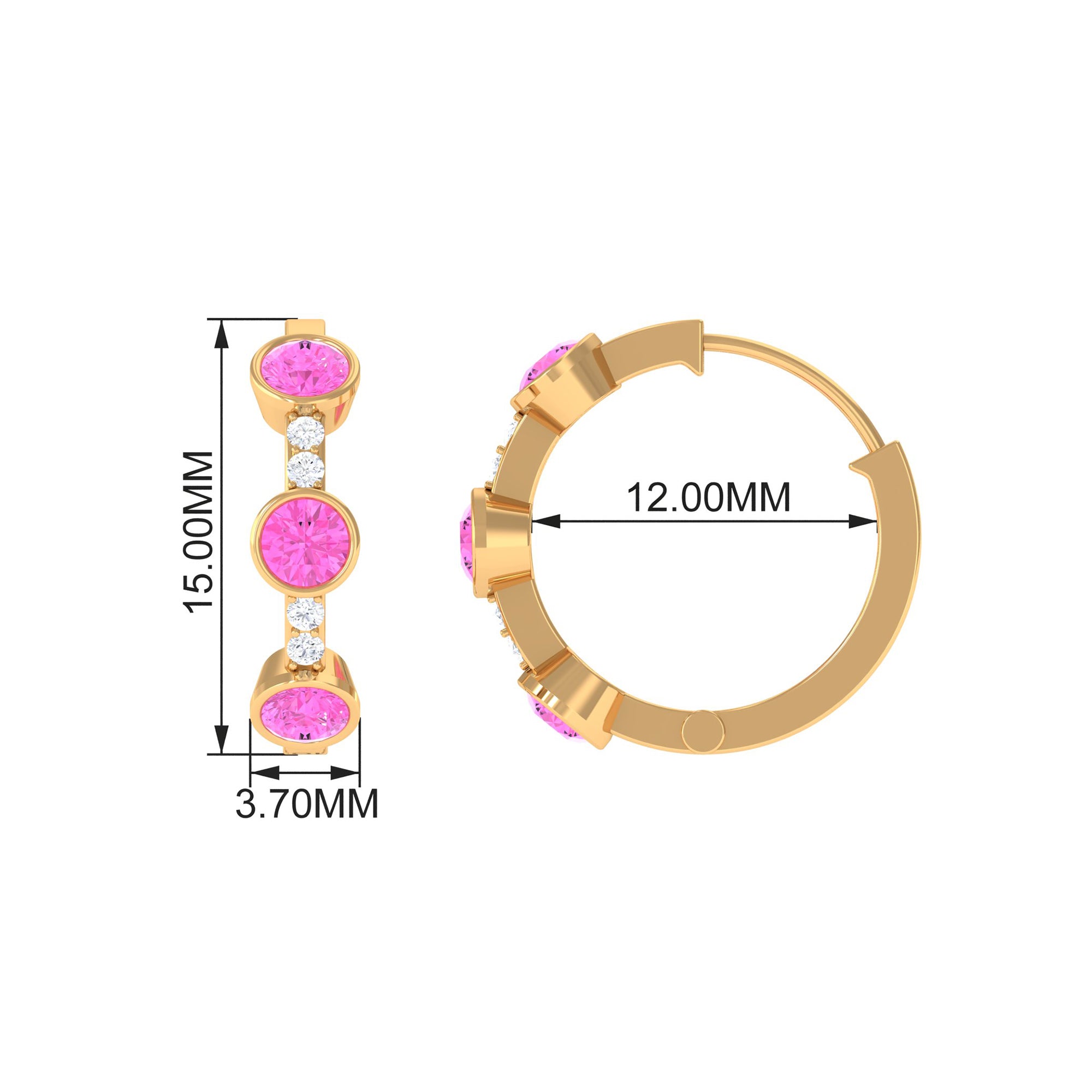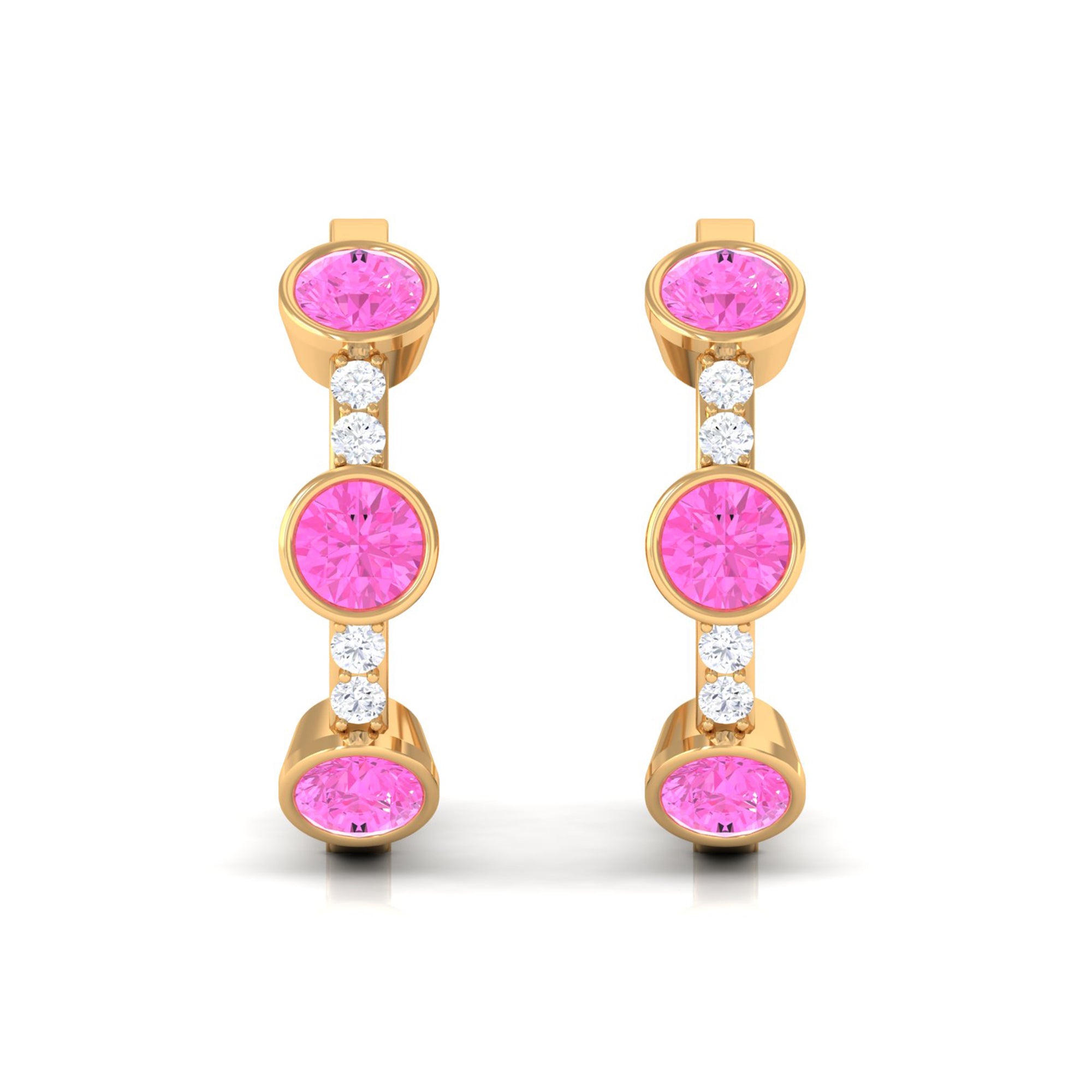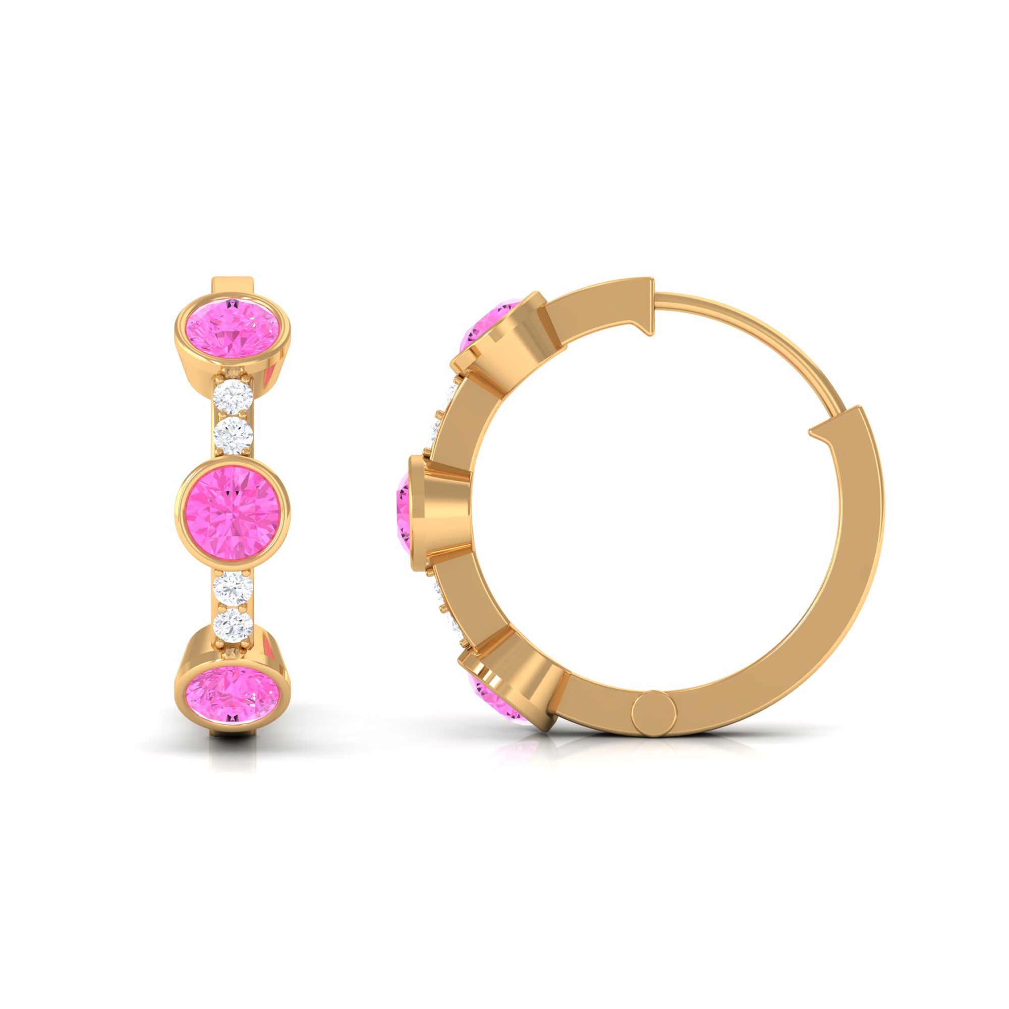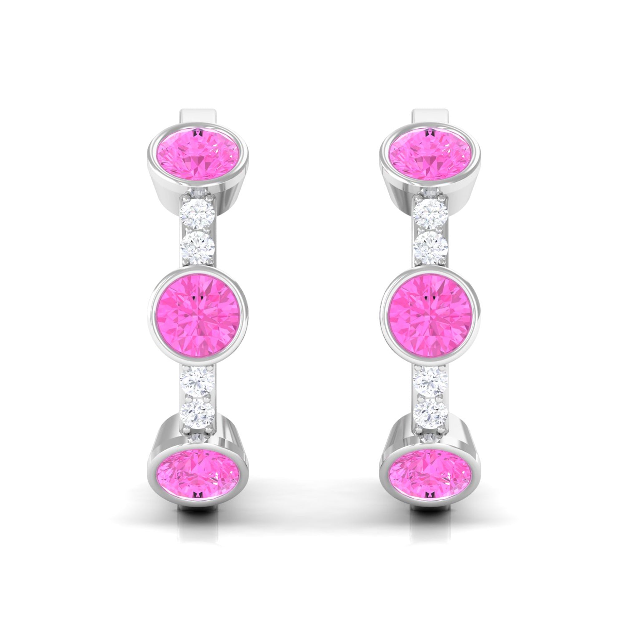 Bezel Set Pink Sapphire 3 Stone Hinged Hoop Earrings with Diamond