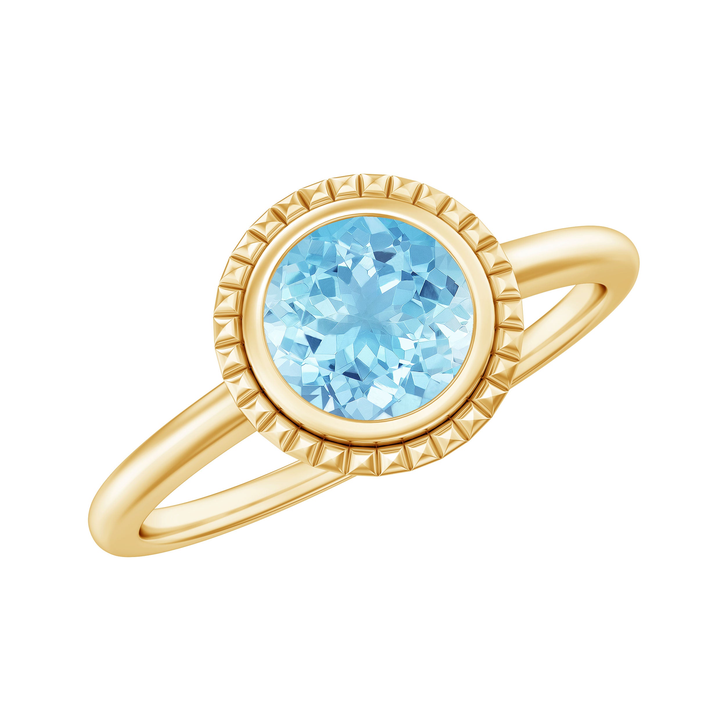 Seal your promise of eternal love and devotion with this Promise Ring, a testament to your enduring commitment. This Solitaire Ring is beautified with a 6 MM Round Shape Aquamarine gemstone set in Bezel Setting with Engraved Detailing. She will surely accept your proposal when you pop up the question with this adorable Aquamarine Ring and will fall in love with you.